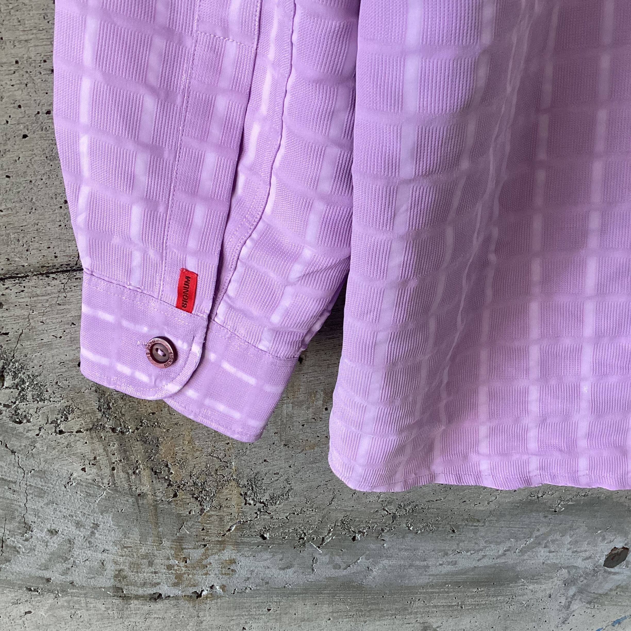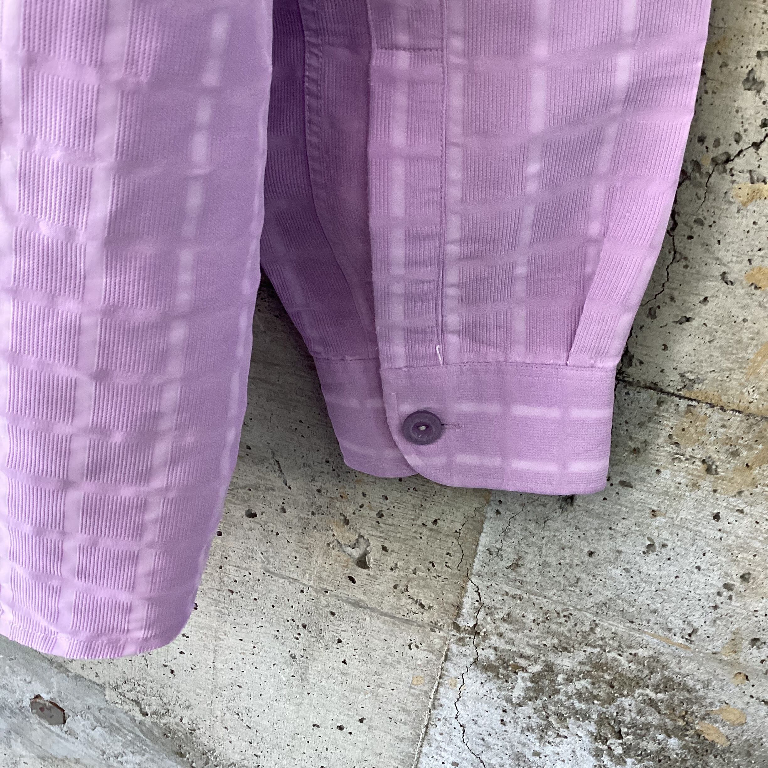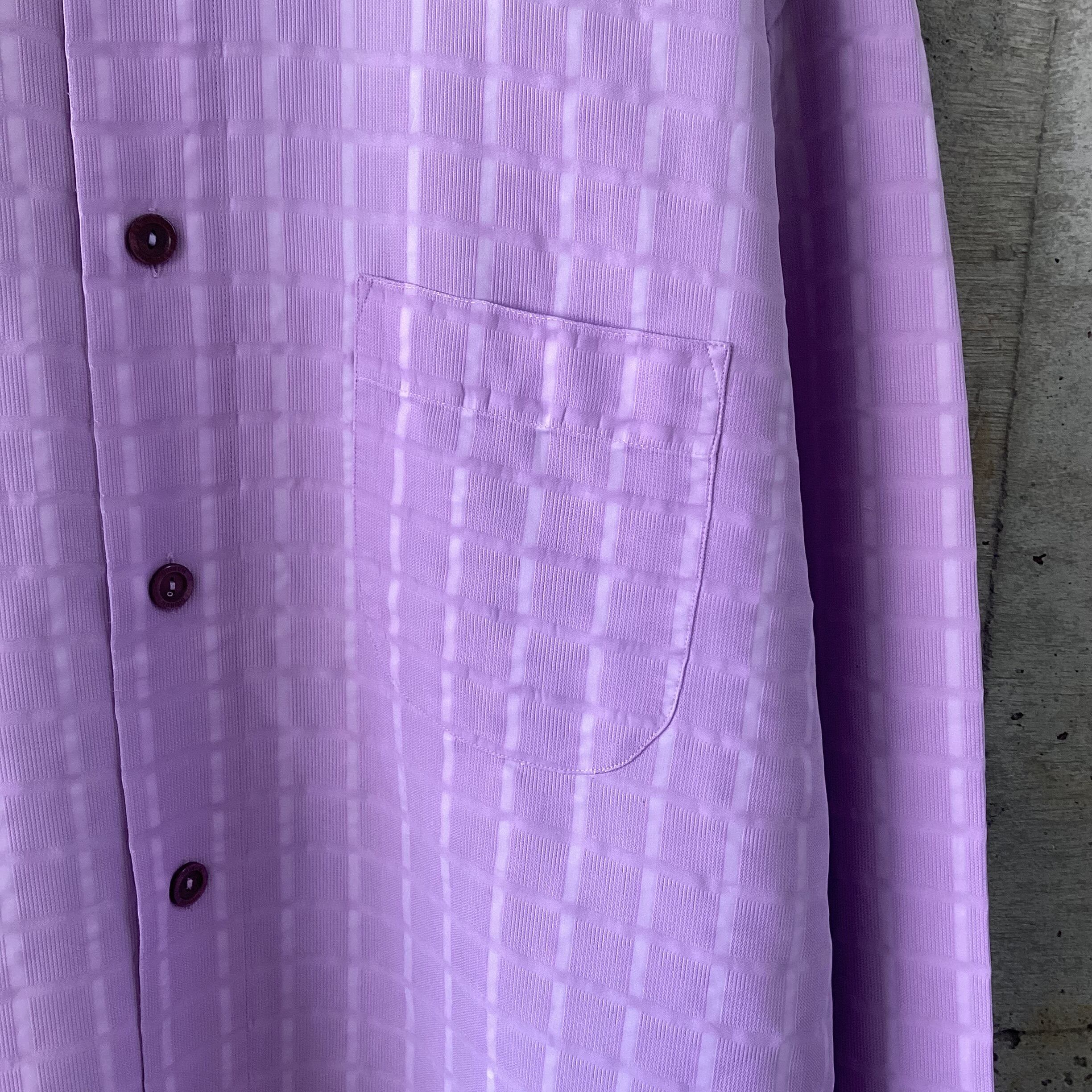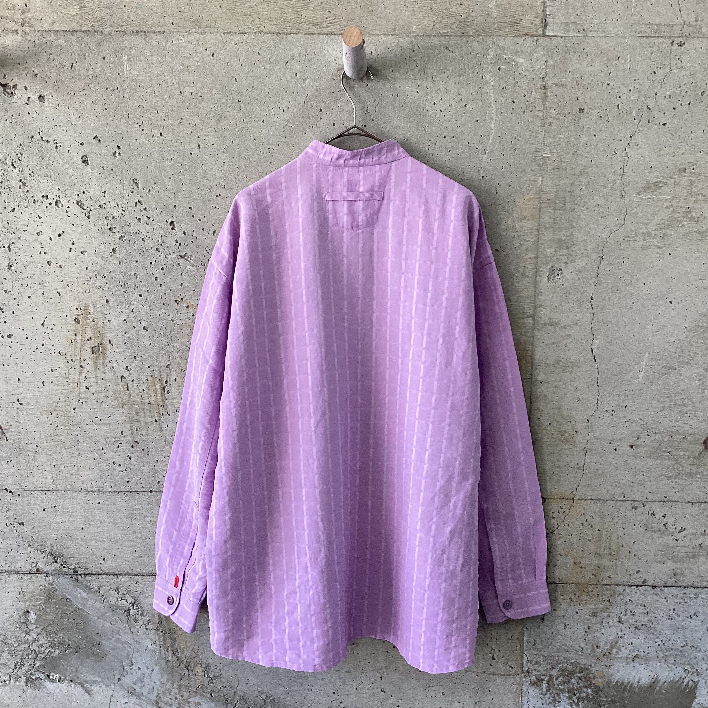 Purple textured band collar shirt