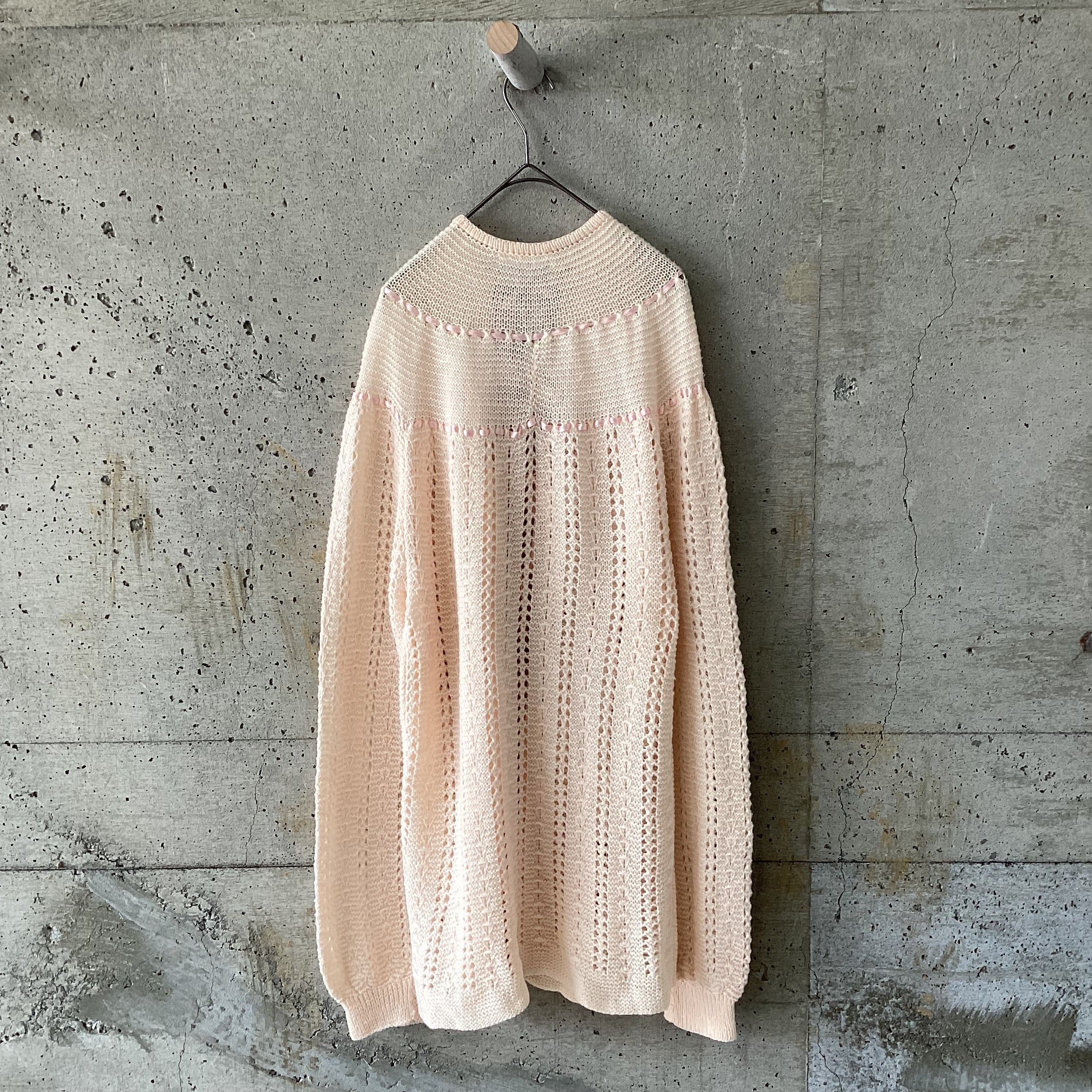 Pink knit cardigan with ribbon