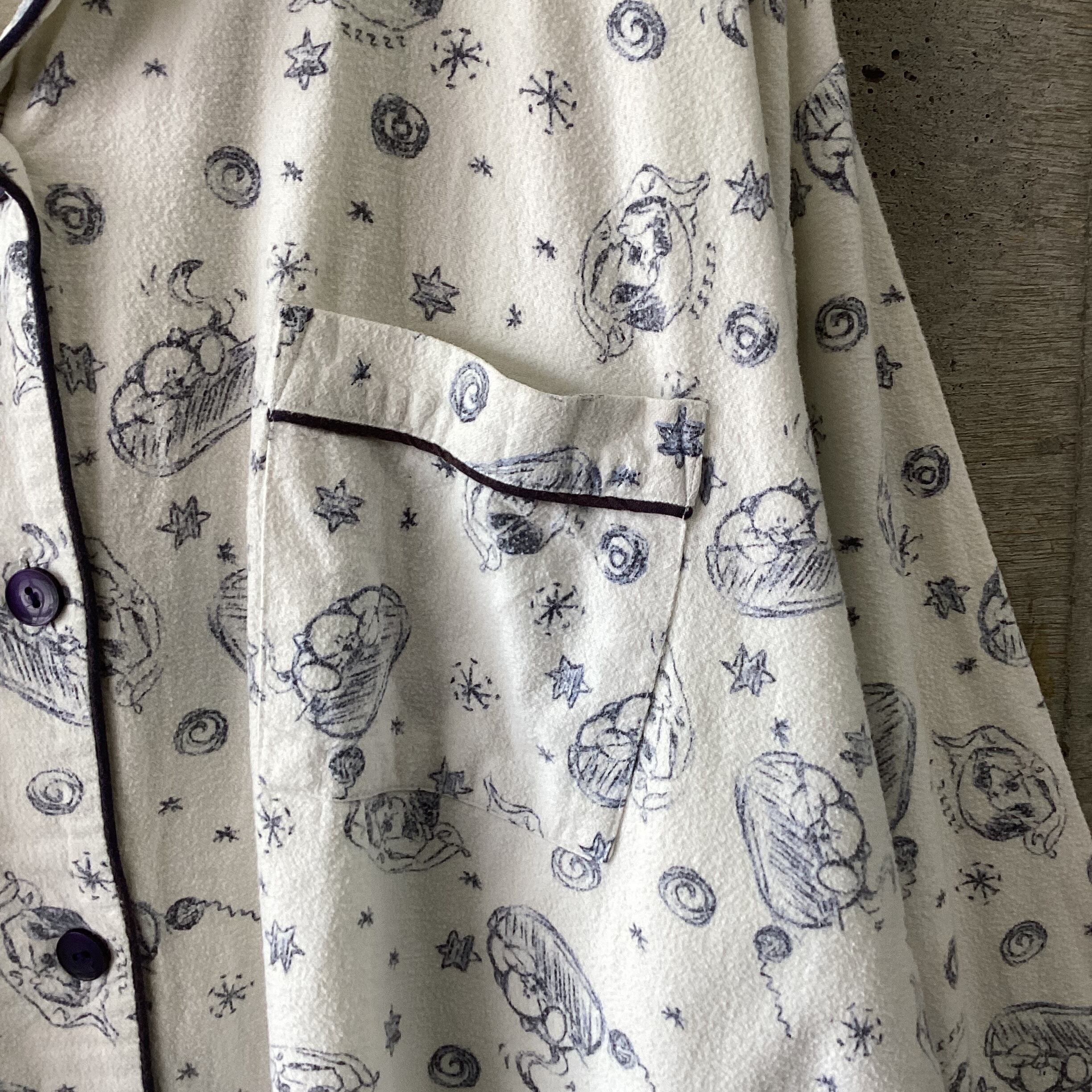 猫のイラストがプリントされたパジャマシャツです。