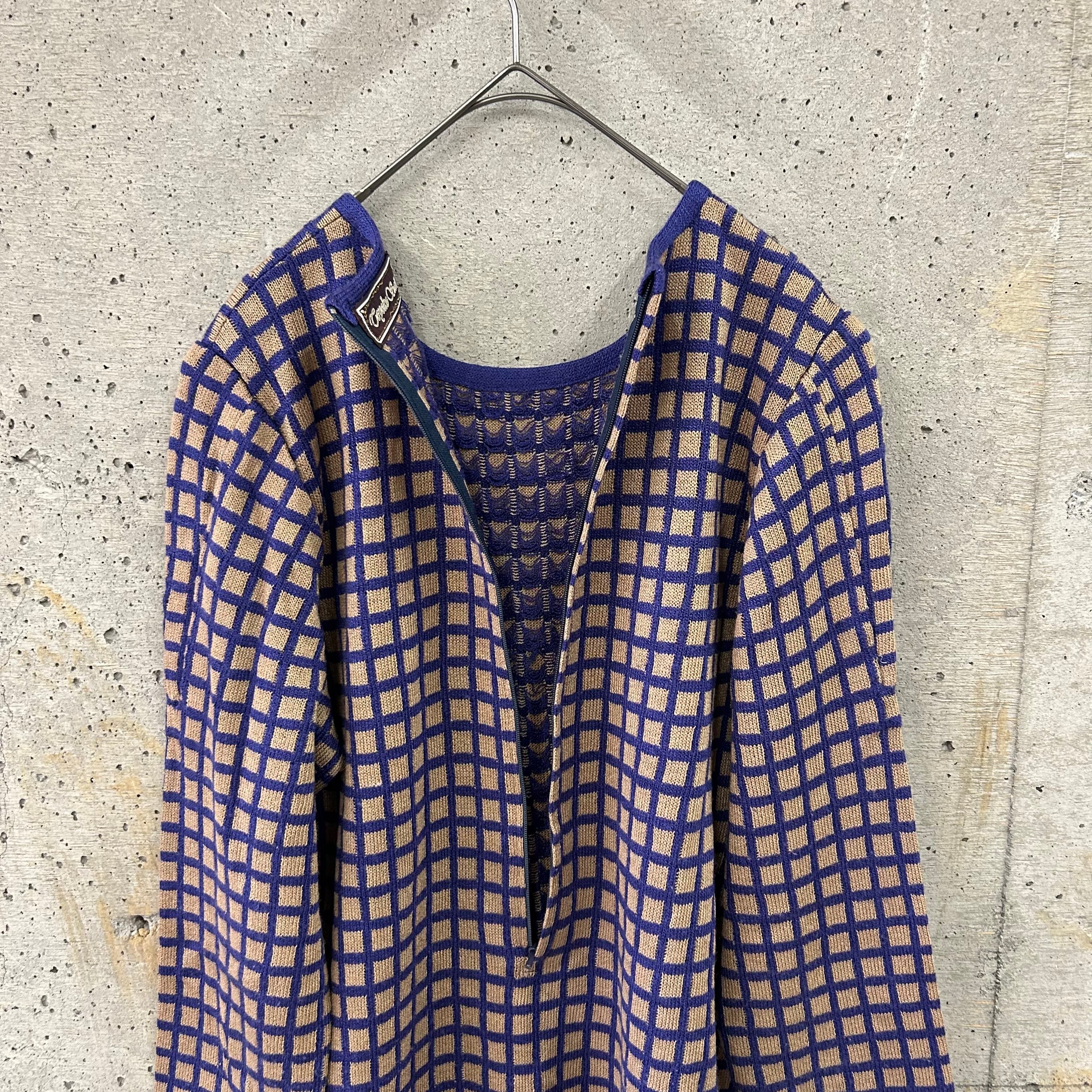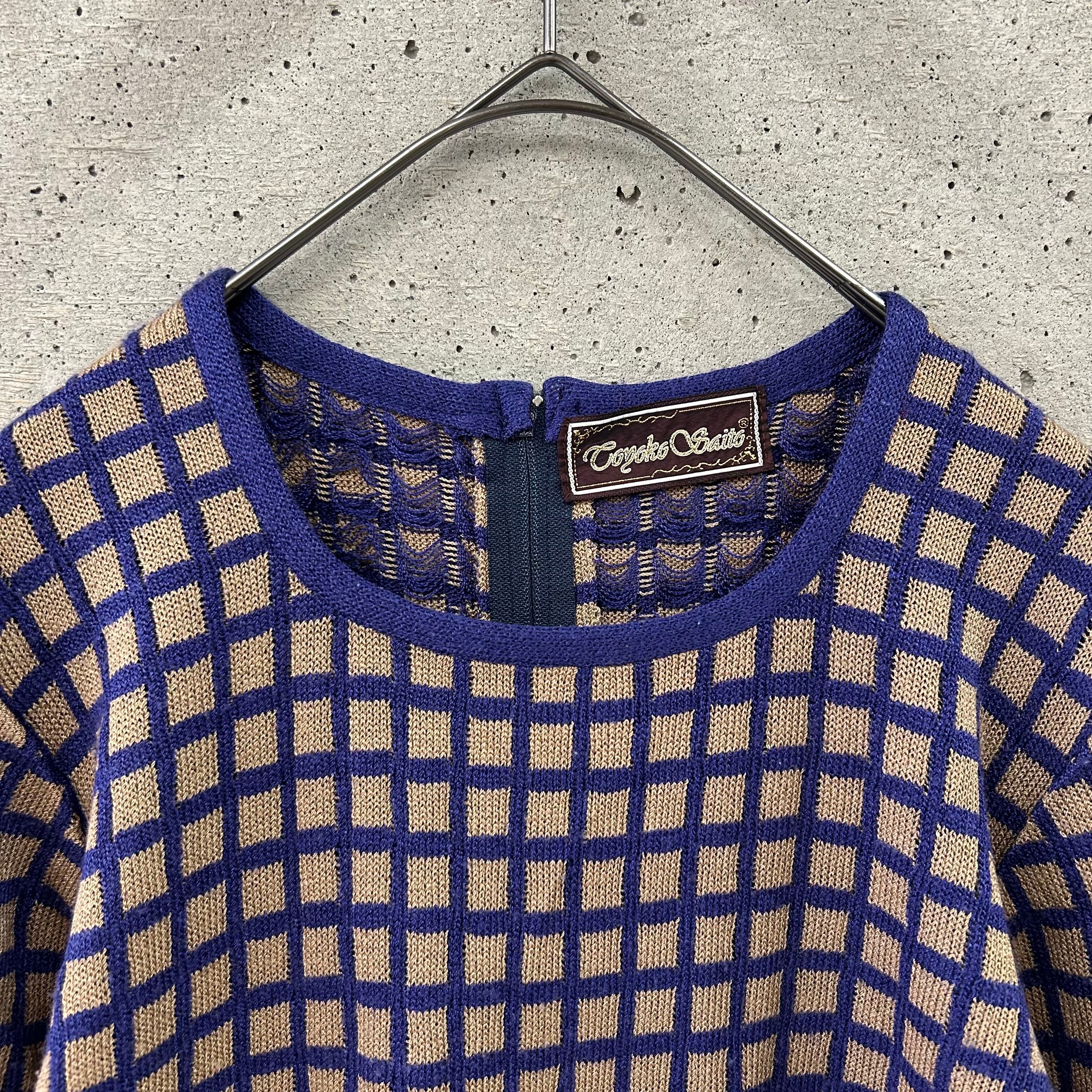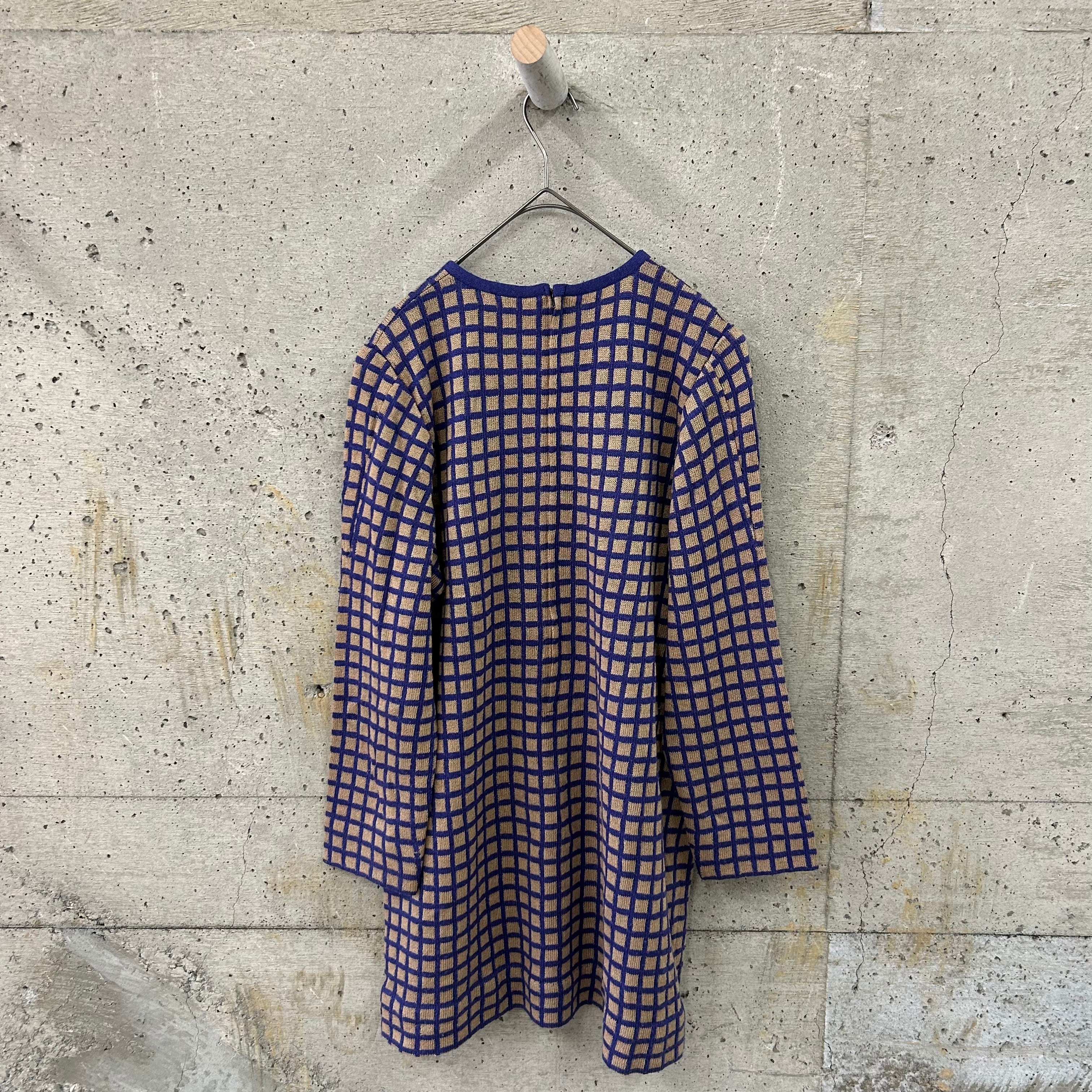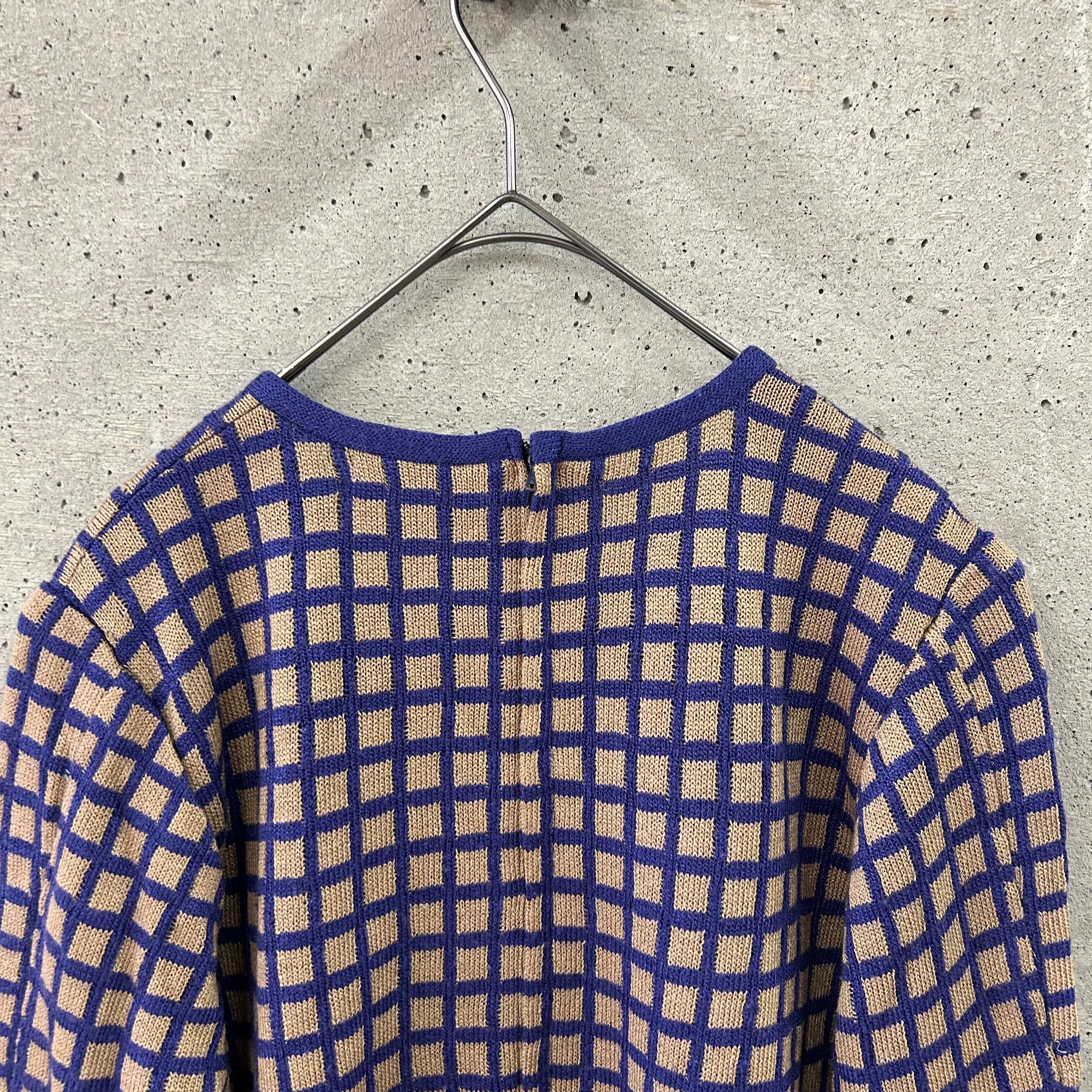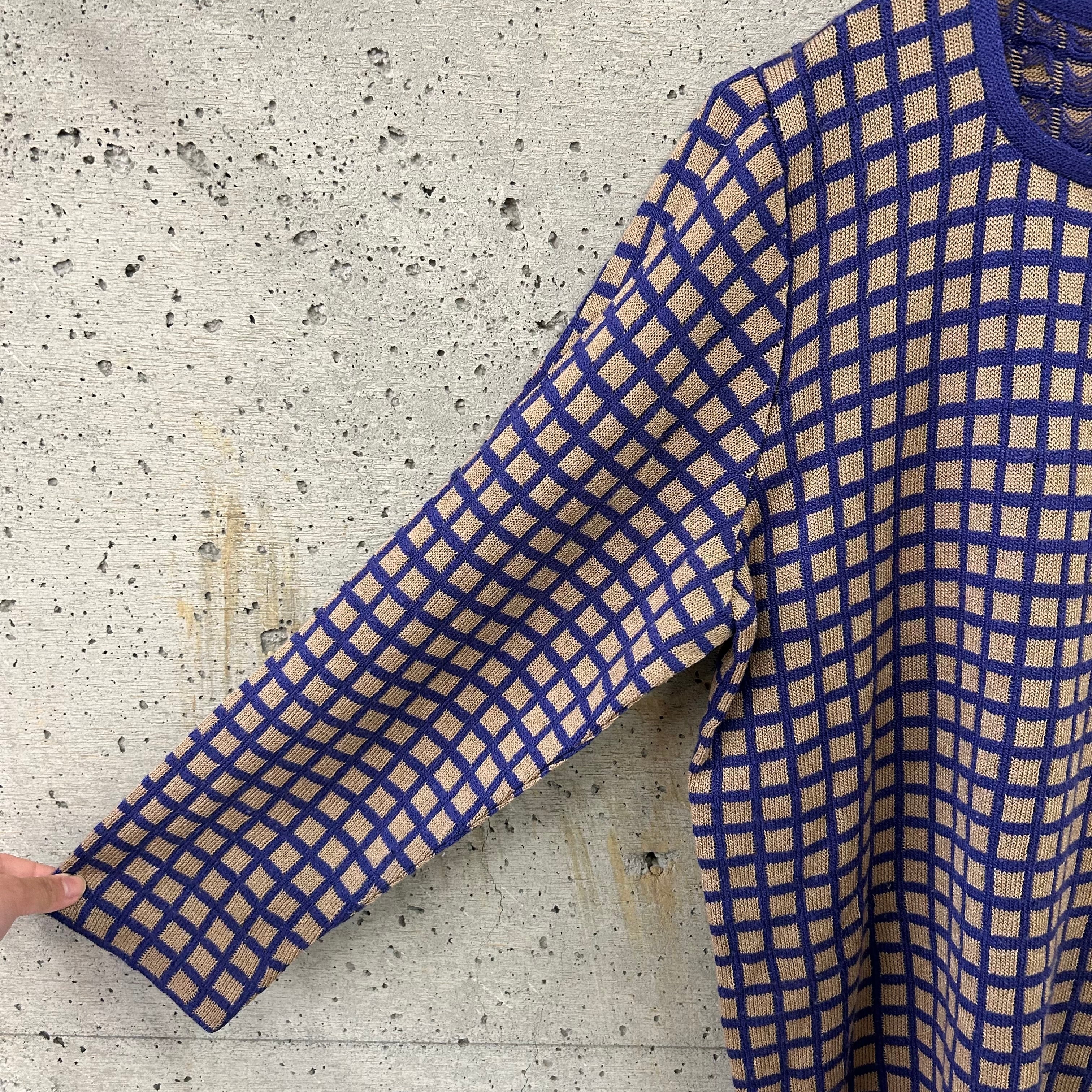 スクエアチェックの柄のニットトップスです。