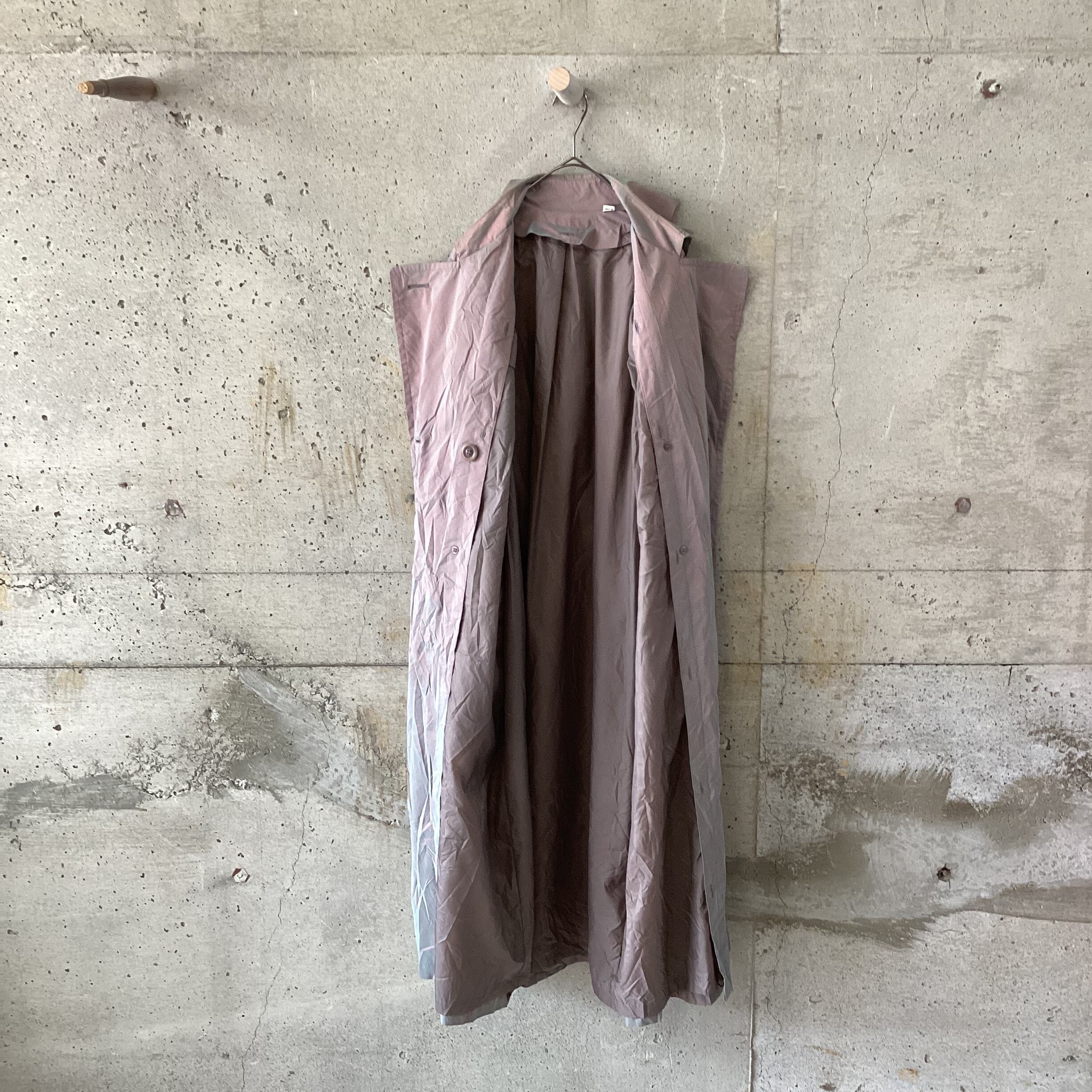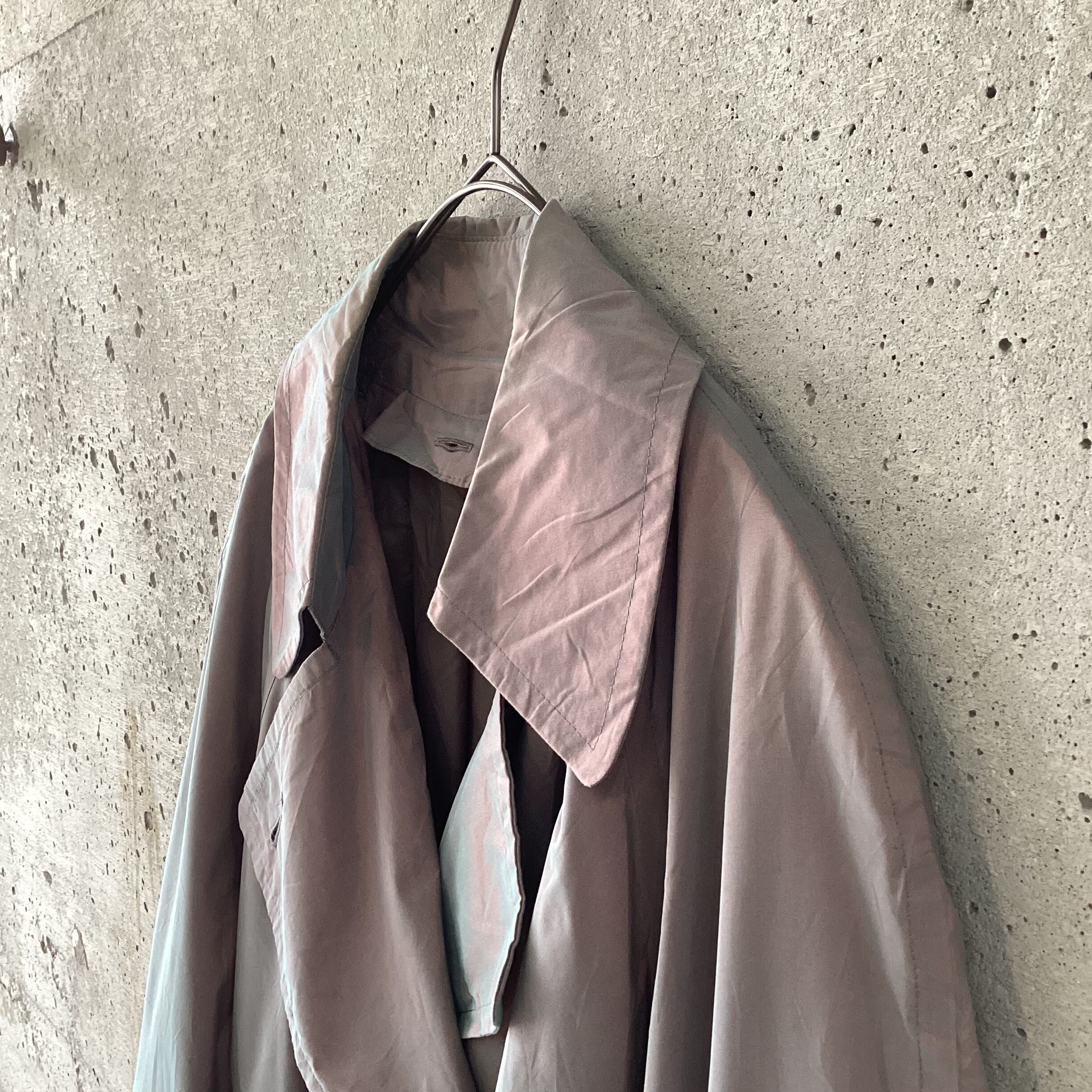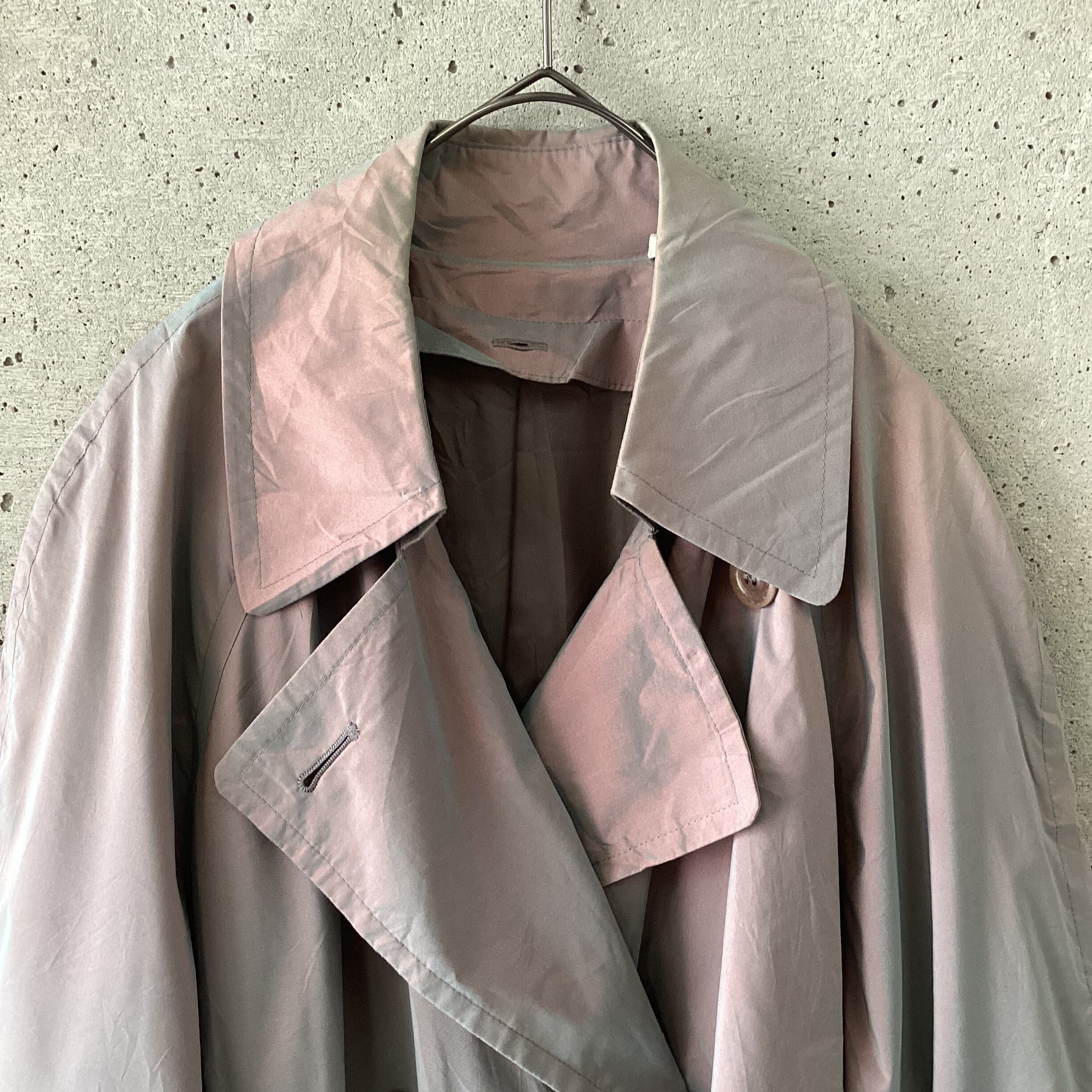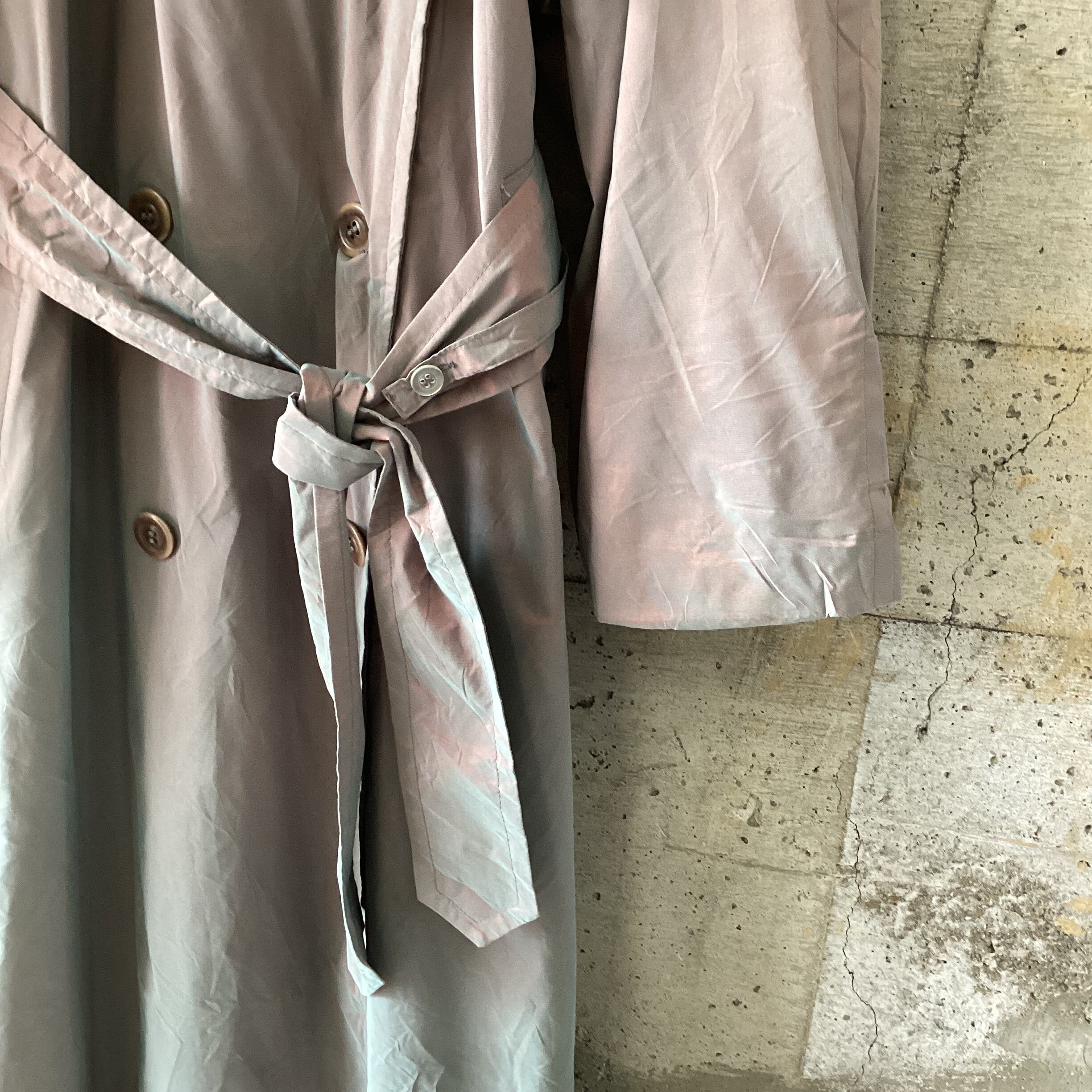 レッドとグリーンの玉虫色のトレンチコートです。