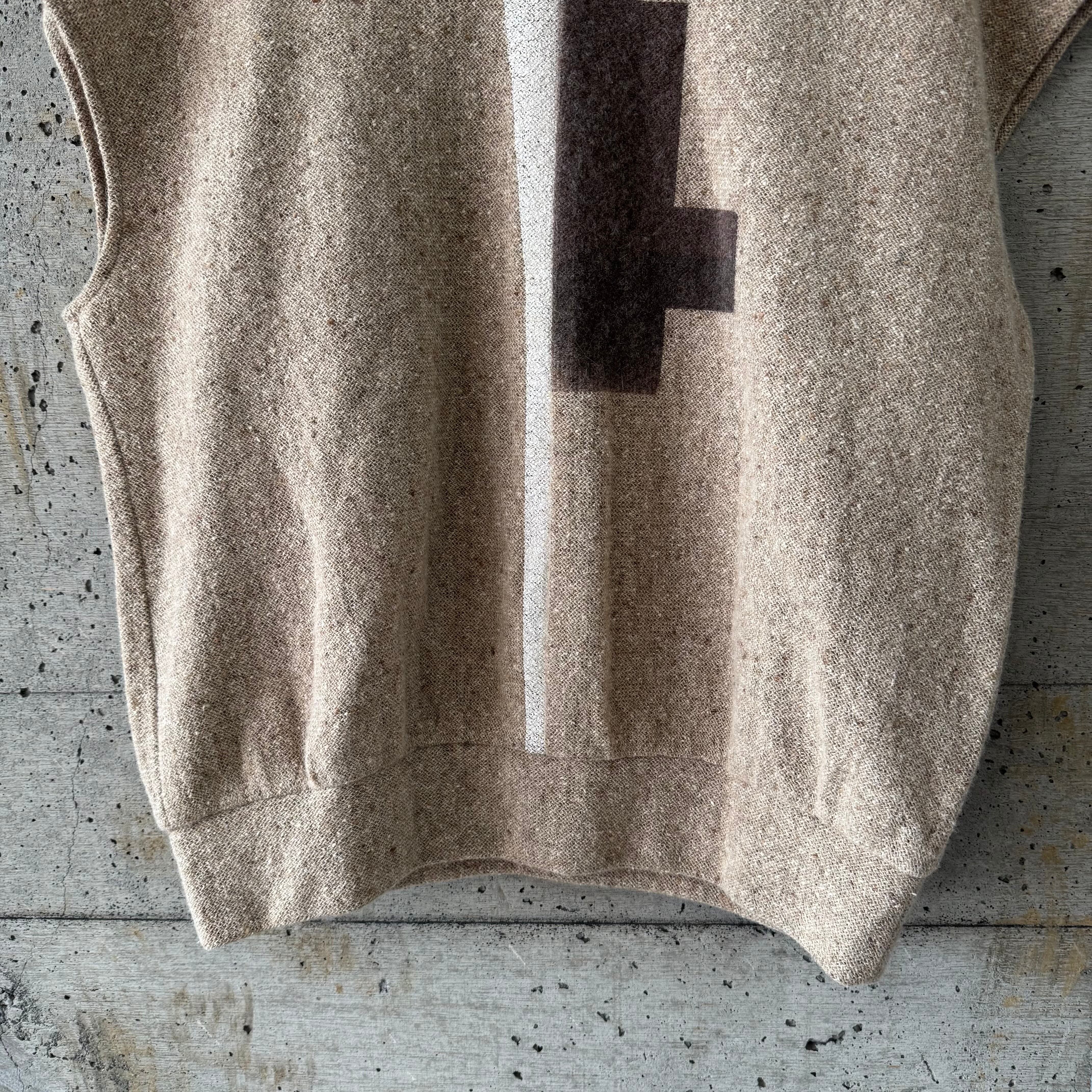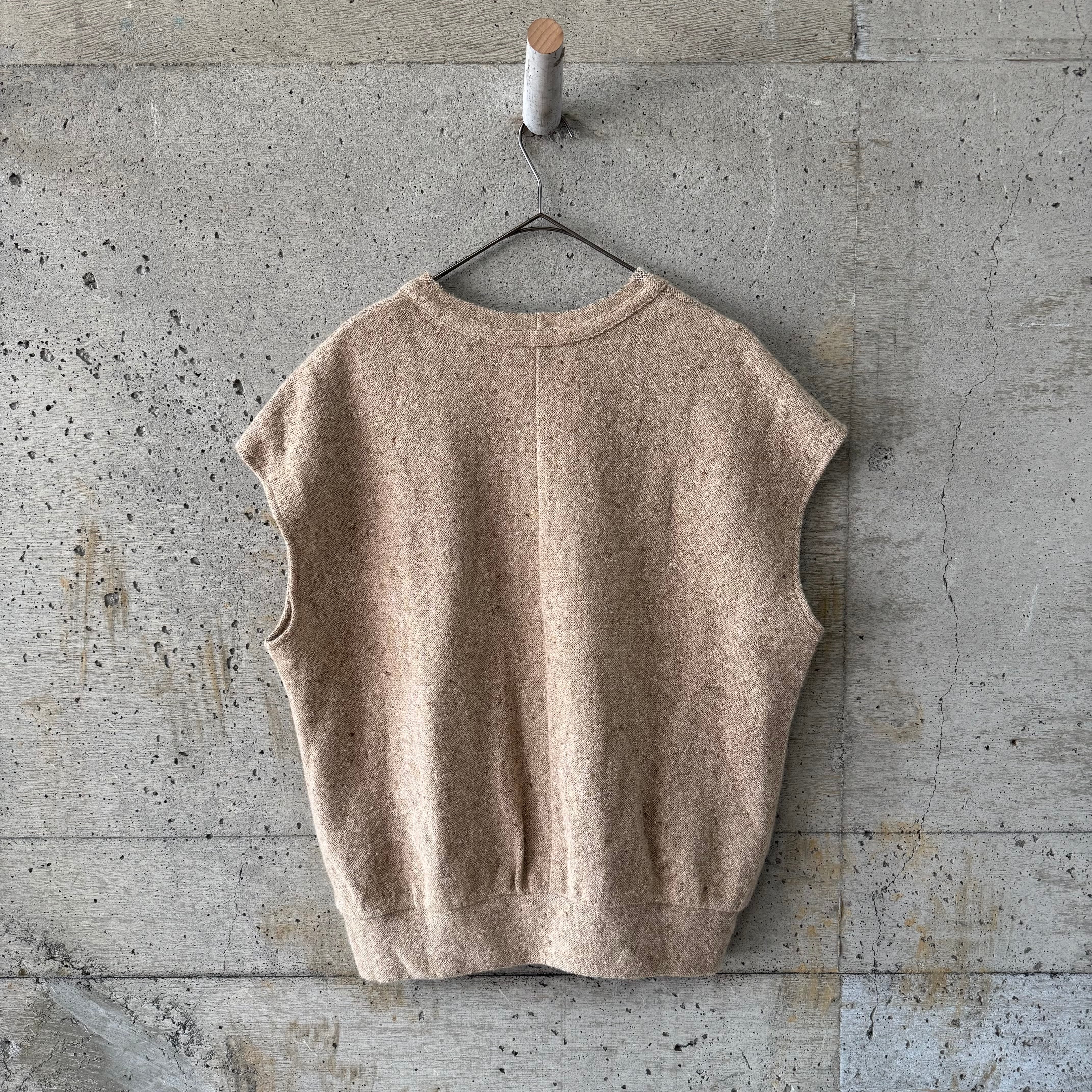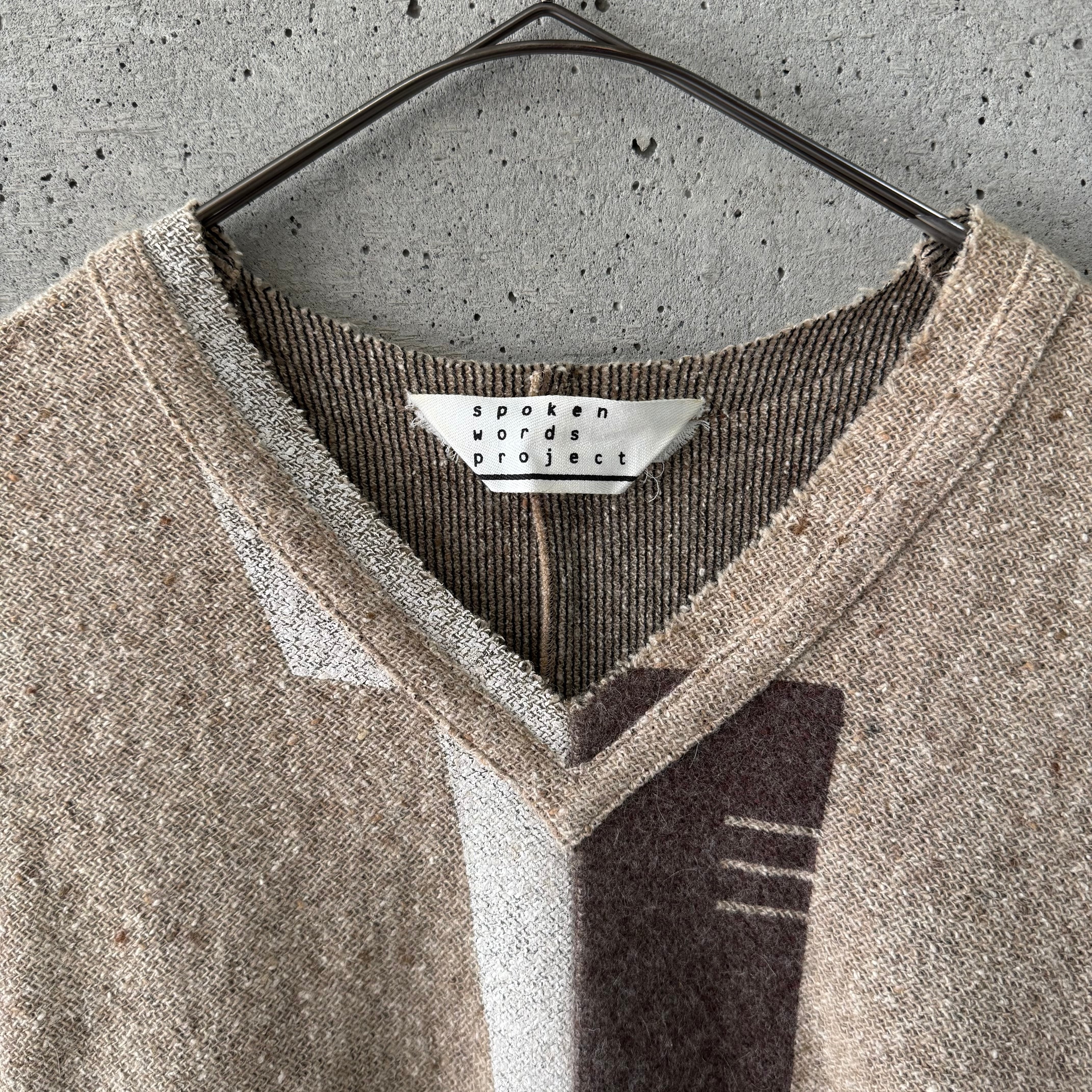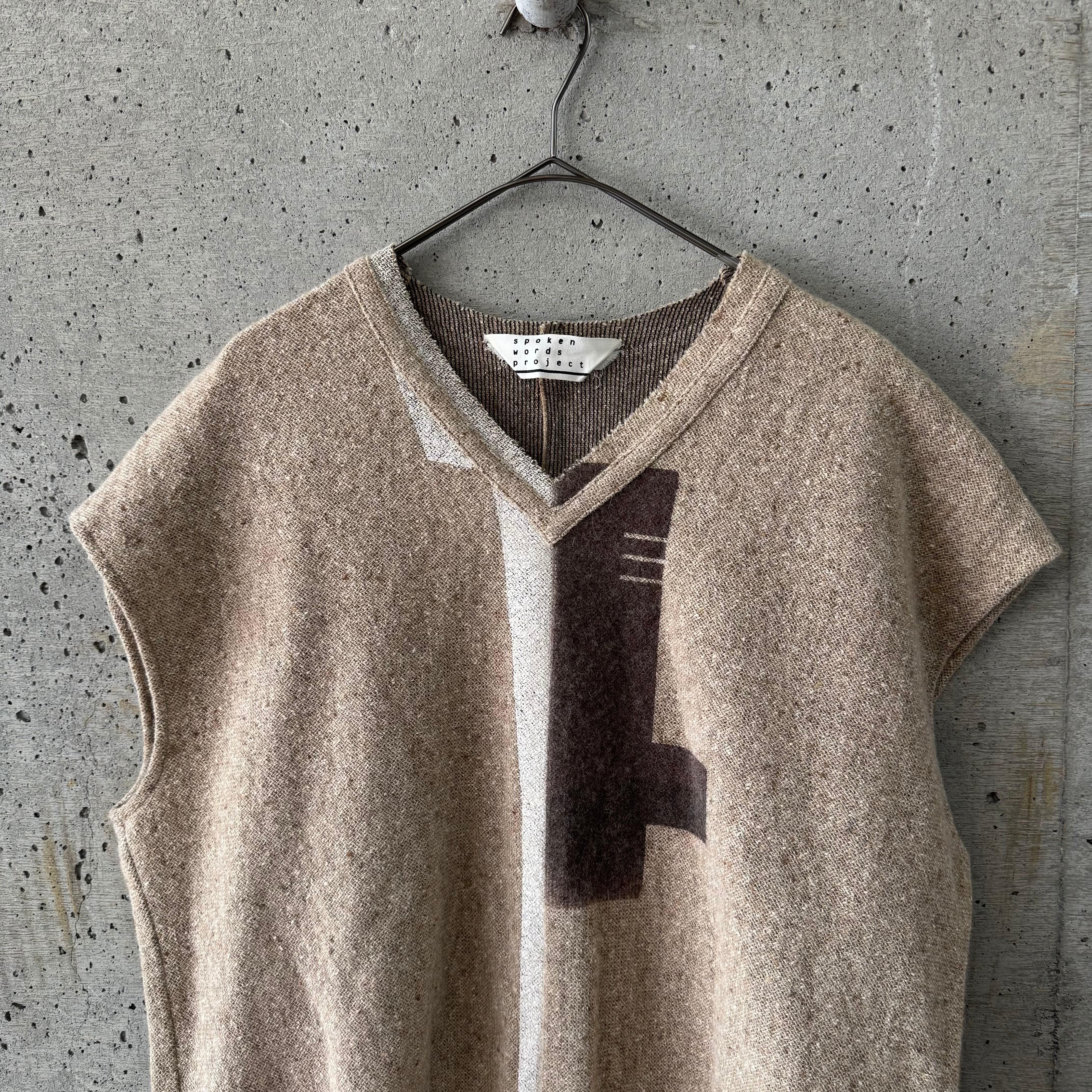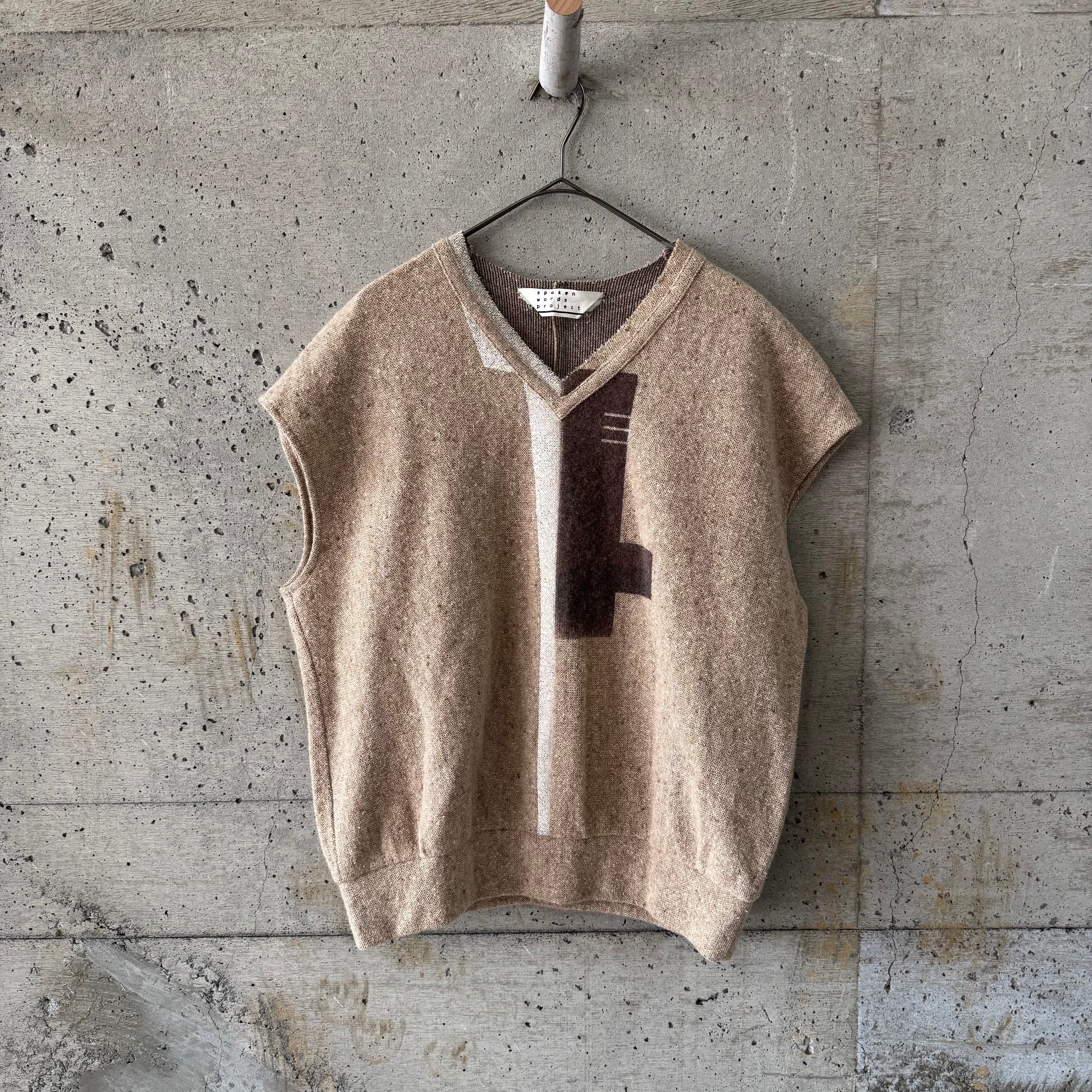 ペンキで描かれたような柄が特徴的なニットベストです。