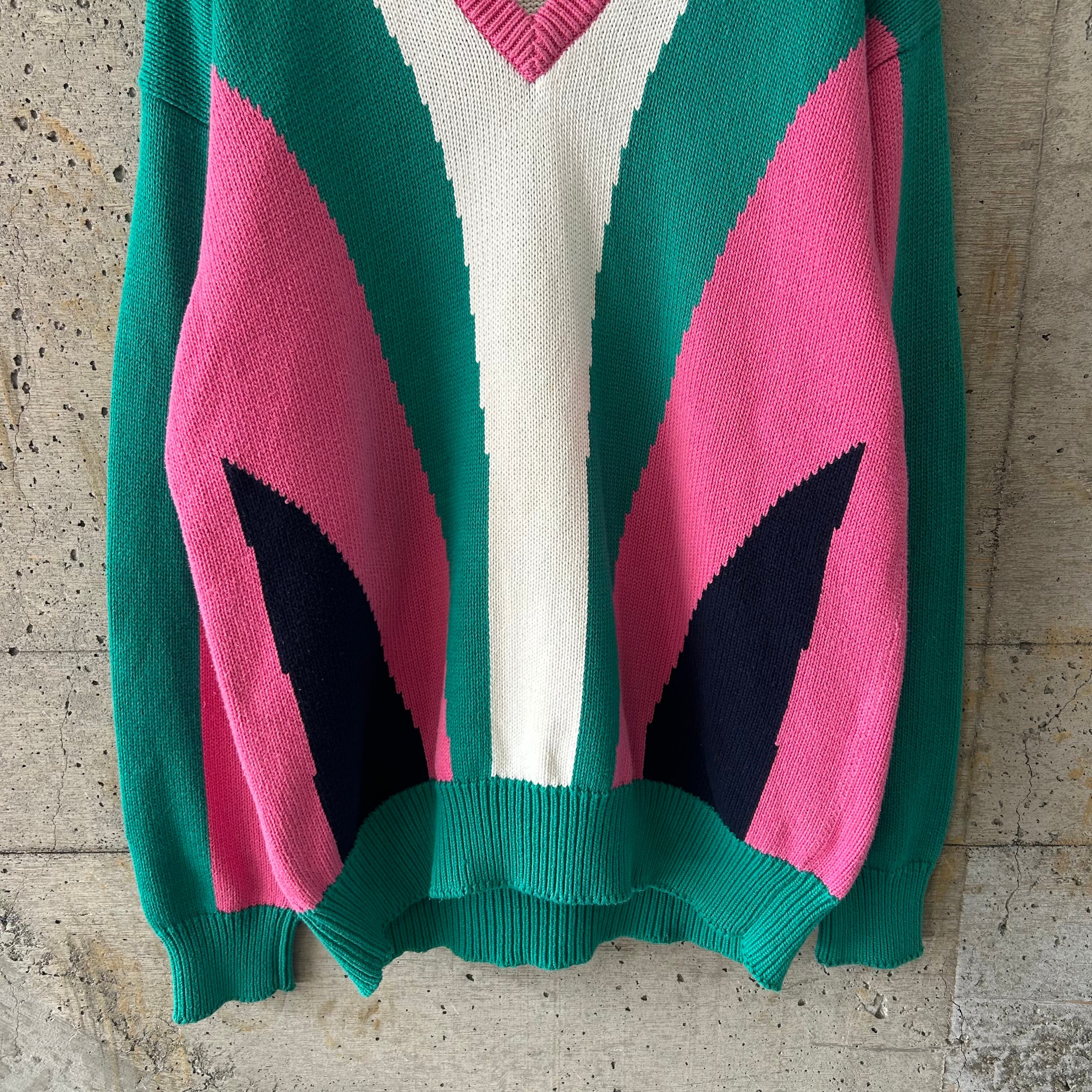 春らしい鮮やかな色味が素敵なコットンニットです。
