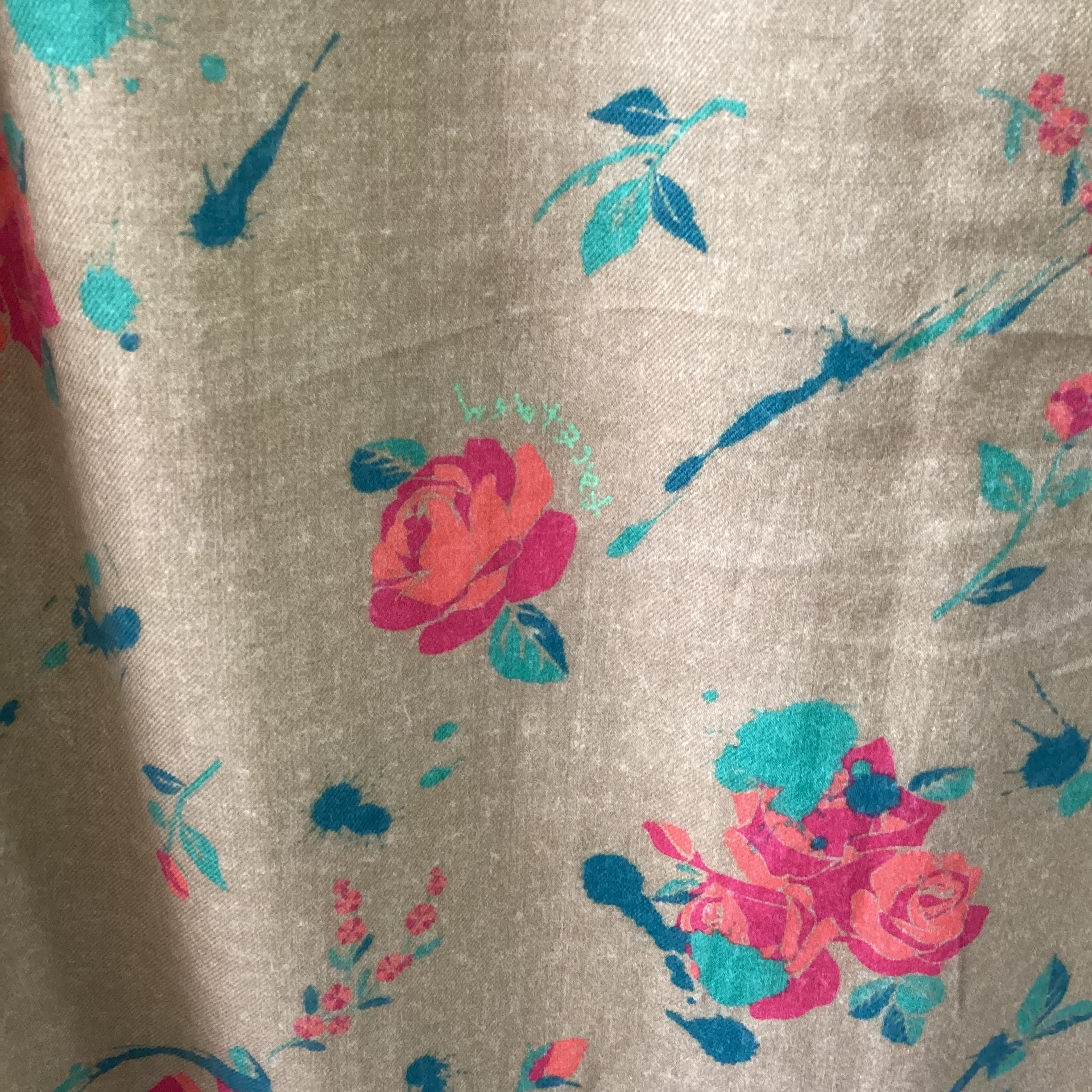 生地にはパキッとした色味のバラがプリントされ、色味も相まって少しレトロな印象を与えます。