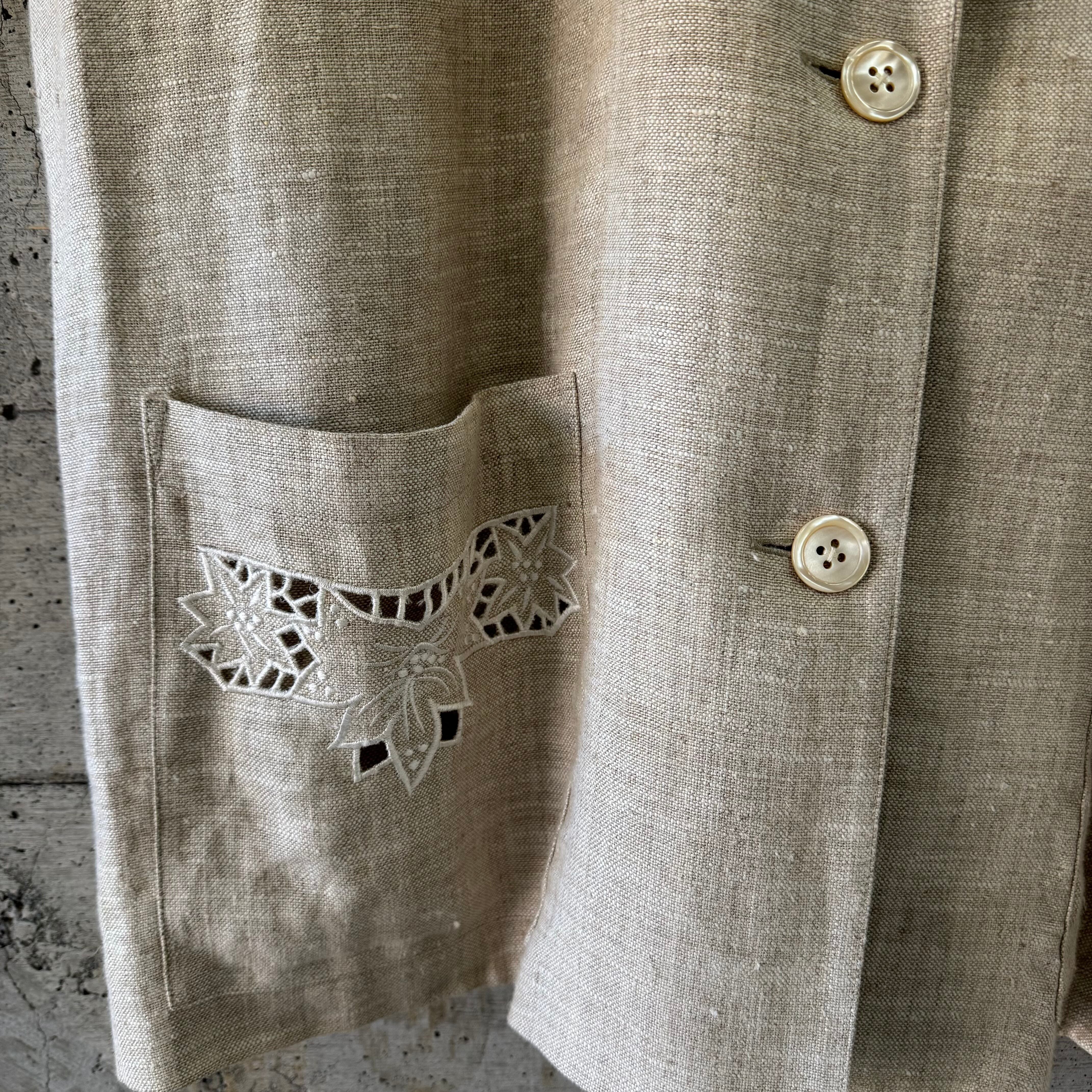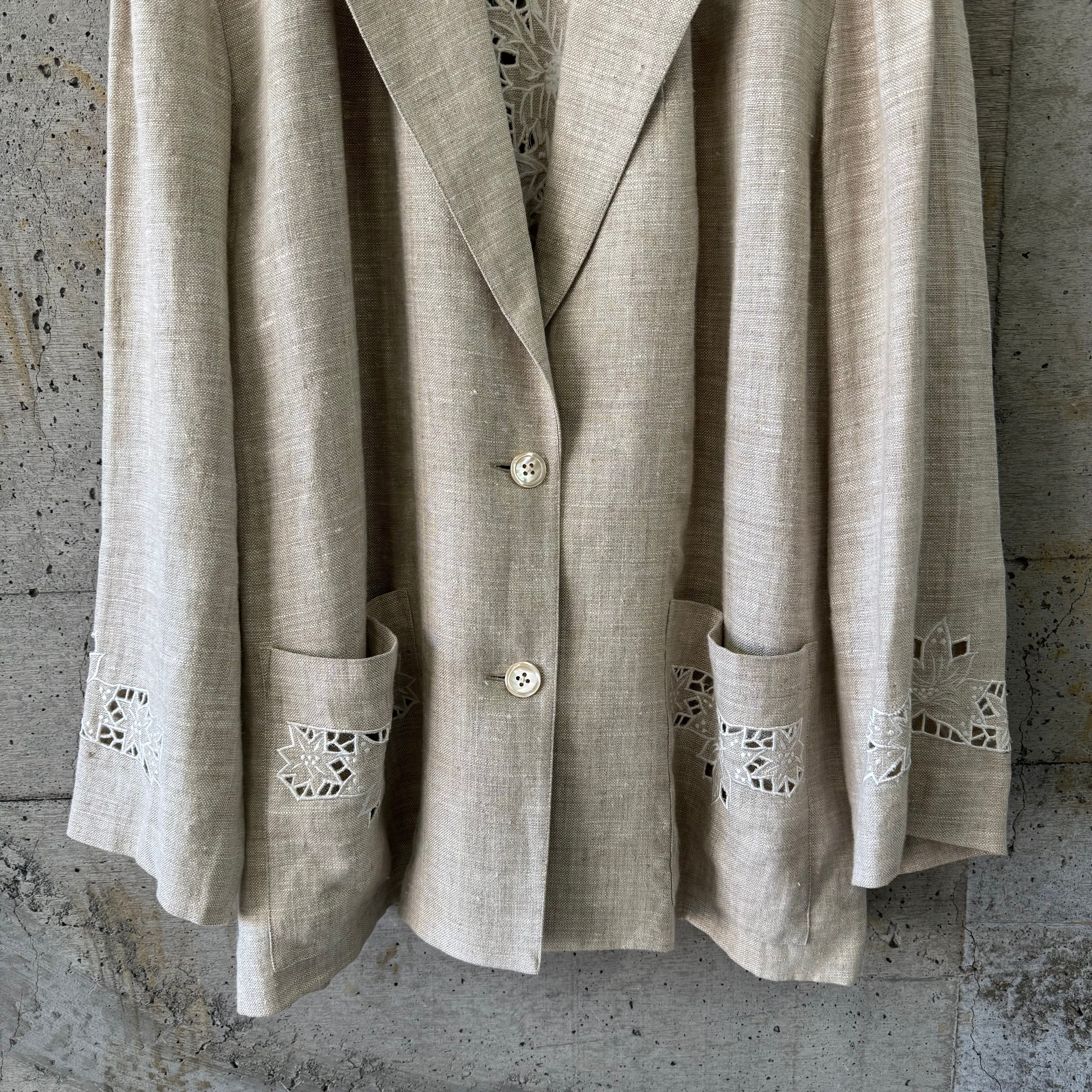 Lace-cut beige linen jacket