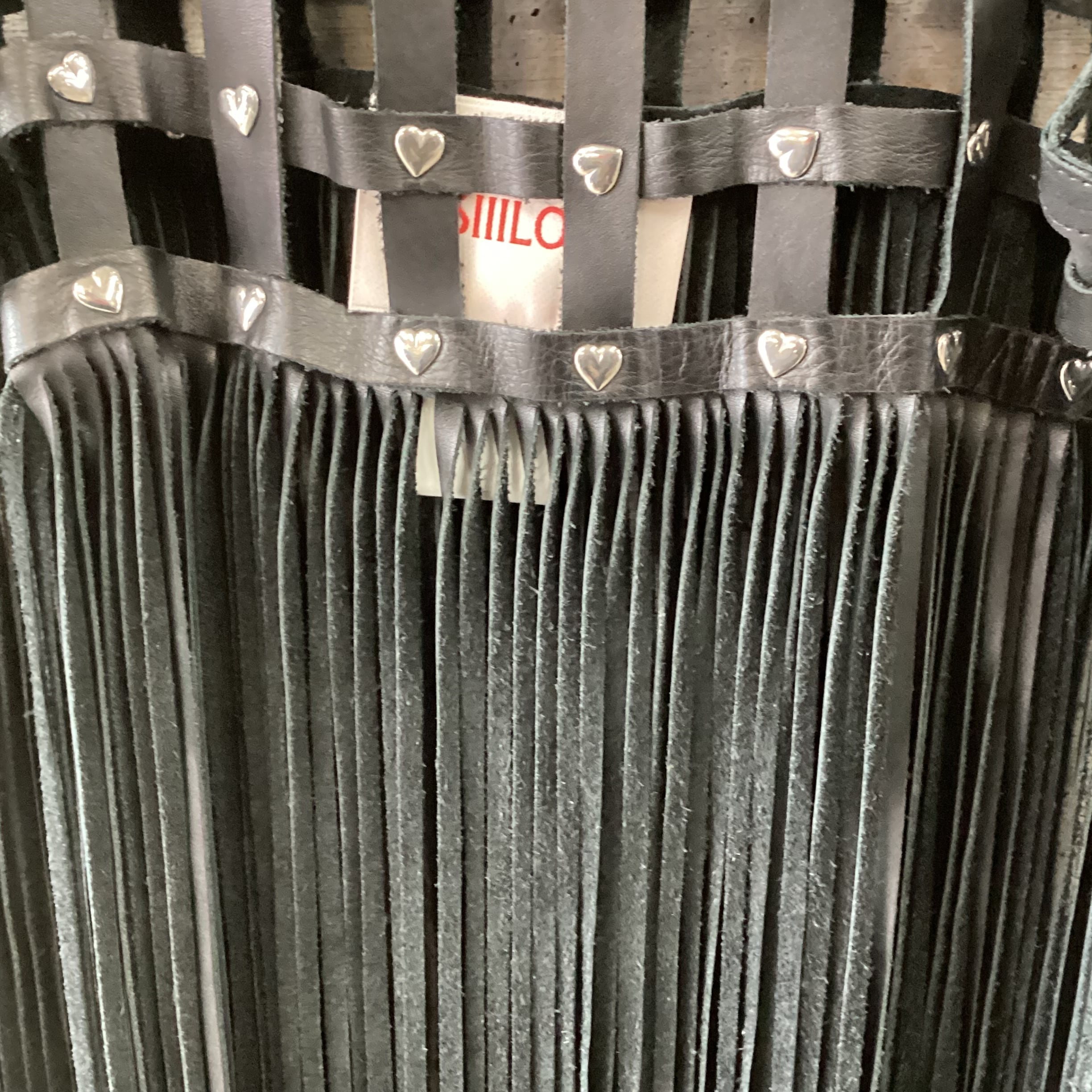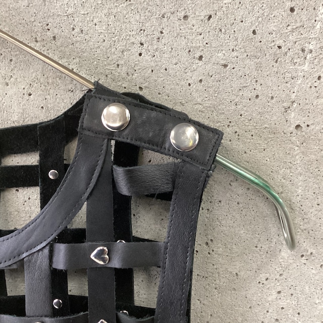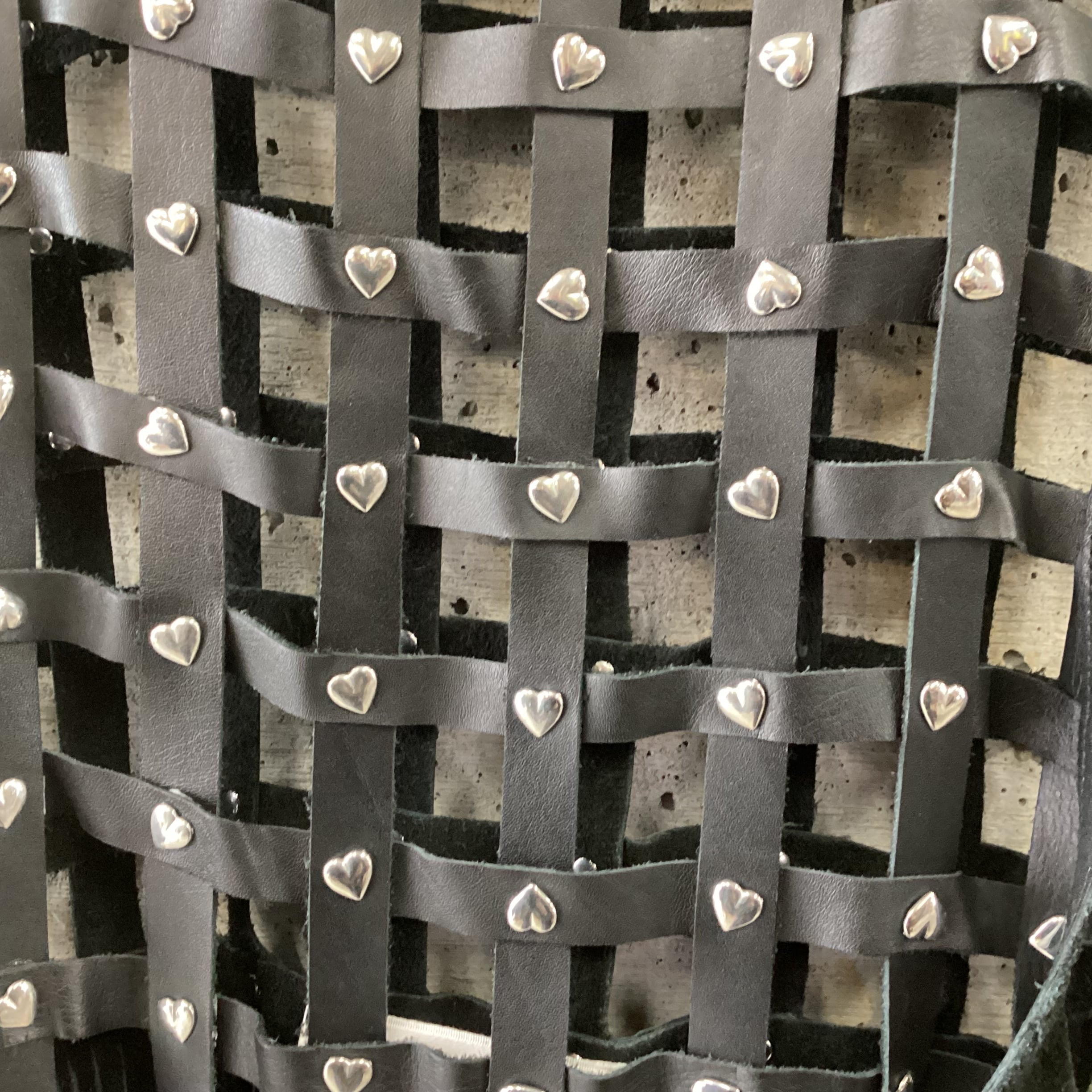 上部分は格子状に編まれたレザーにハートのスタッズが取り付けられています。