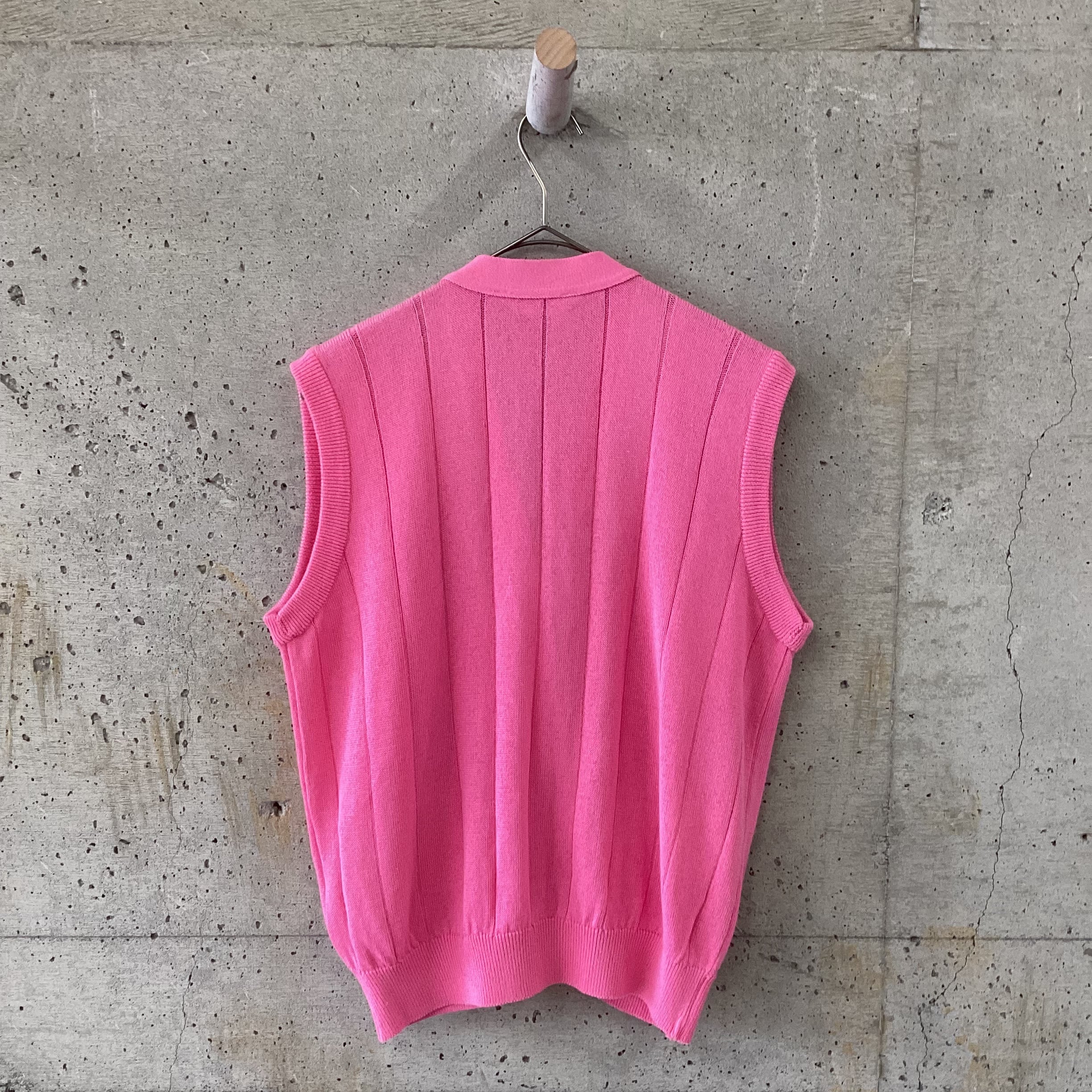 • Eye-catching pink knit vest
