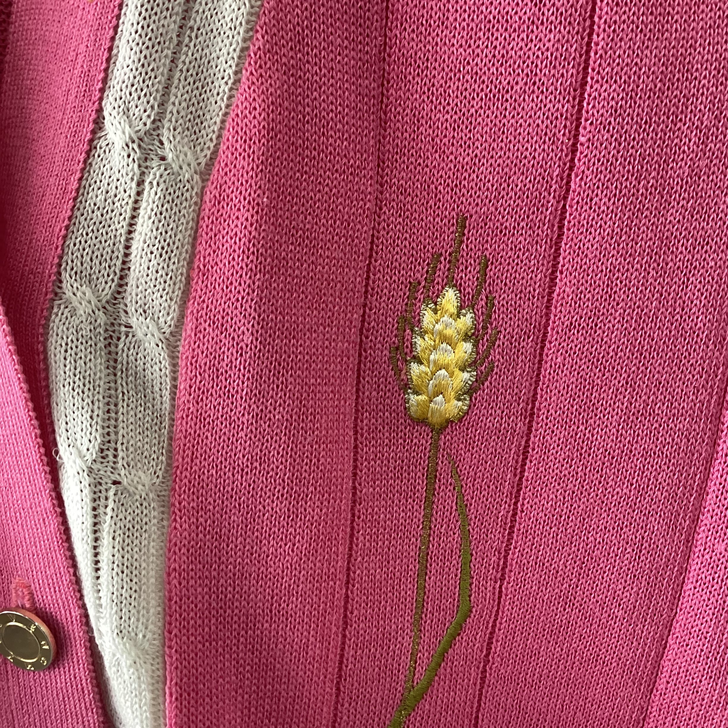 綺麗なピンクに麦の穂の刺繍があしらわれたニットベストです。