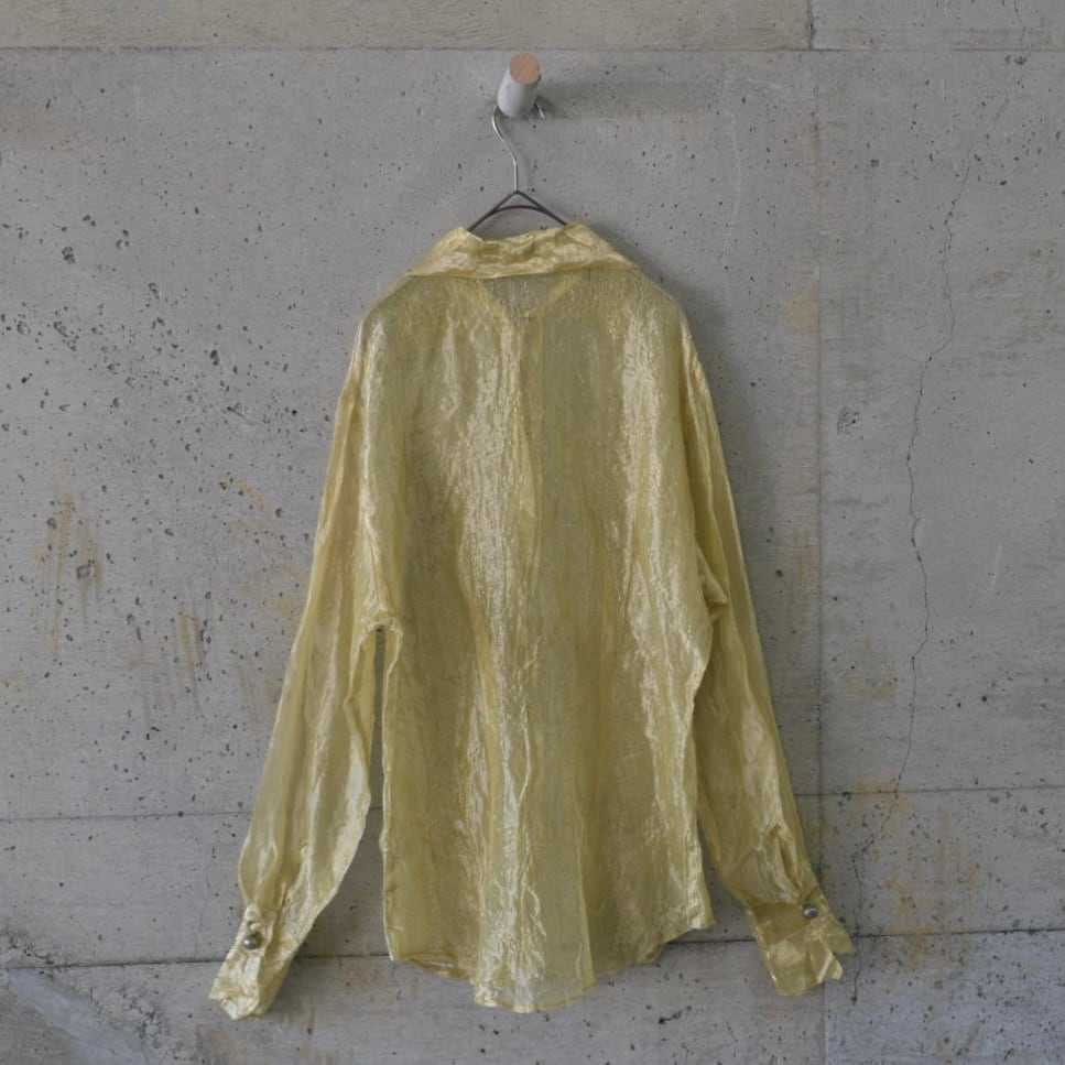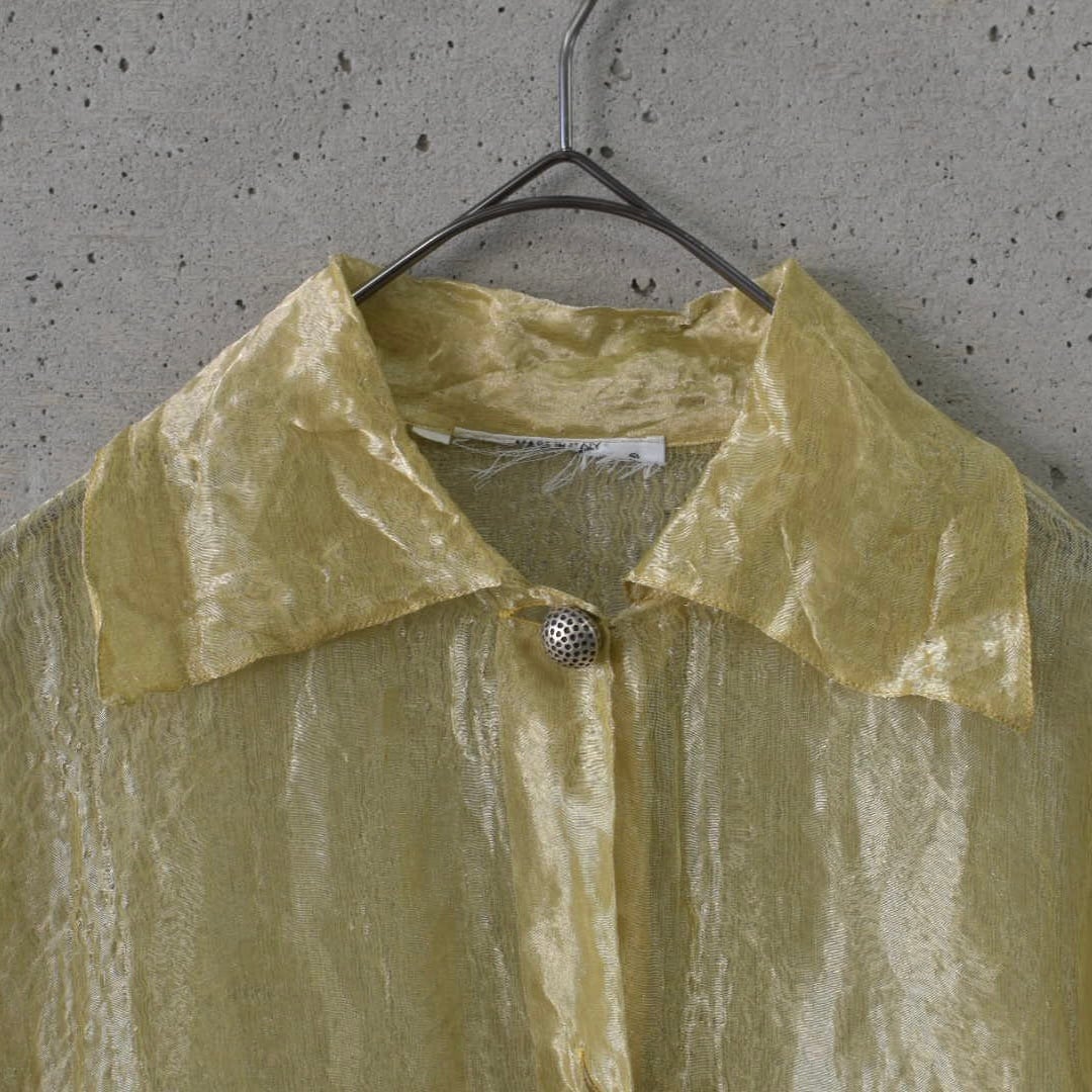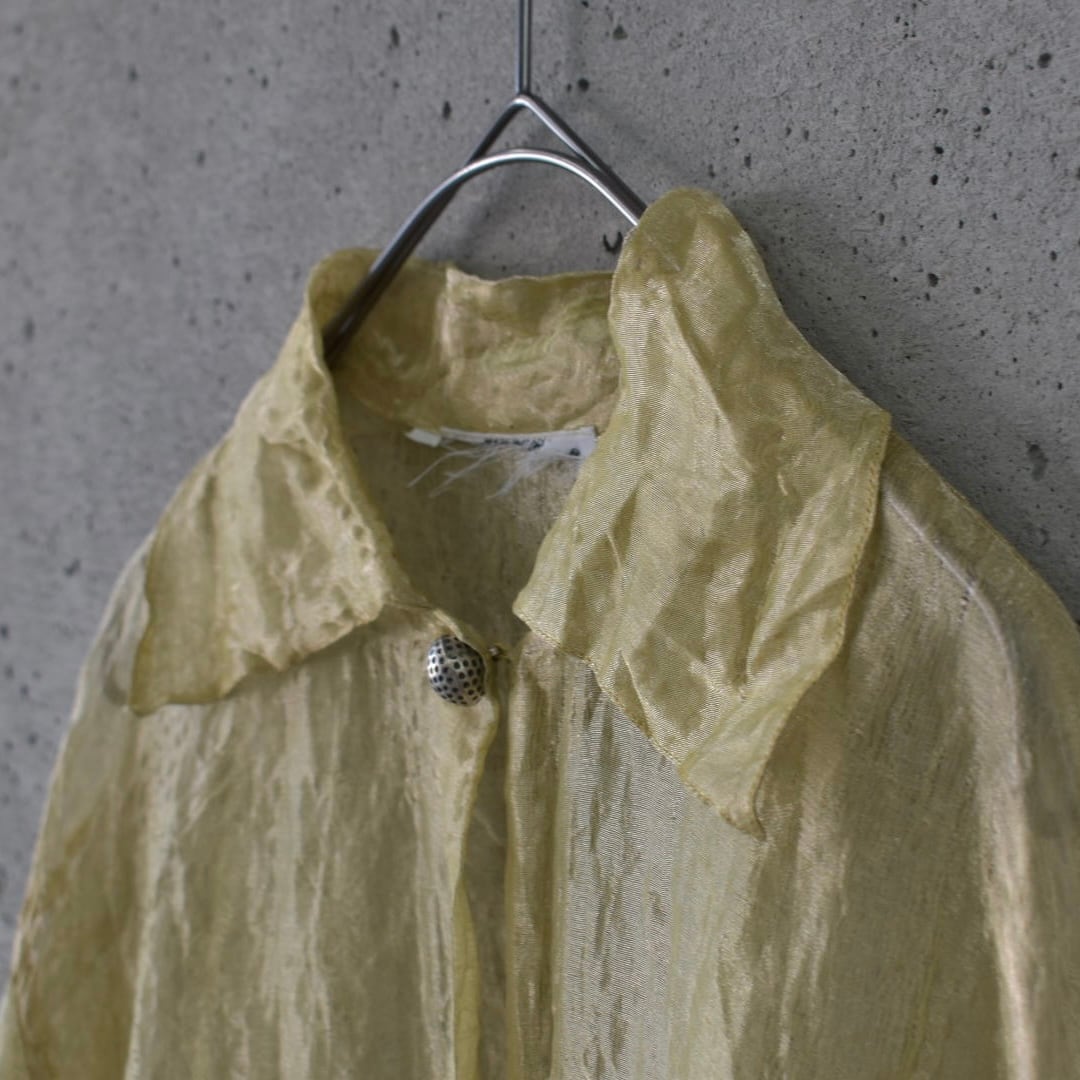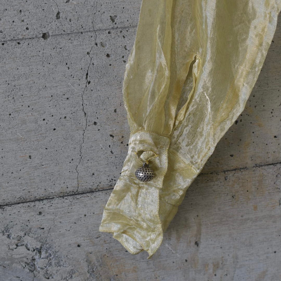 ドットのメタルボタンと、シアー素材が印象的なシャツです。