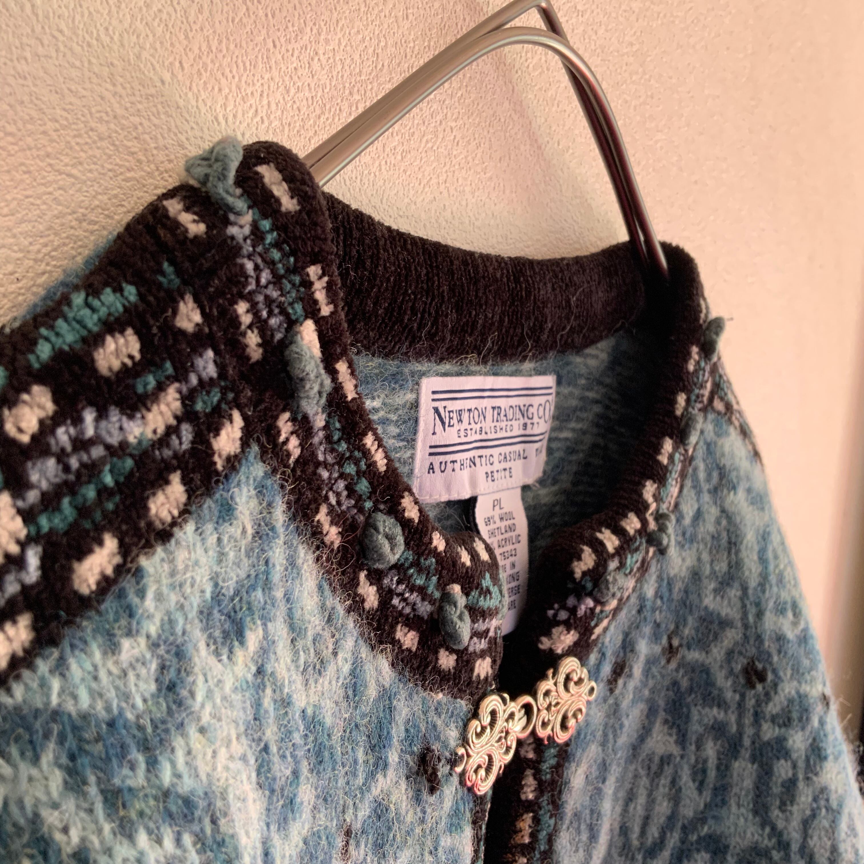 ネック、裾、袖口のニットの刺繍が立体的でポイントになっています
