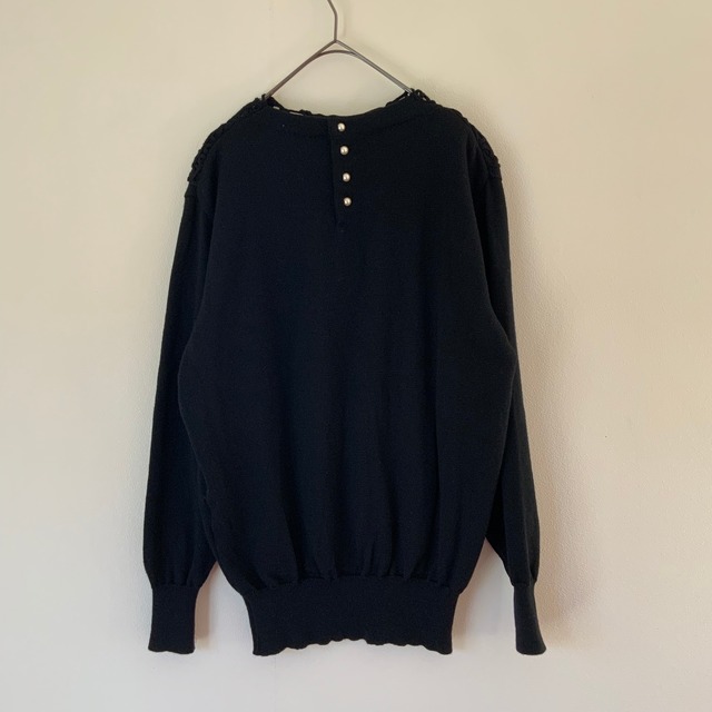 [ COLOR ] ブラック [ SIZE ] 着丈62cm 肩幅43cm 袖丈55cm 身幅51cm ※平置き採寸です。若干のずれが生じる場合がございますので予めご了承下さい。 [ MATERIAL] 毛100% [ CONDITION] 目立った汚れはありません ※記載の無いわずかなダメージがある場合もあります。予めご了承ください。