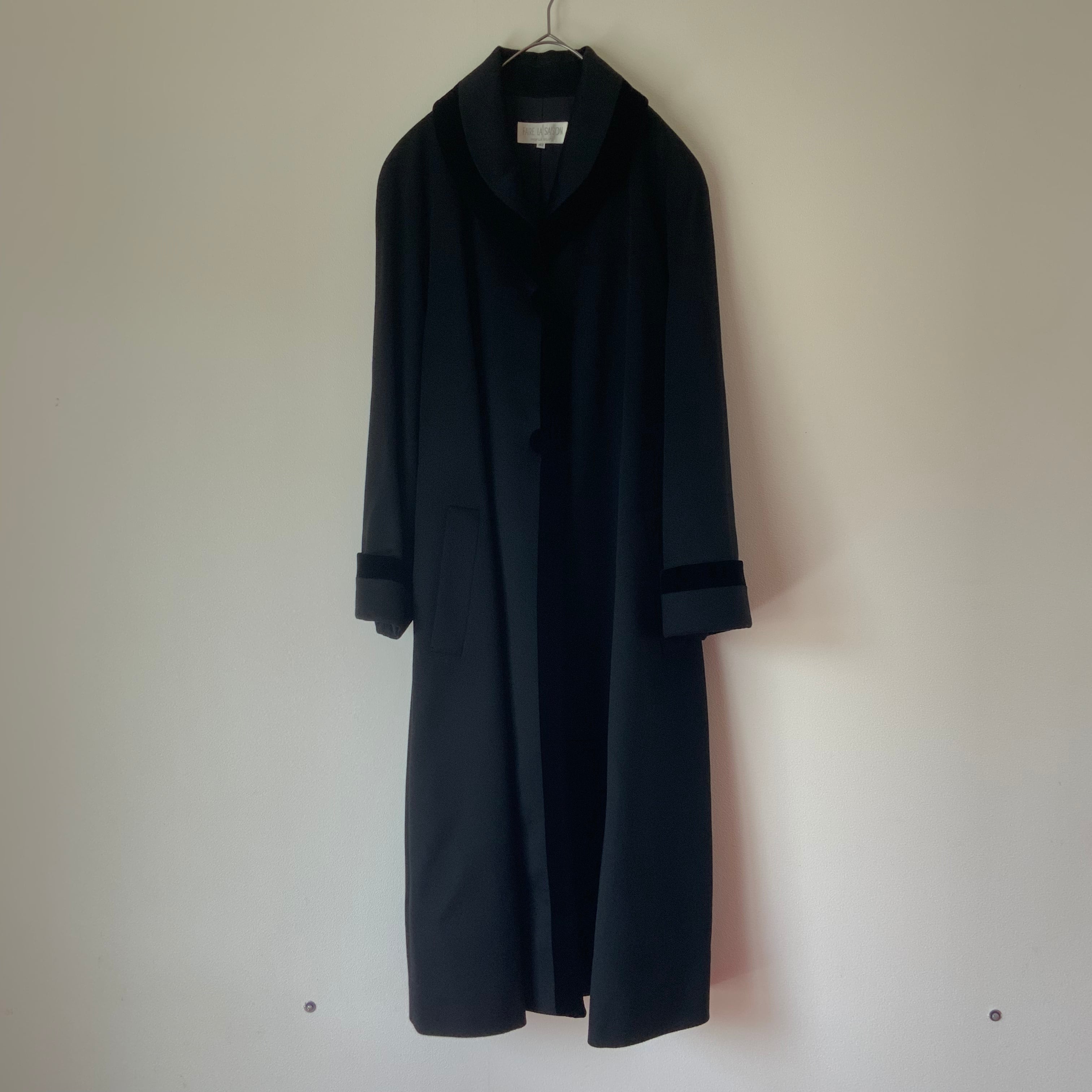 ソフトなAラインとベロアのトリムが上品なコート