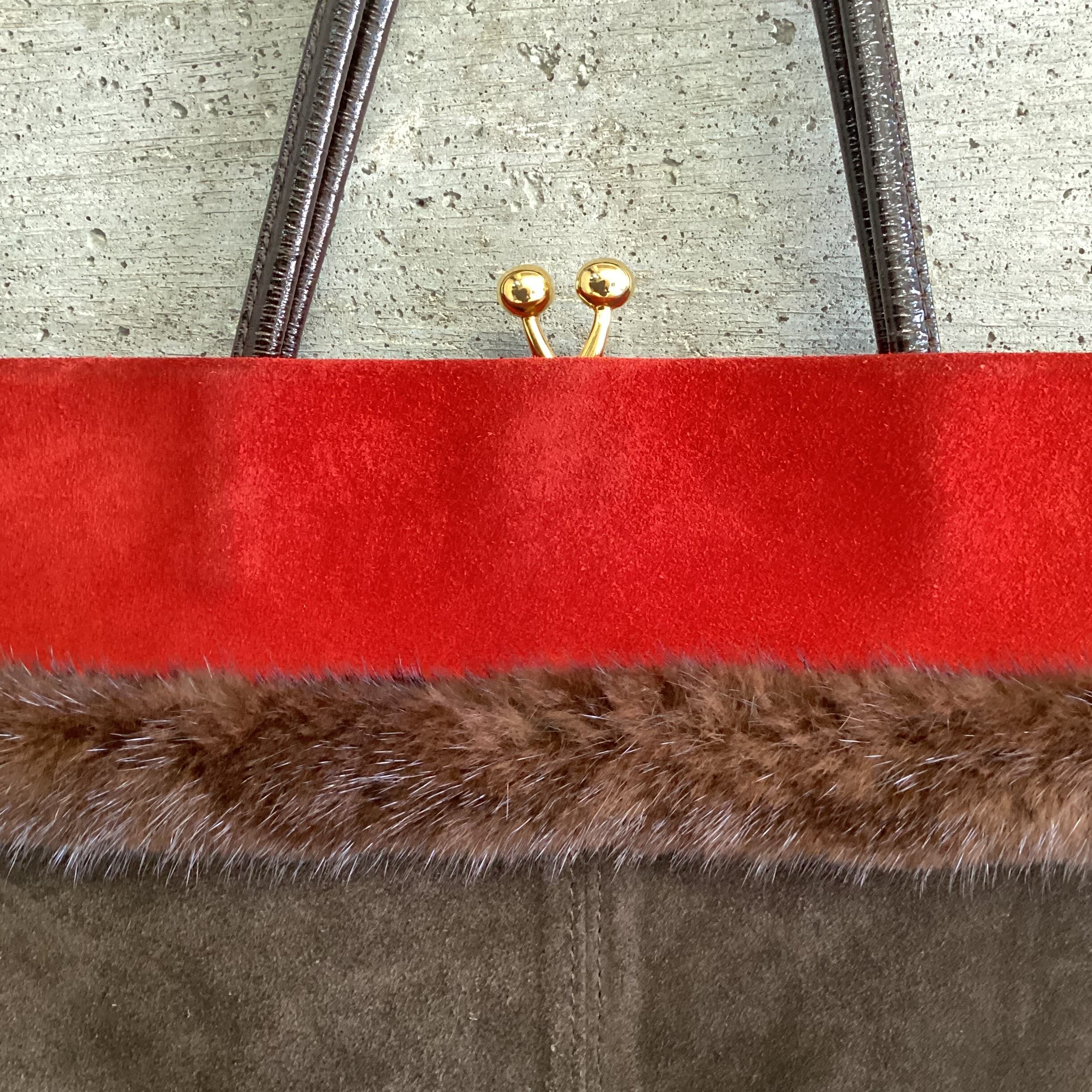 gamaguchi fur x suede bag