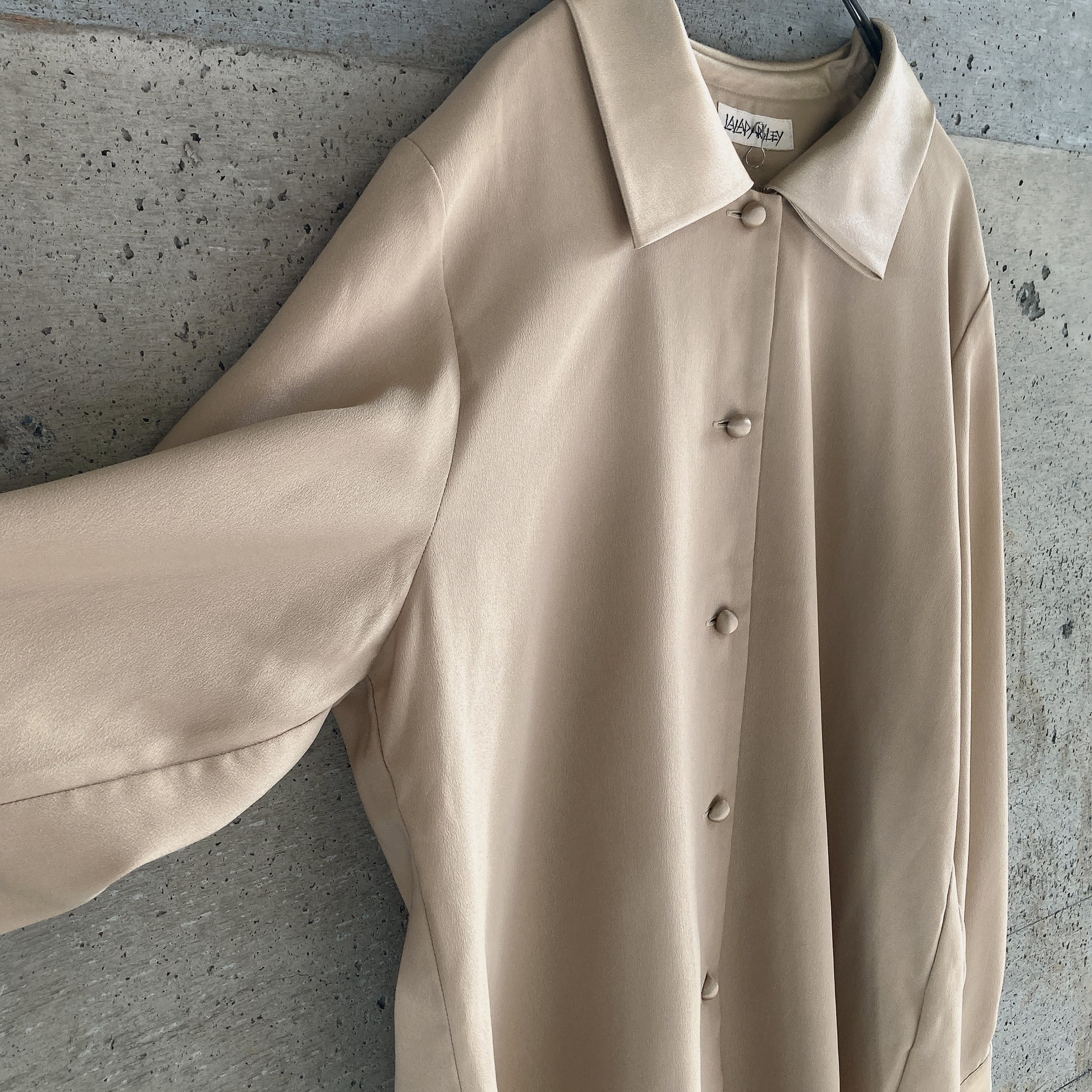 サテンの切り替えやくるみボンタンが華やかさを添えます