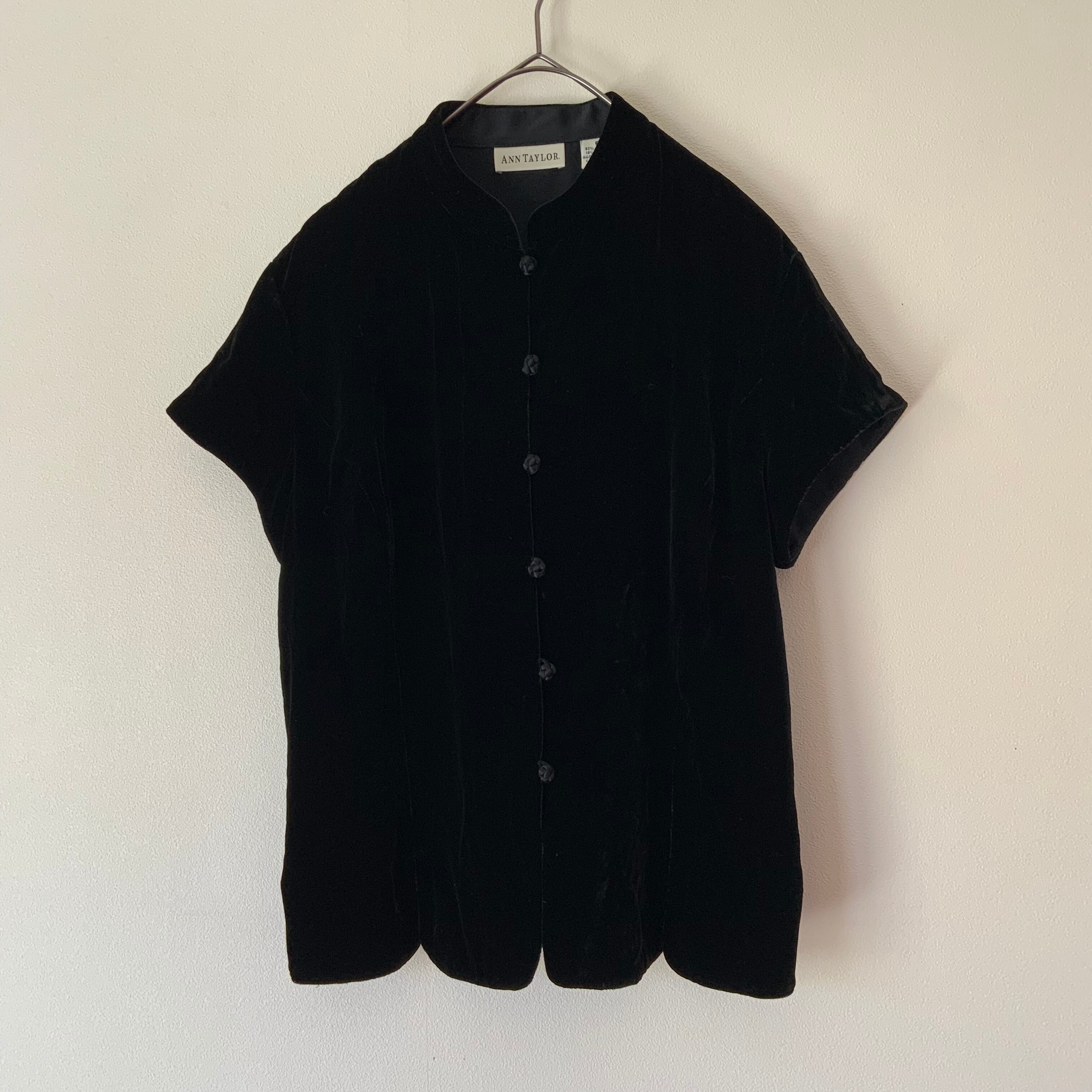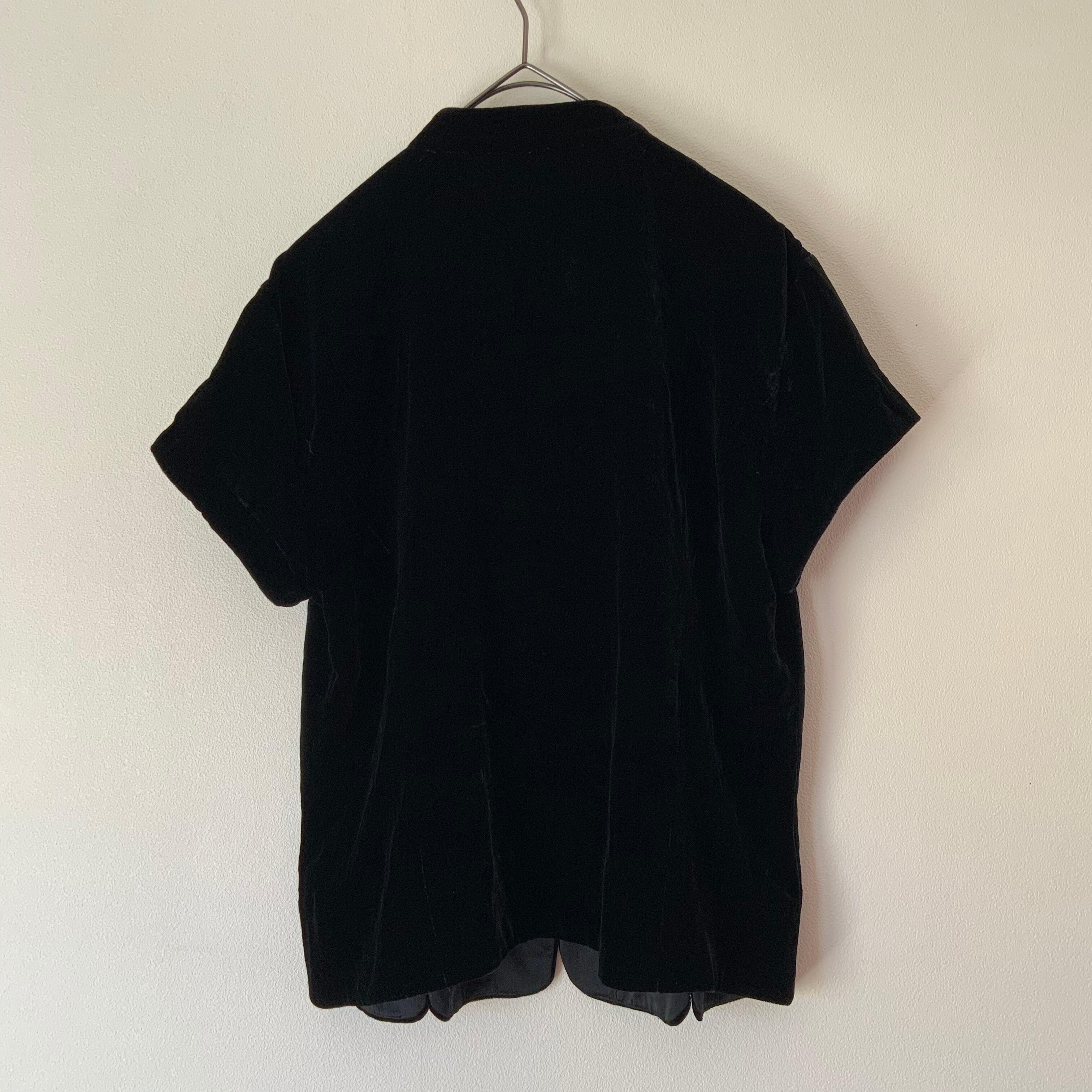 コロンとしたボタンがオリエンタルな印象のベロアトップス