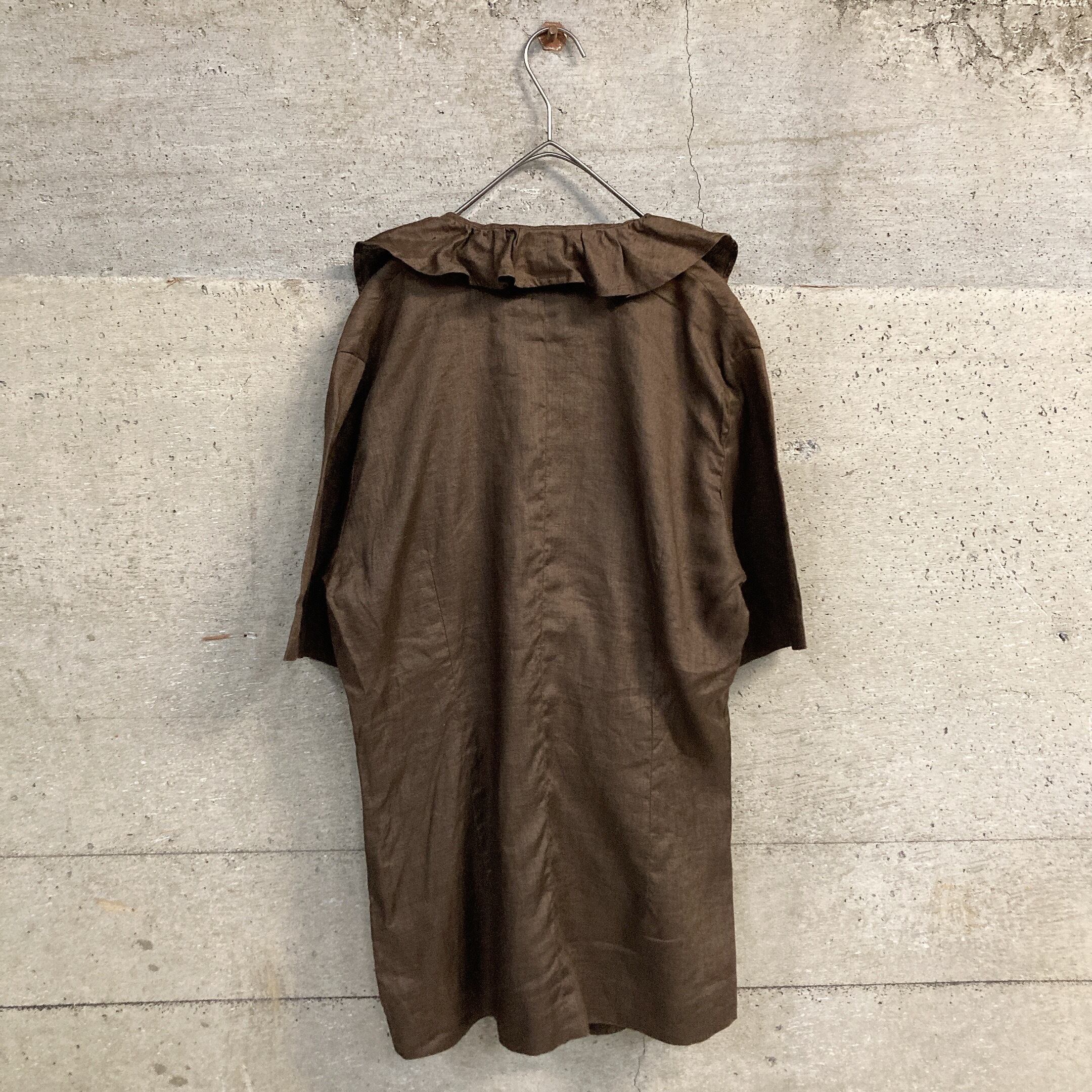 フリルですが、麻素材と色のトーンが大人っぽく可愛らしいイメージではなくクールなイメージで着用できます