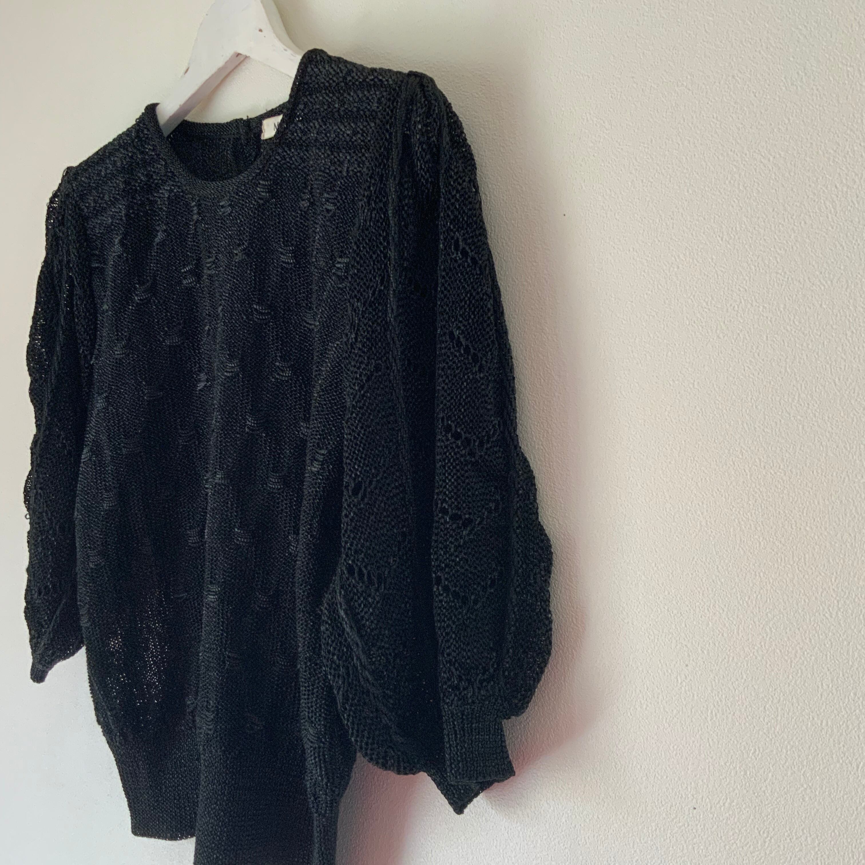 ボリュームのある袖や透かし編みがステキなニットです