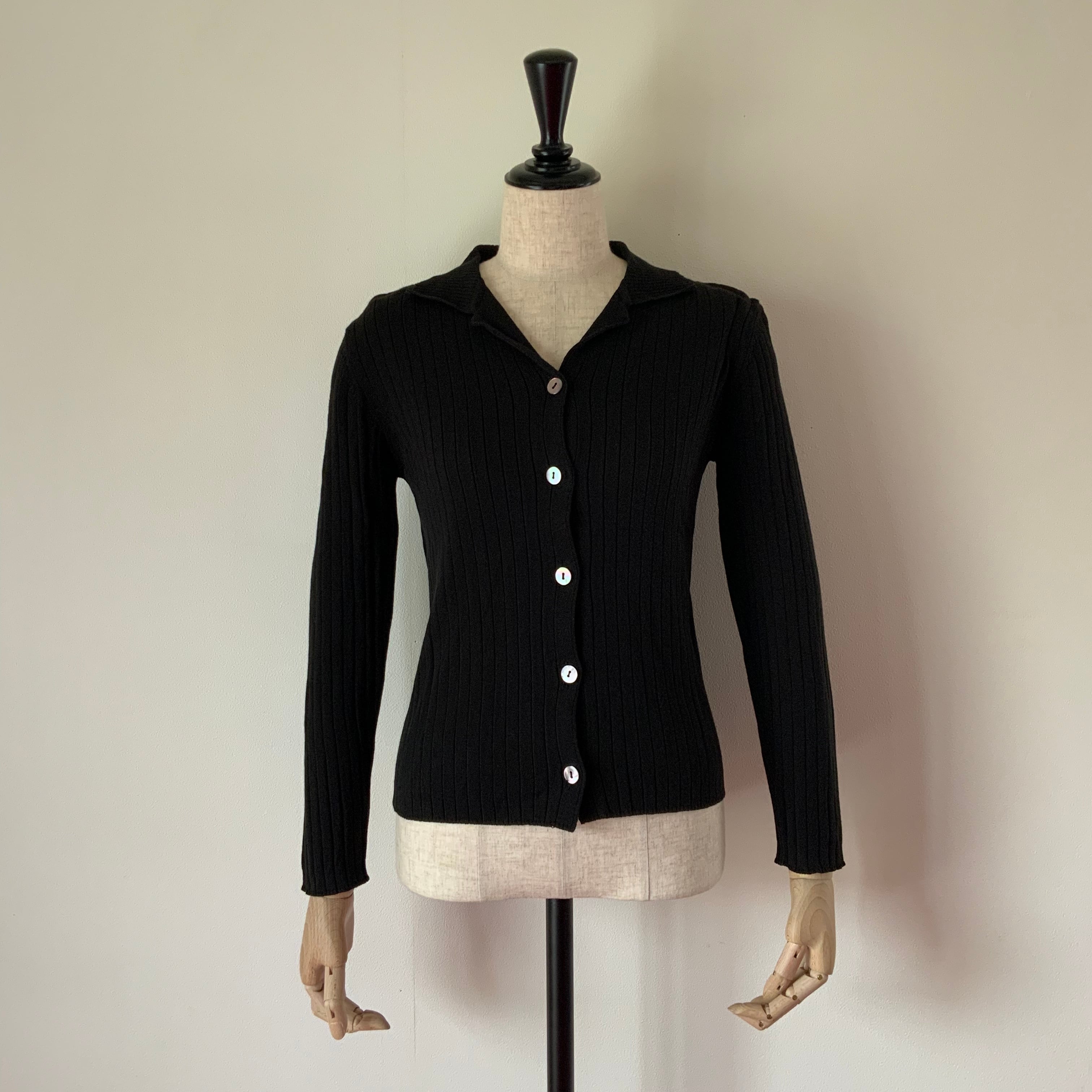 貝ボタンが上品で長く愛用できるシンプルで定番のカーディガン