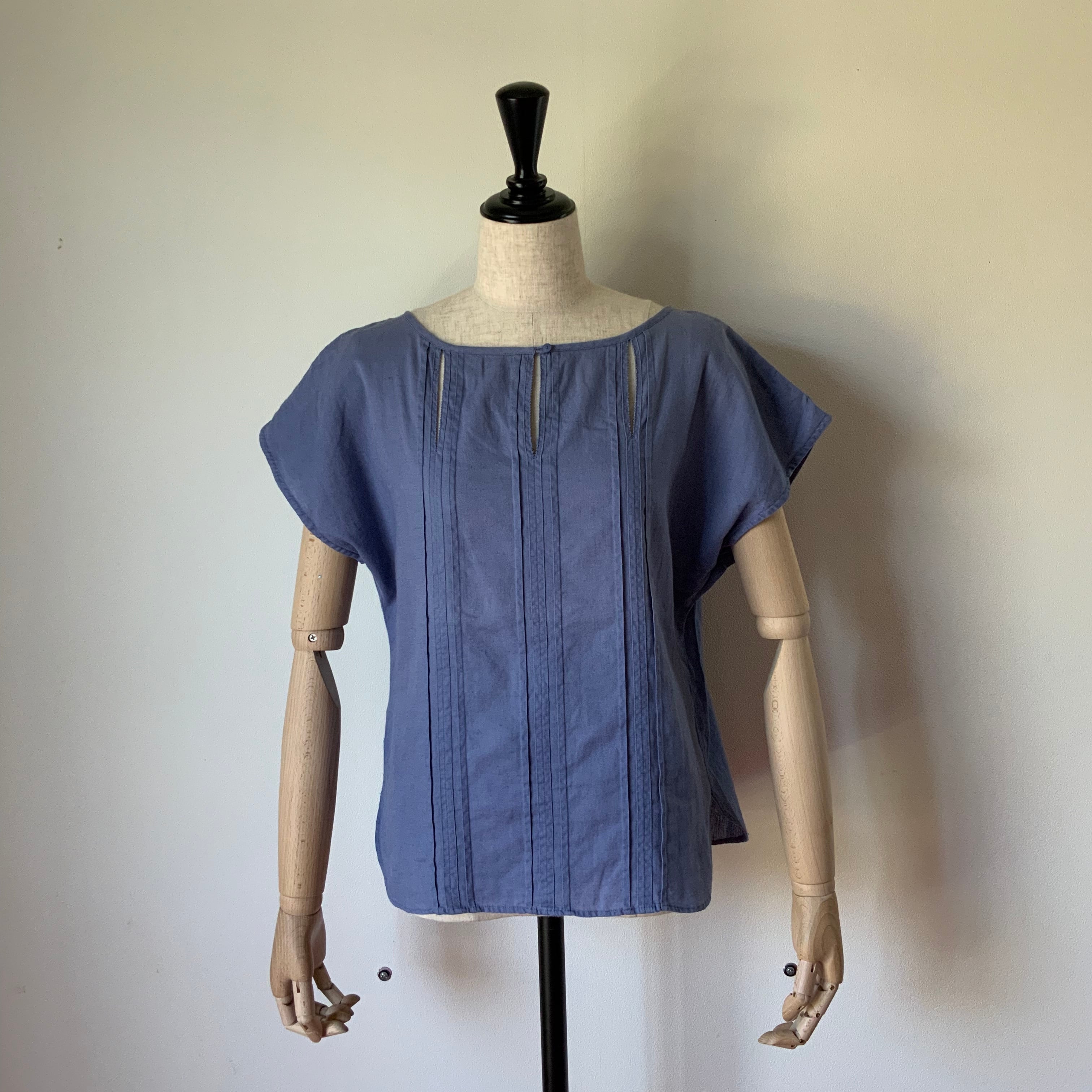 袖のラインとカッティングのラインがシャープな印象ですが、色味は優しい印象のブラウスです
