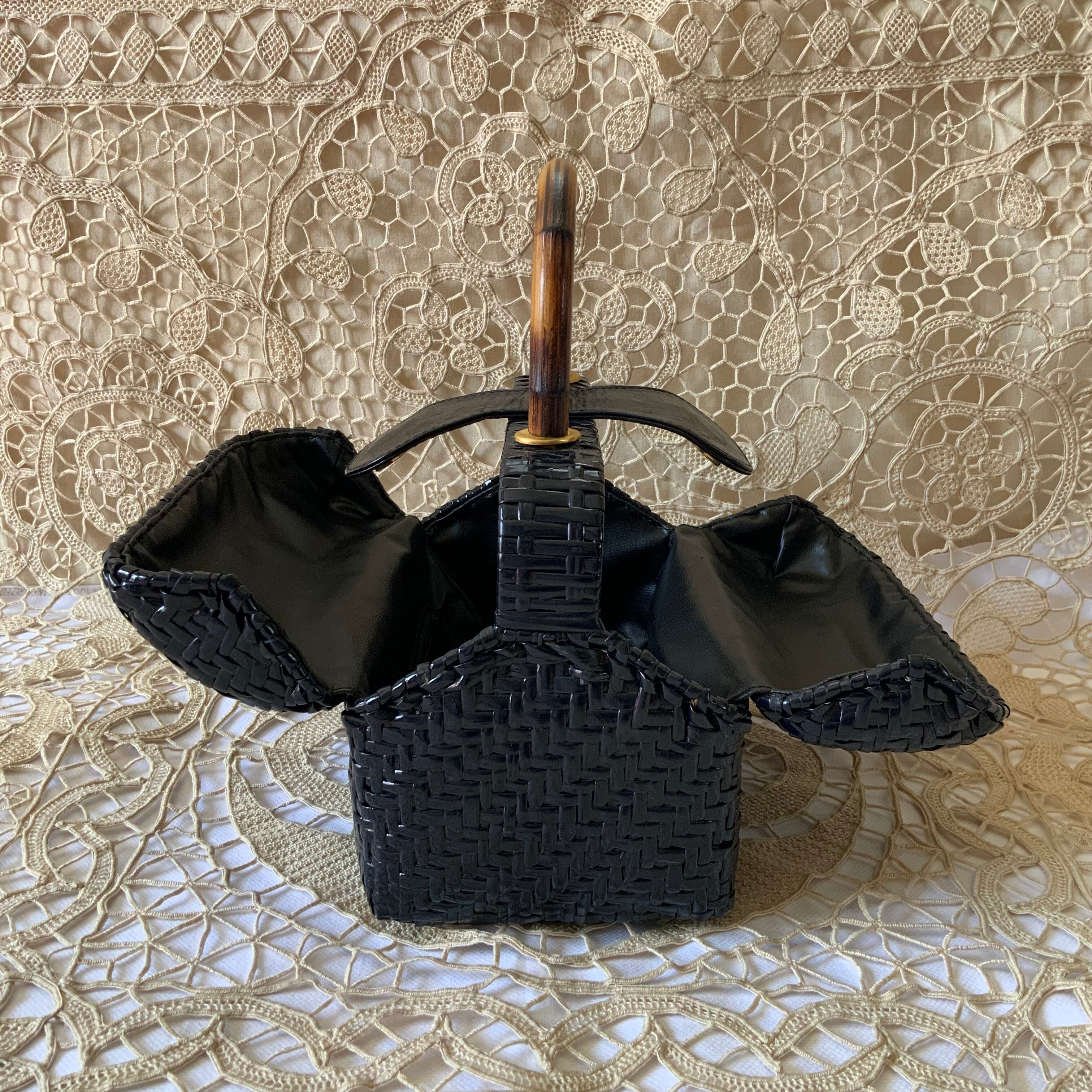 金具の足付きでウッドハンドルもステキな作りの良いバッグです