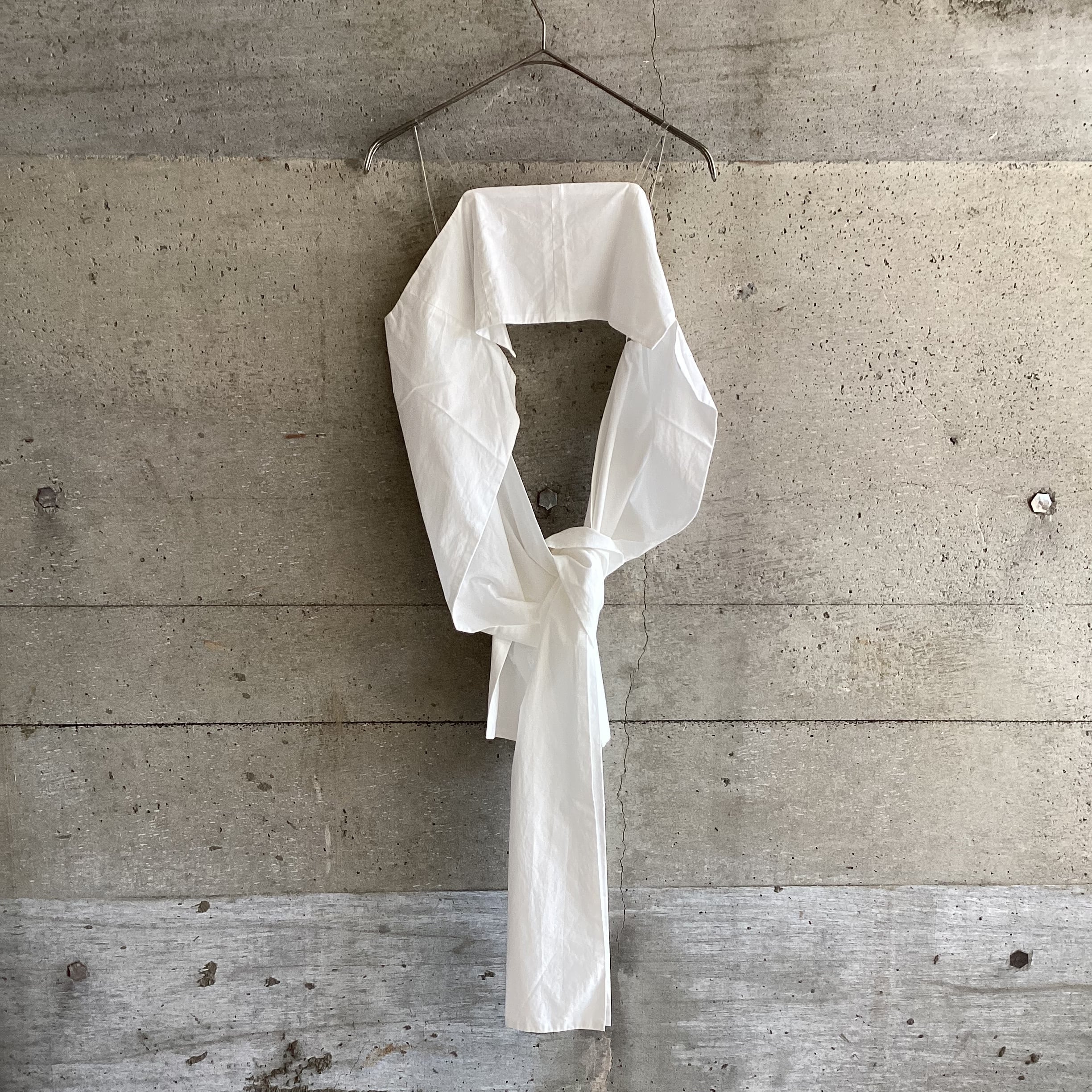 Tシャツと重ねても、リボンにせずに垂らしても、結び目を後ろに持ってきたり、色々な着方が楽しめるトップスです