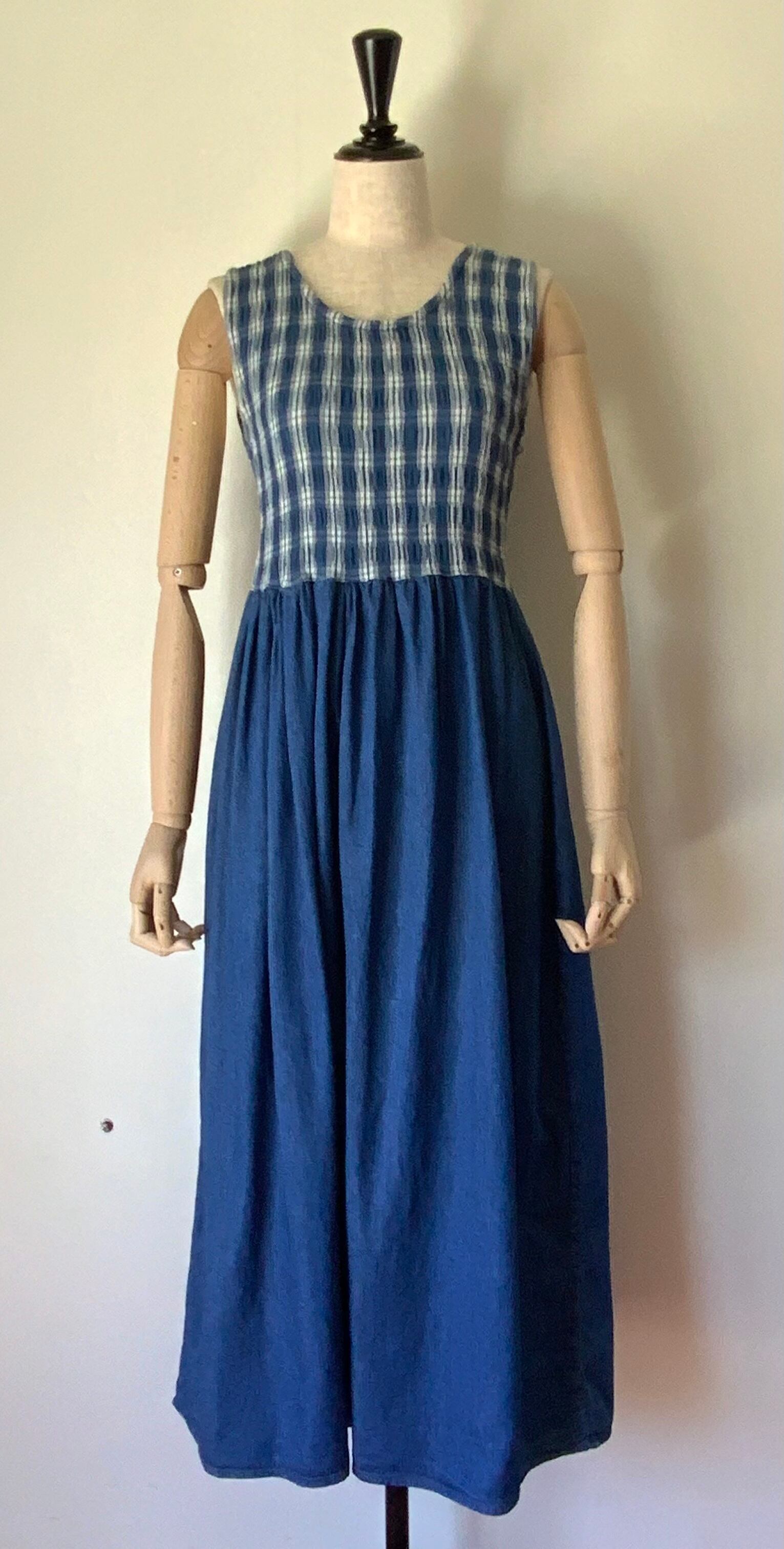 ピッタリ目のシャーリングトップスとデニムスカートの切り替えのワンピース