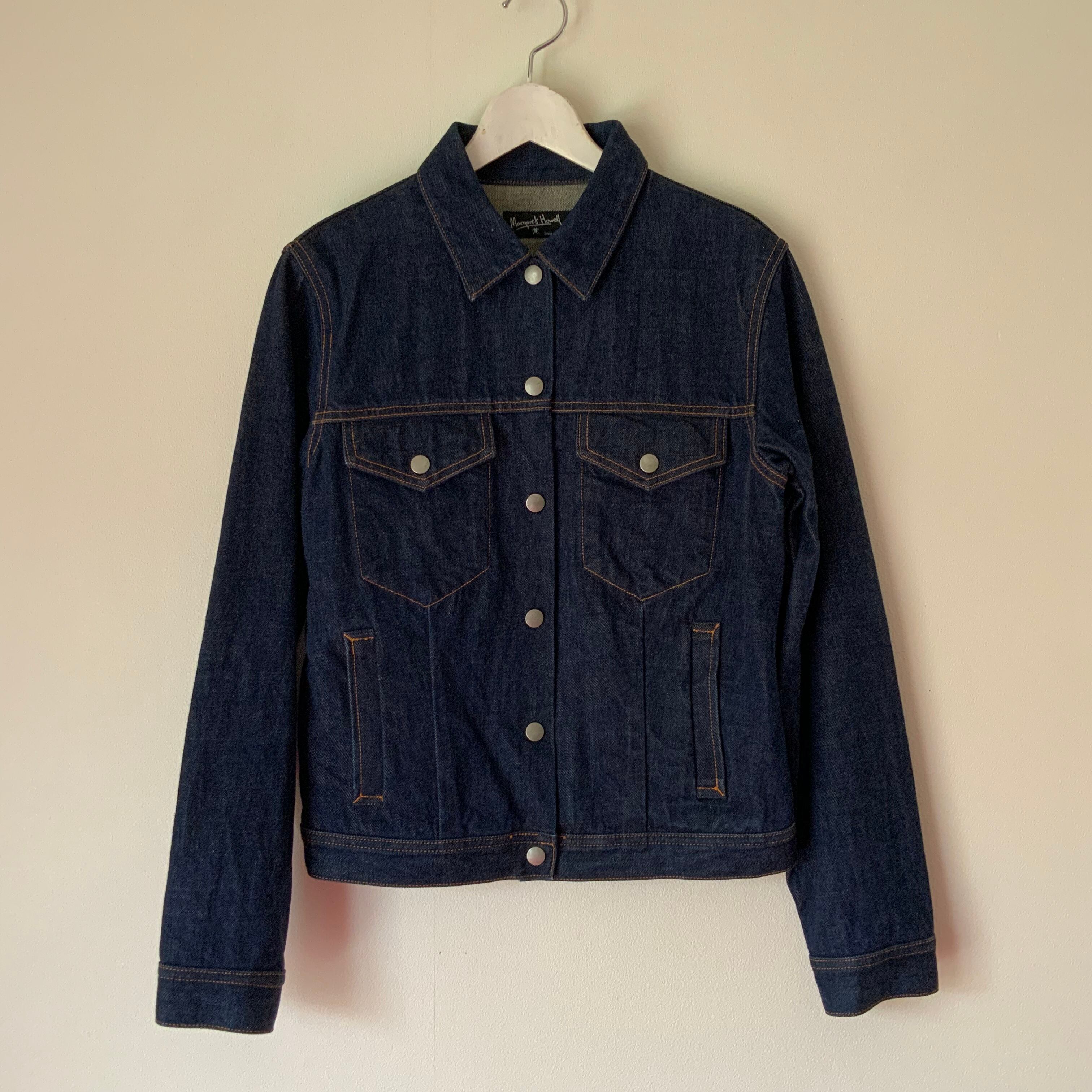 Margaret Howell インディゴ染めのキレイなデイムジャケット 同色のデニムパンツと合わせてセットアップでキレイに着るのもオススメです サイズ2 着丈55cm 肩幅40cm 袖丈60cm 身幅45cm 素材 綿100% 状態 キレイです