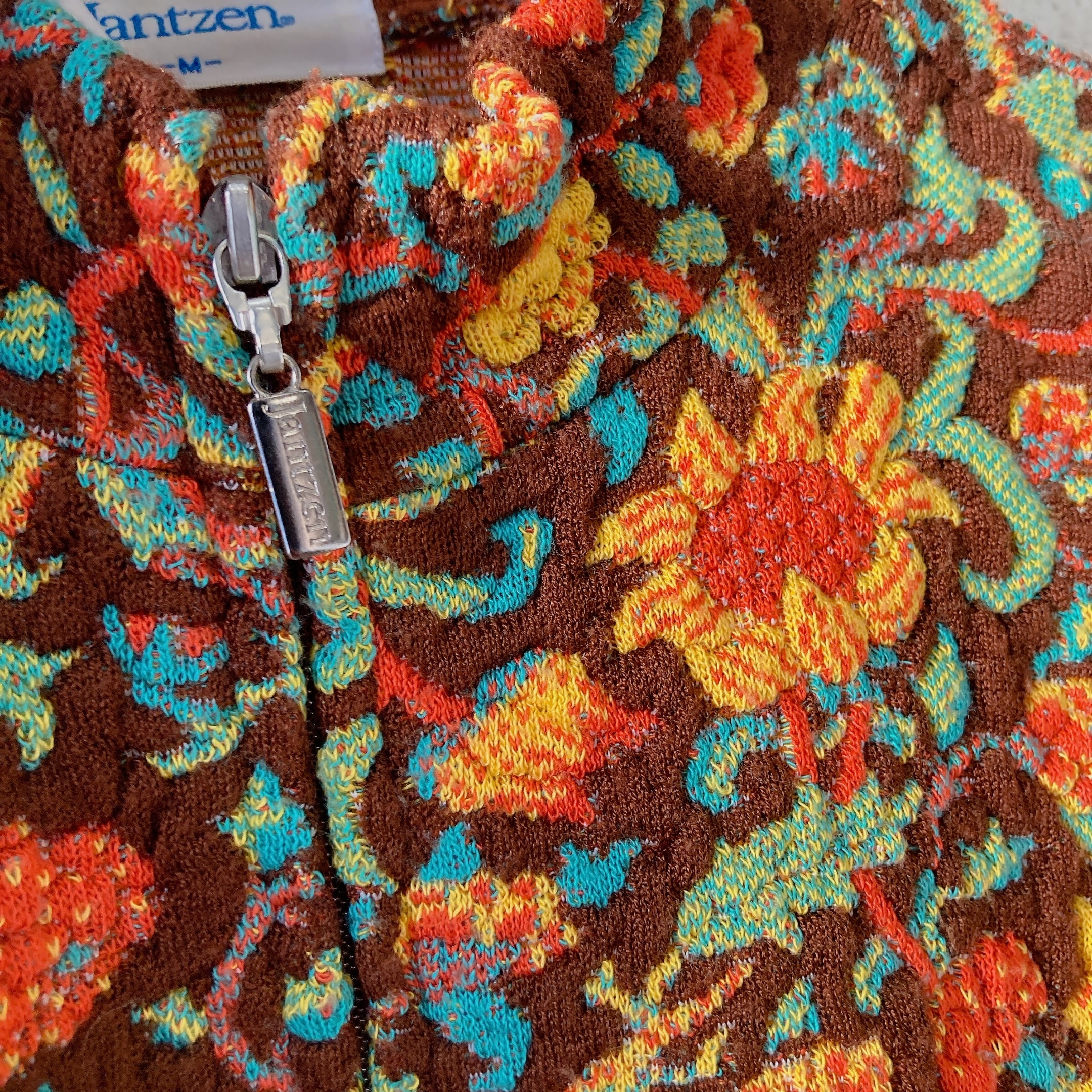 立体的に編まれた花柄と色の掛け合わせがなかなか見ないニットブルゾン