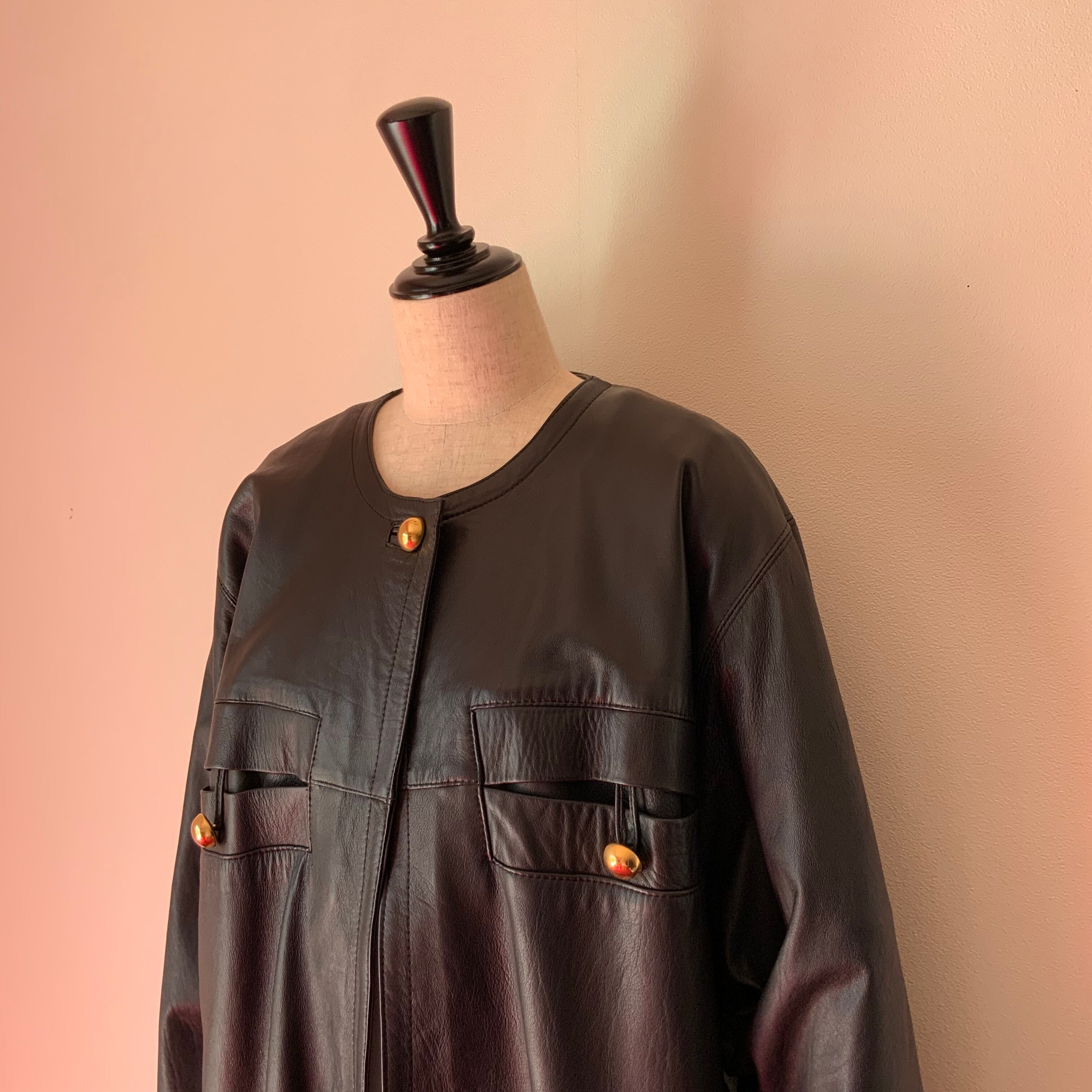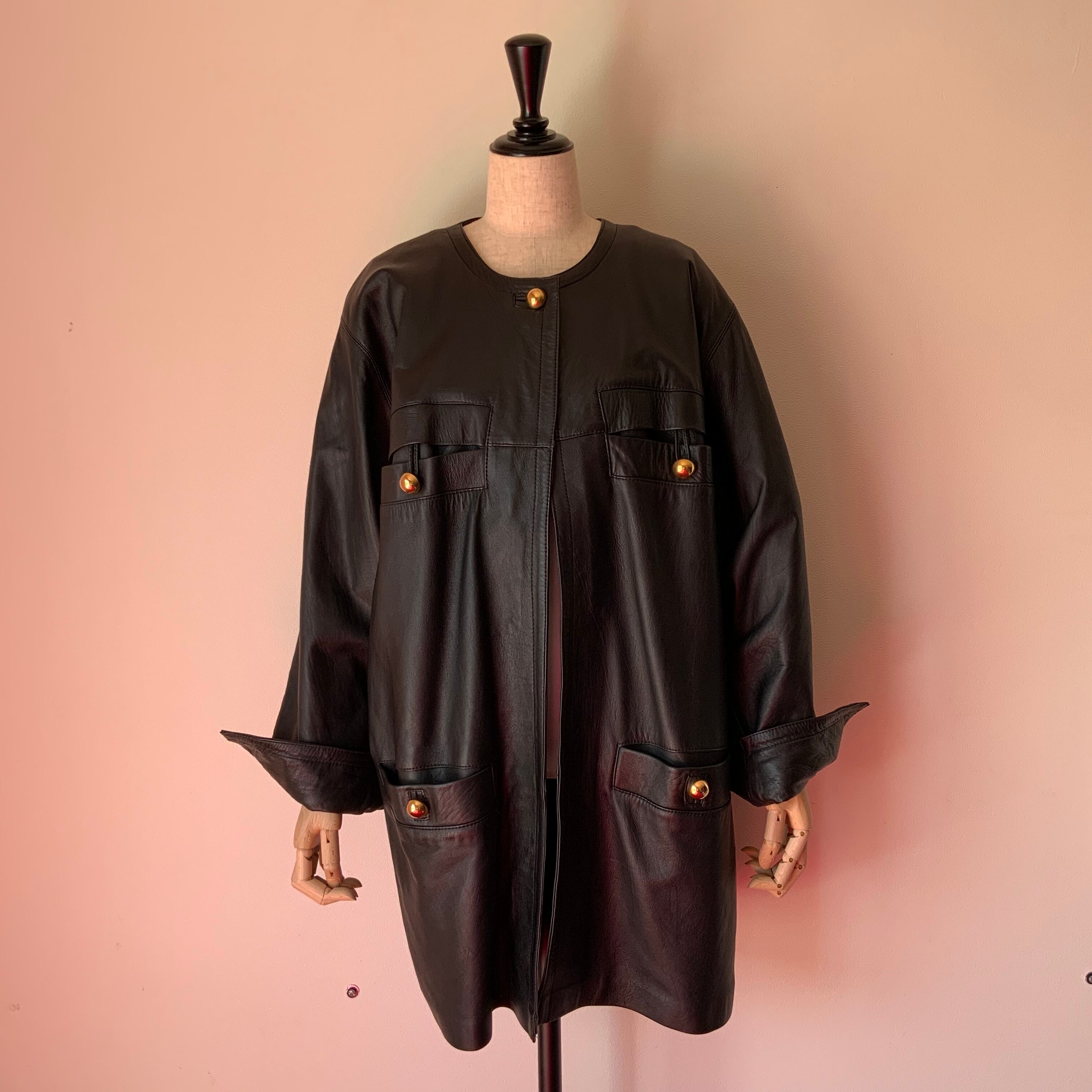gold button leather coat
