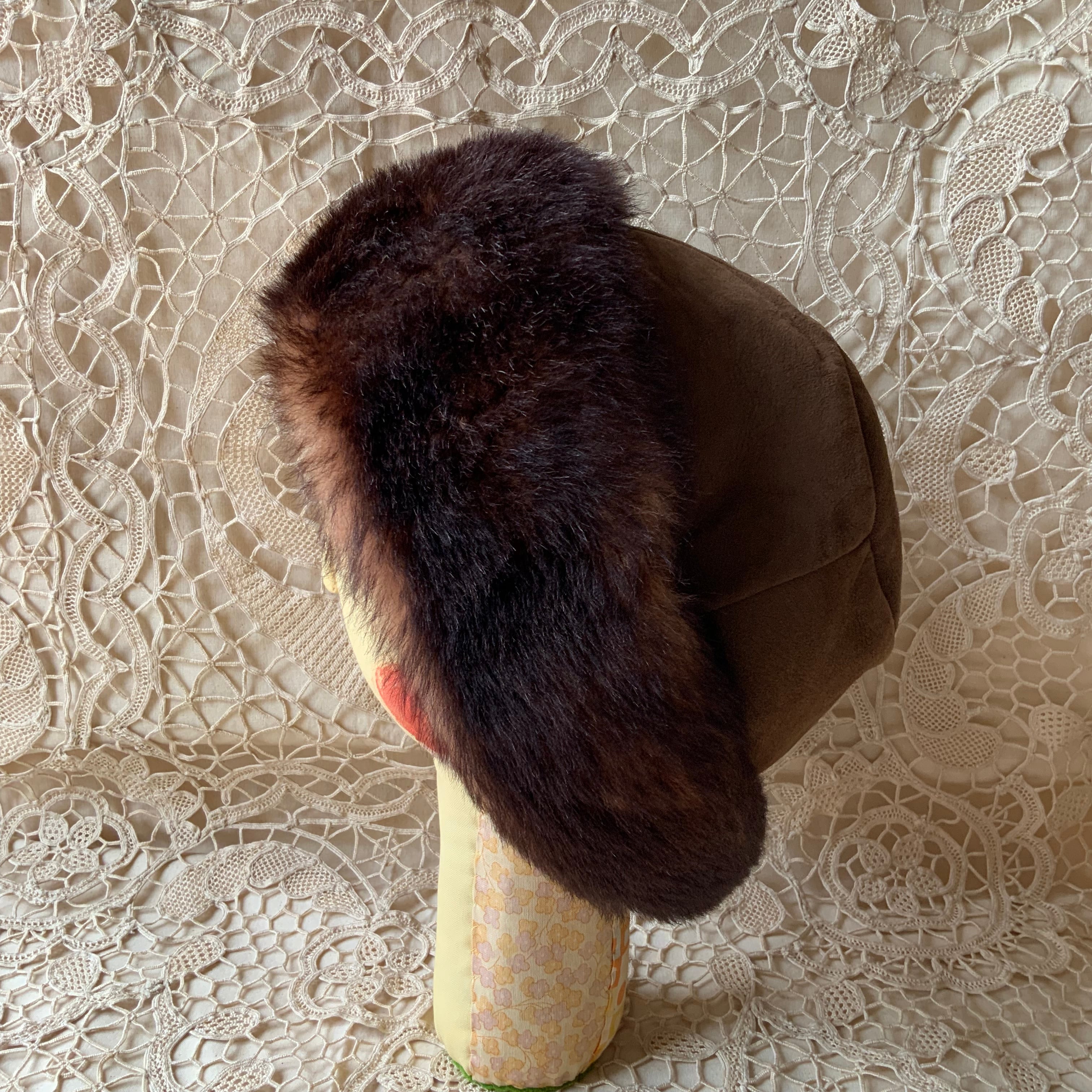 前のファー部分は内側に折り曲げてボリュームを調節することも出来ます
