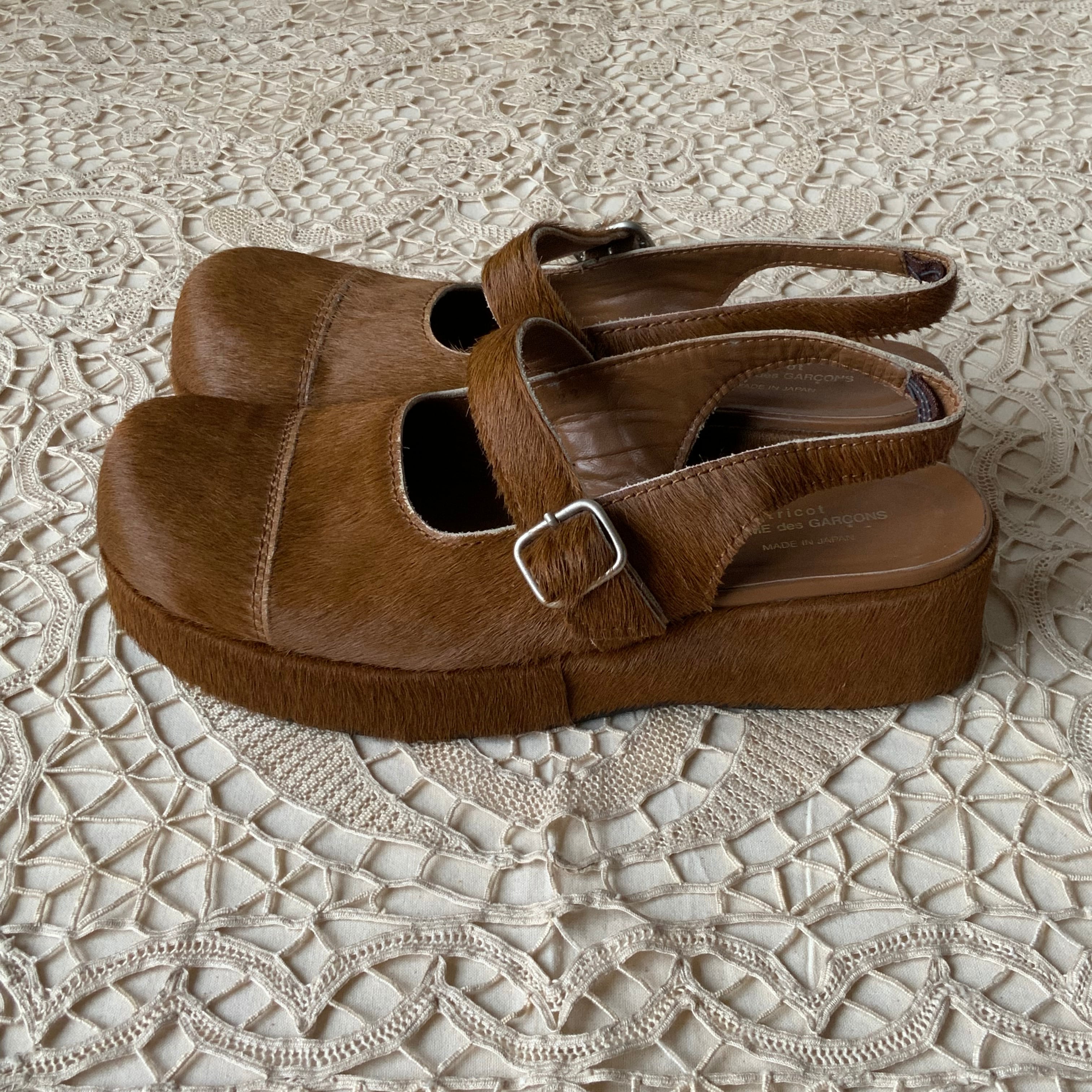 プラットフォームソール部分もハラコ素材のシューズ
