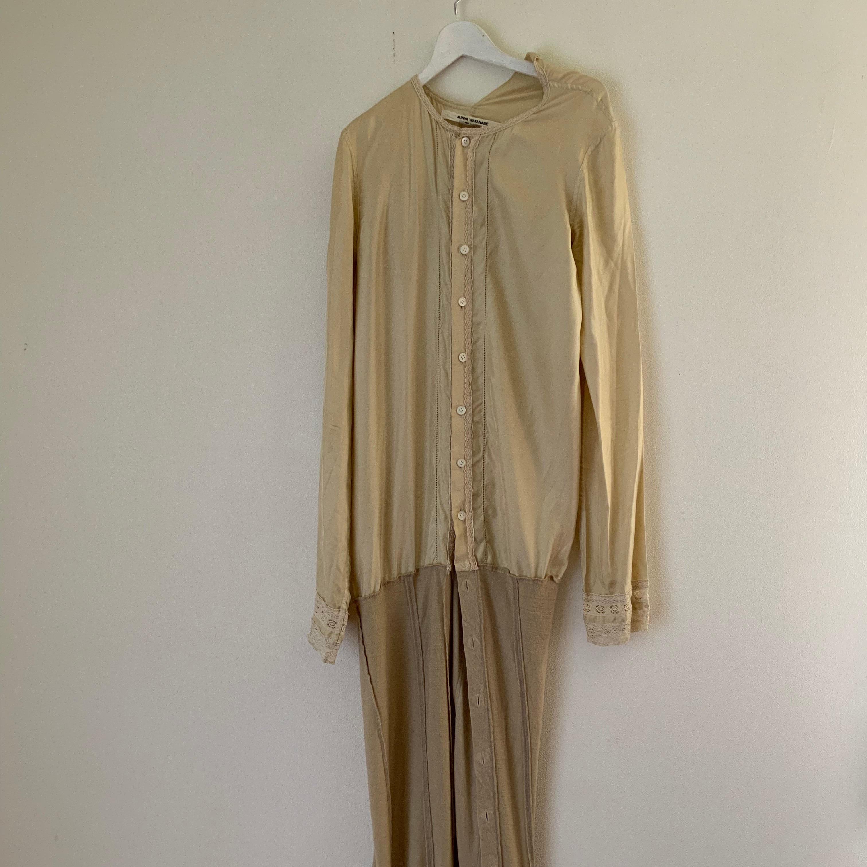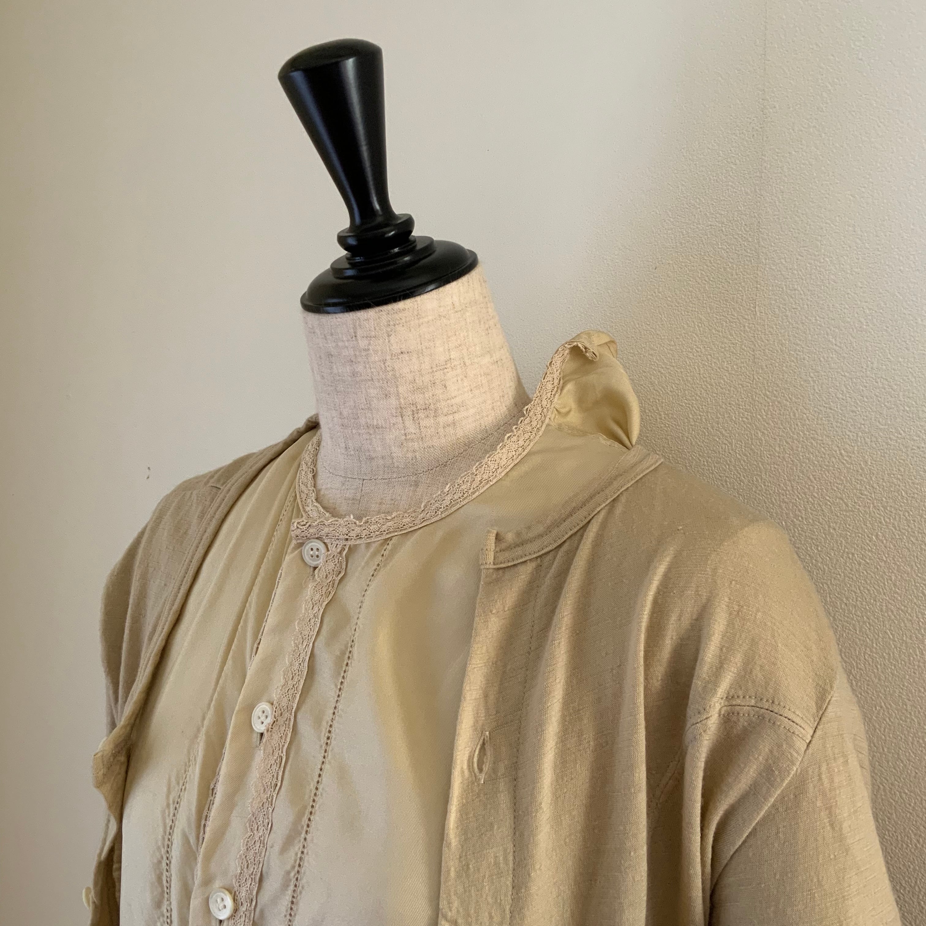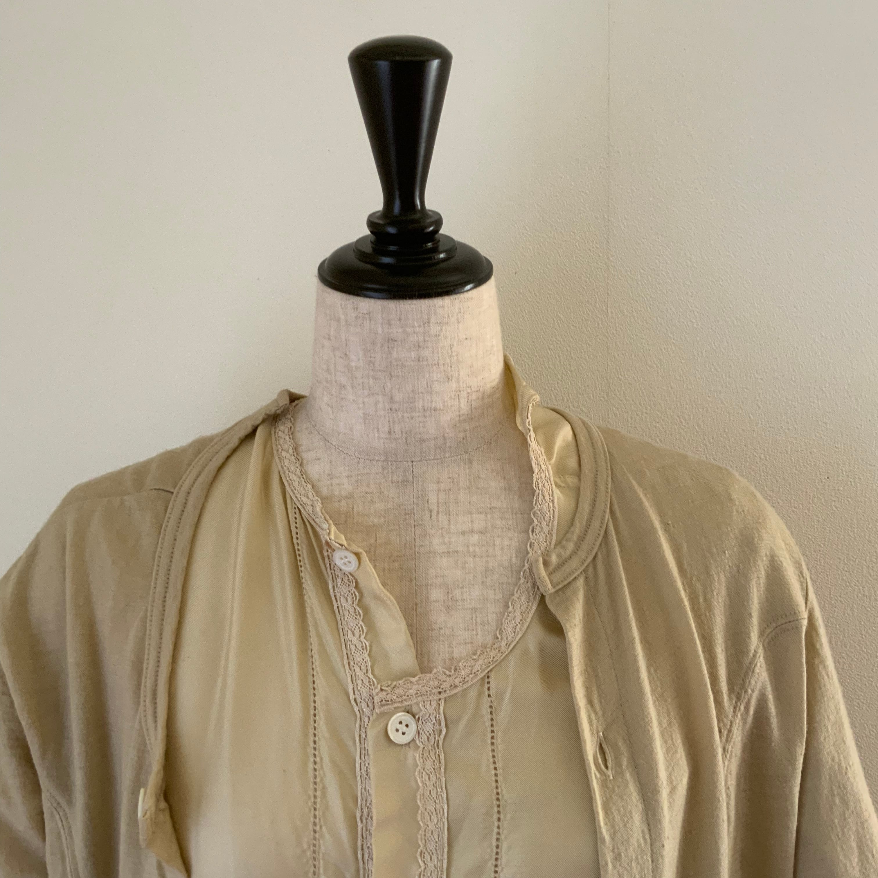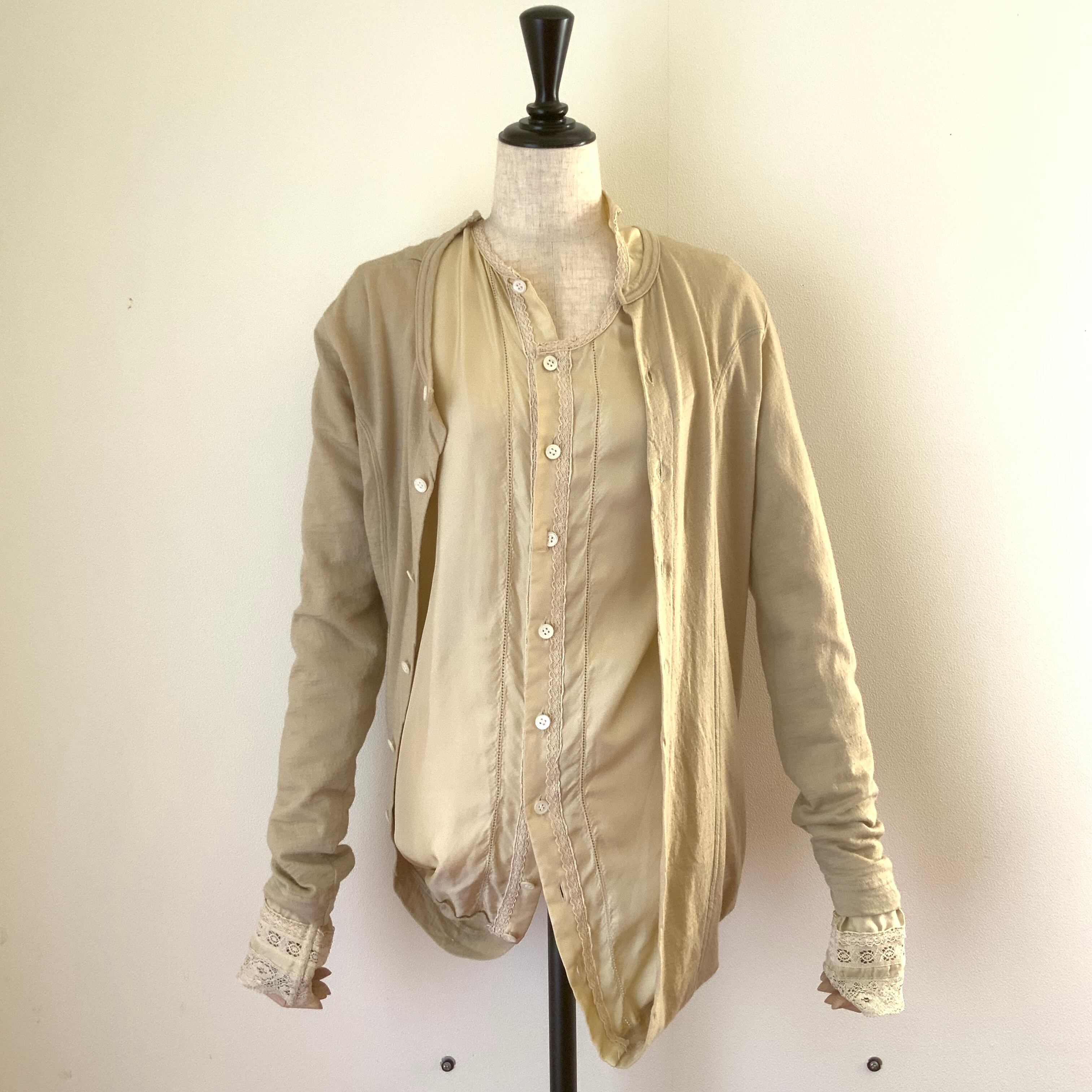 シルクのブラウスとウールのカーディガンがドッキングされています