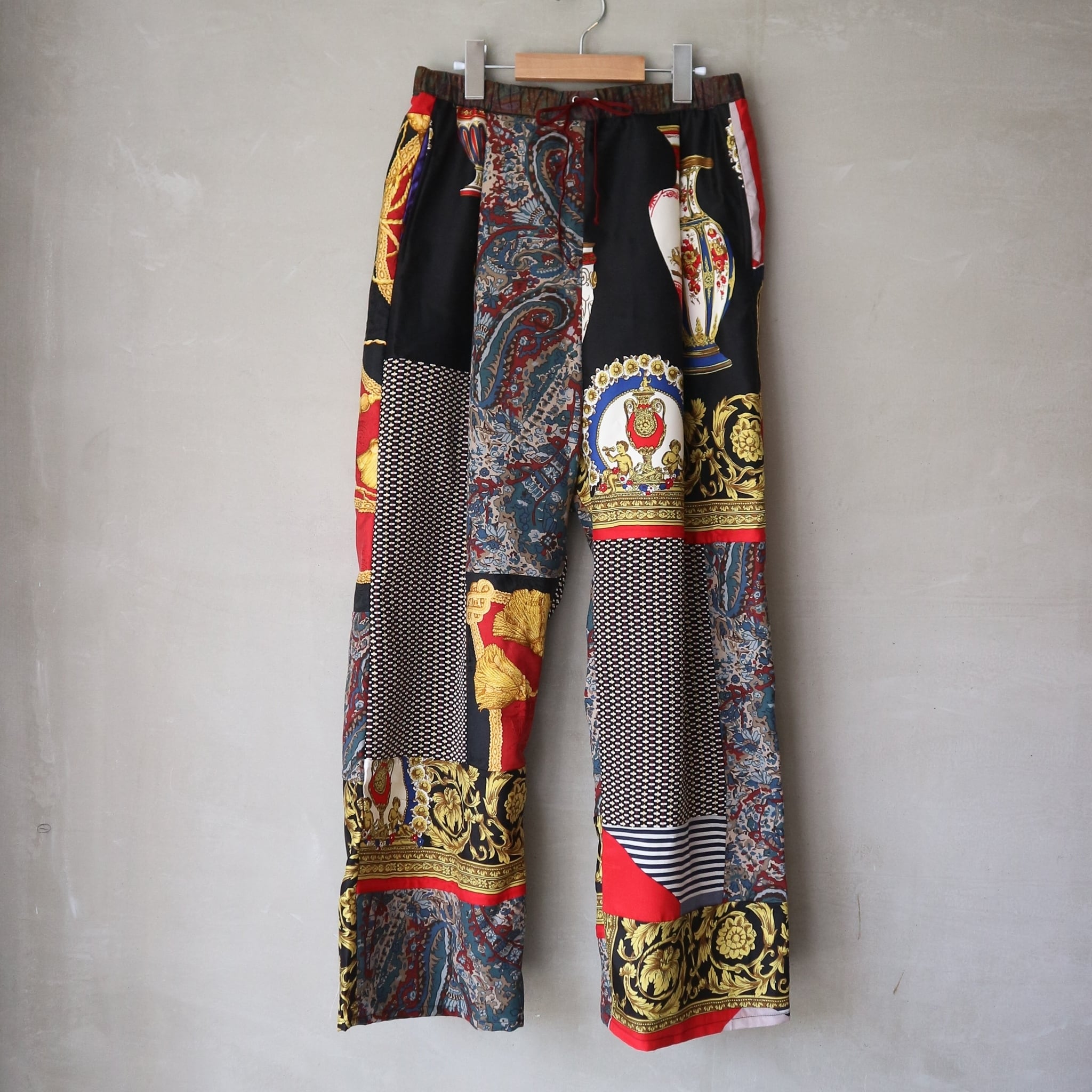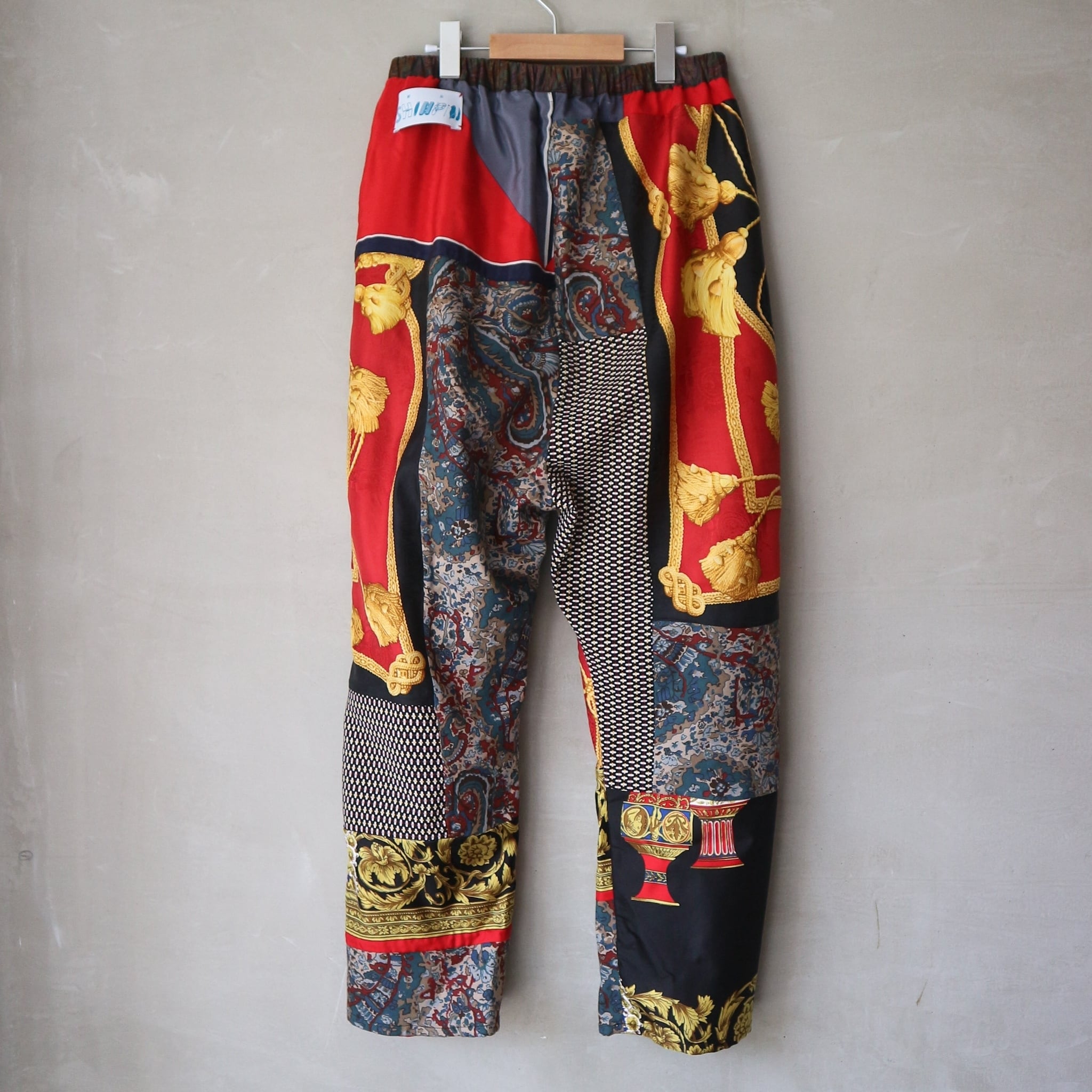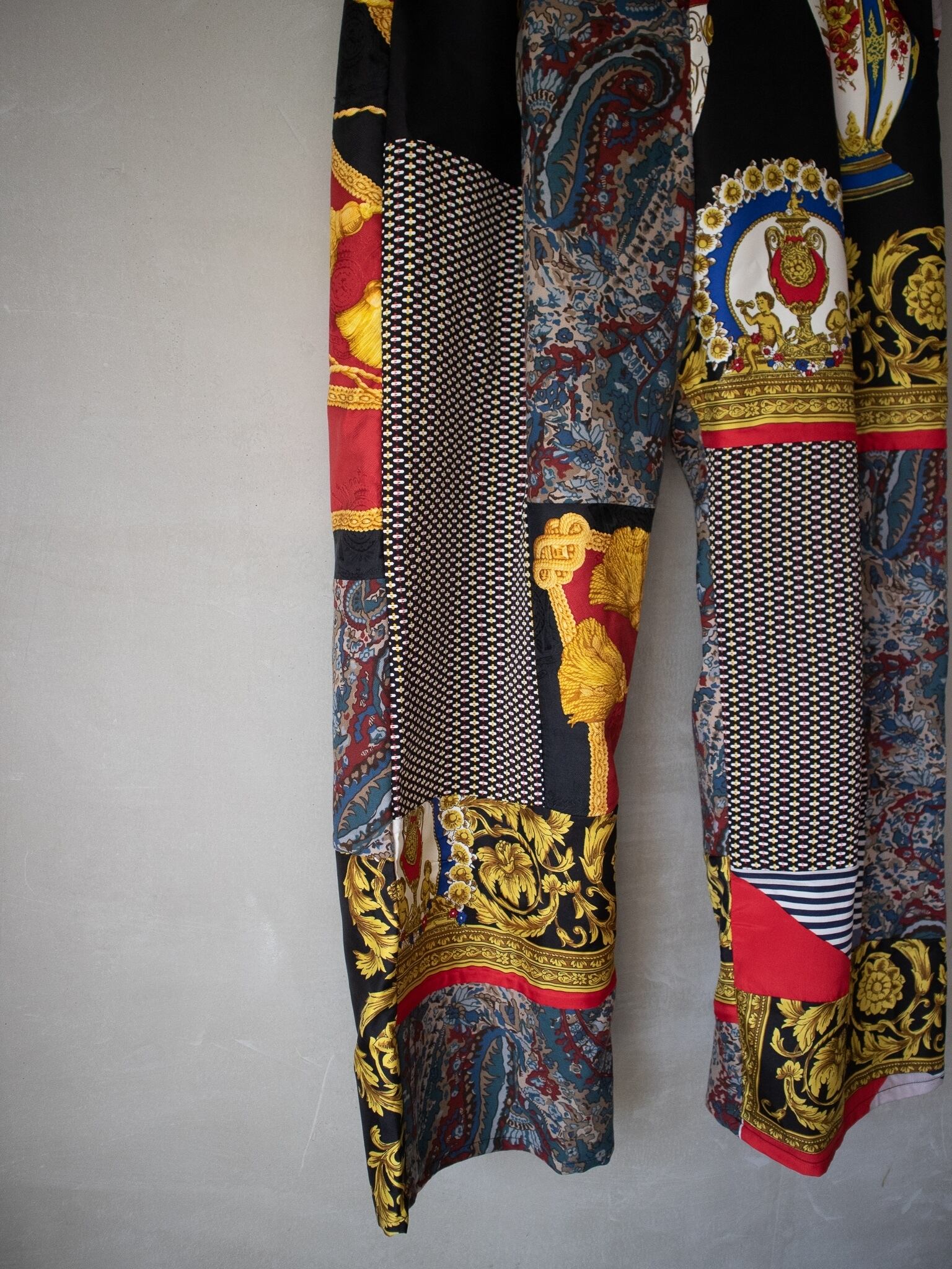色柄がビビっとくるシルクのスカーフと古着を素材に使用して、