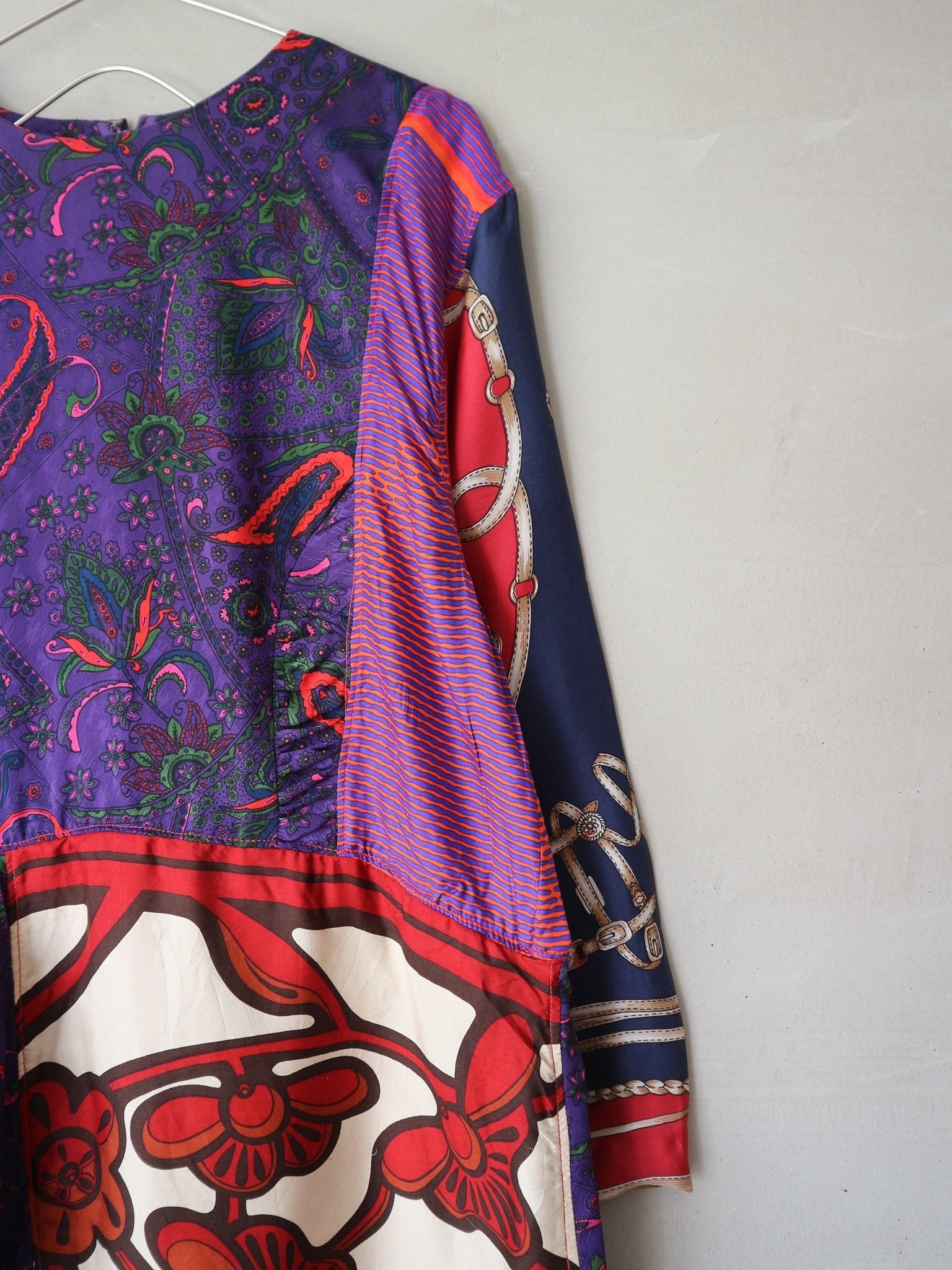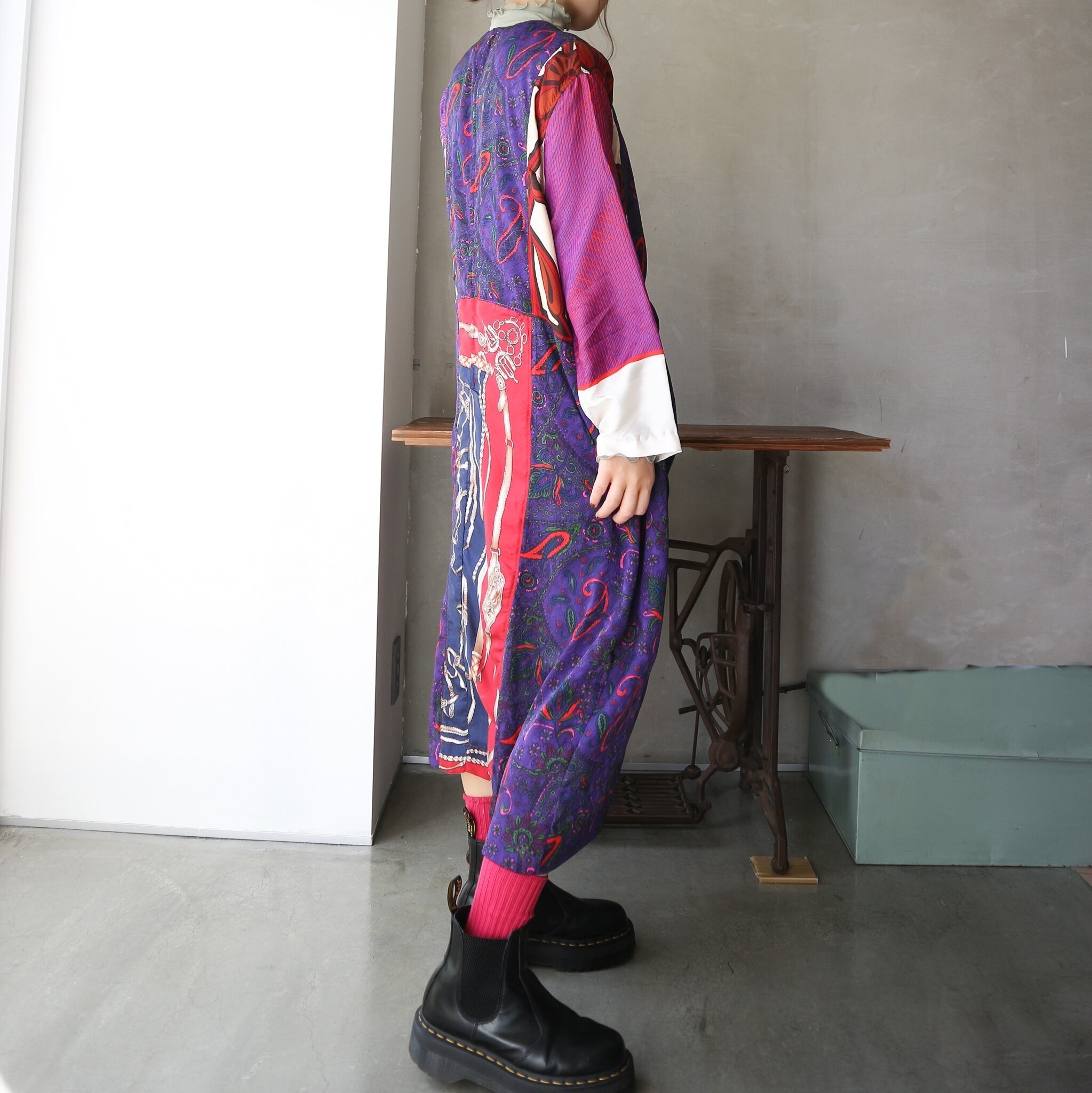 色柄がビビっとくるシルクのスカーフと古着を素材に使用して、