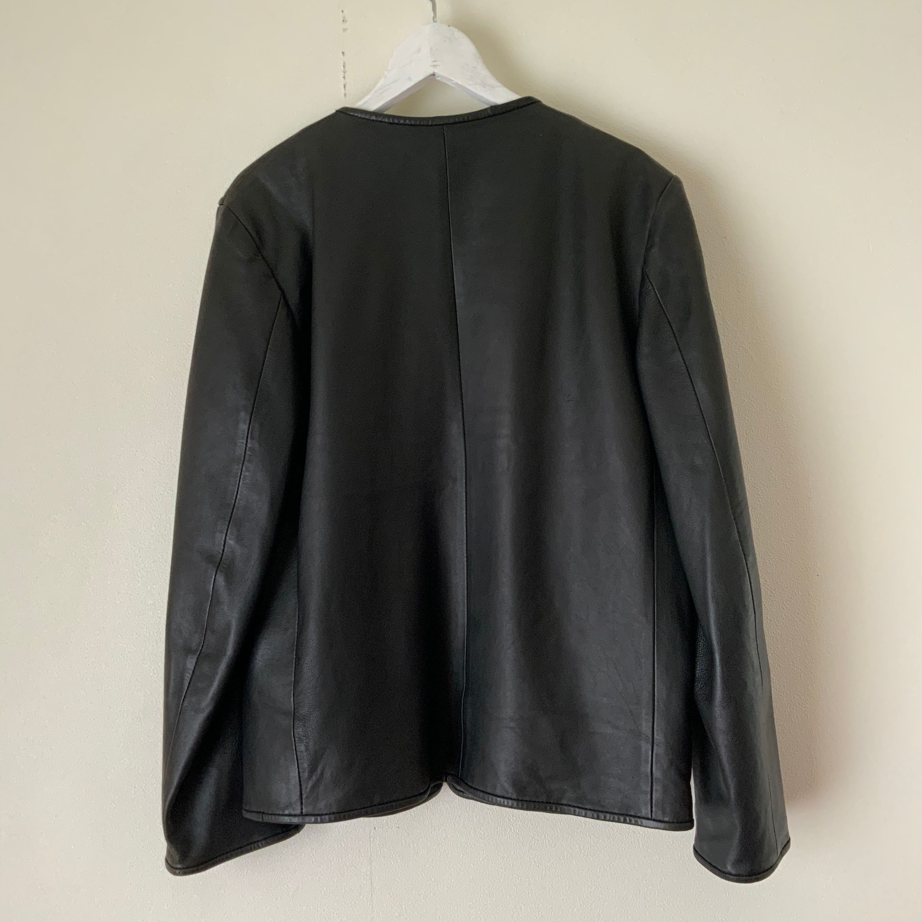 ゴールドの大きめのペイズリー刺繍が1点物感あるレザージャケットです