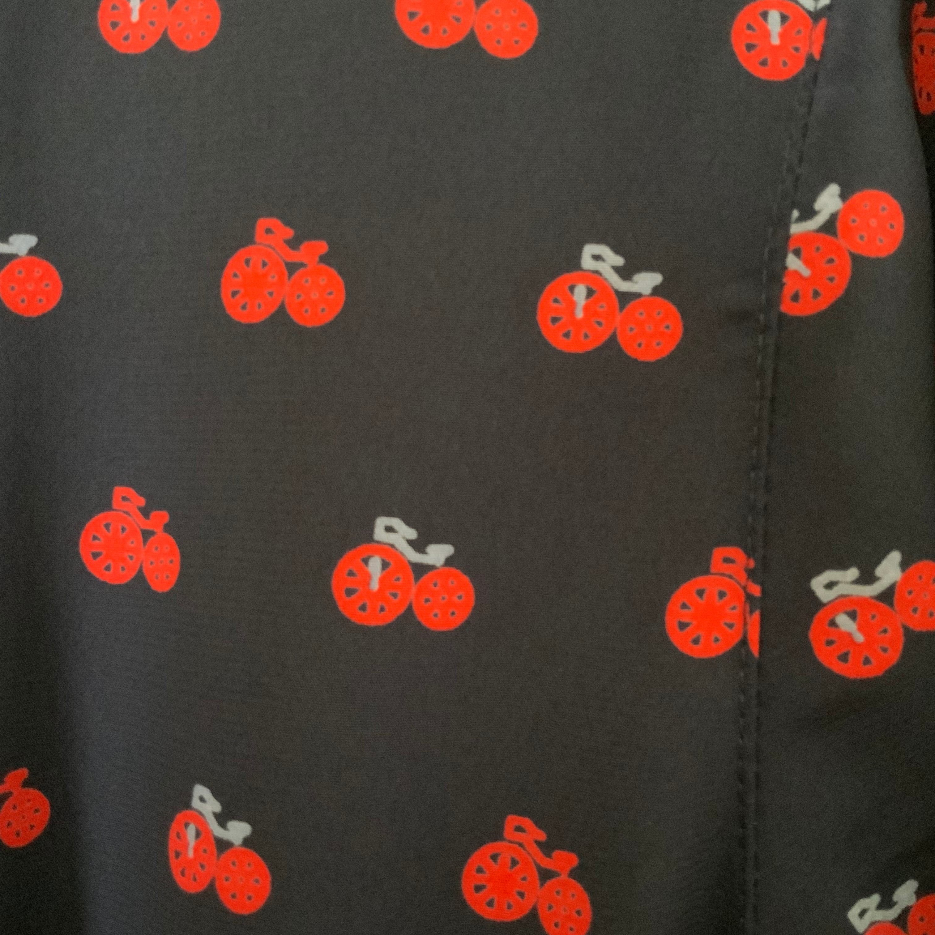 こちらのワンピースも、一見フルーツの柄かと思いますがよく見ると自転車です