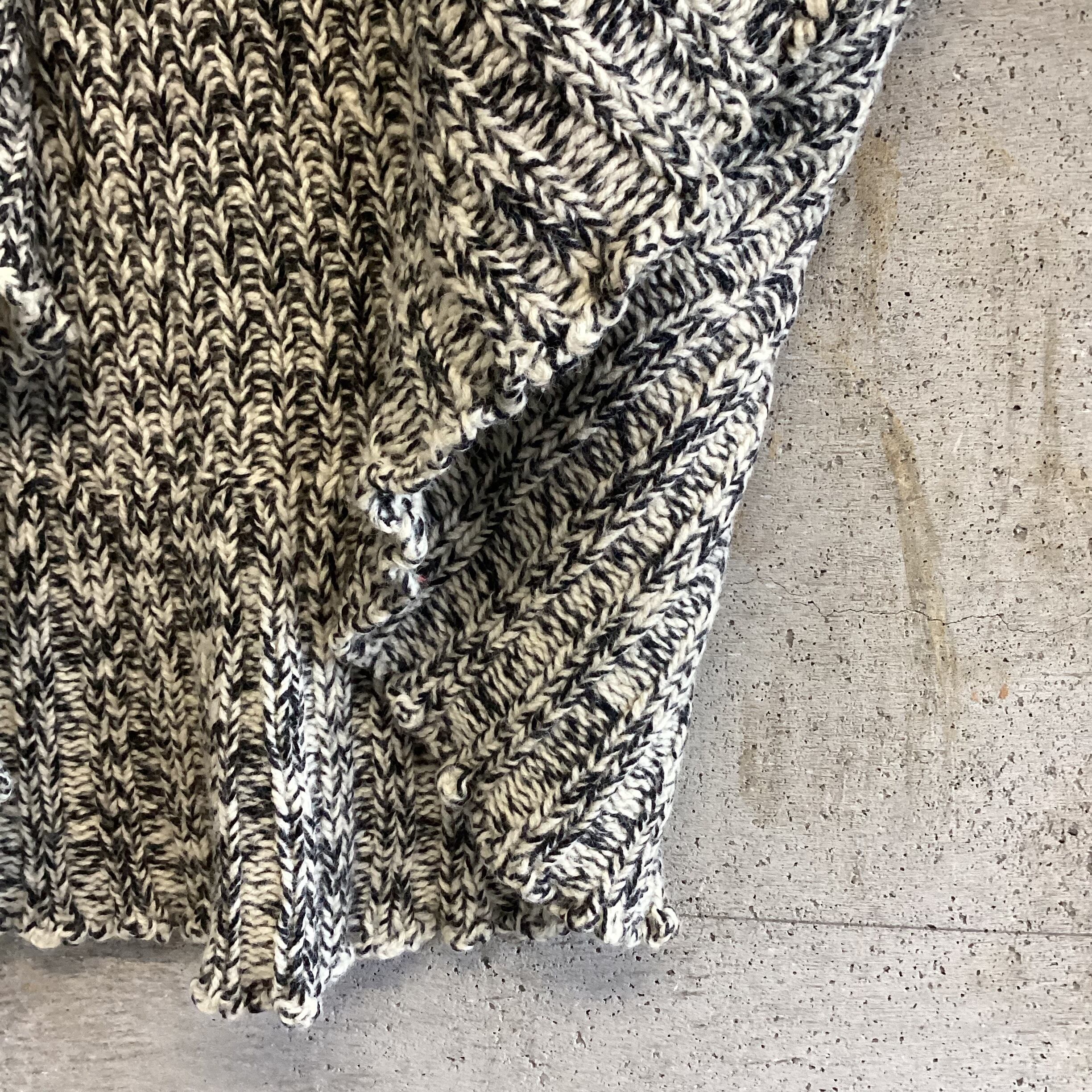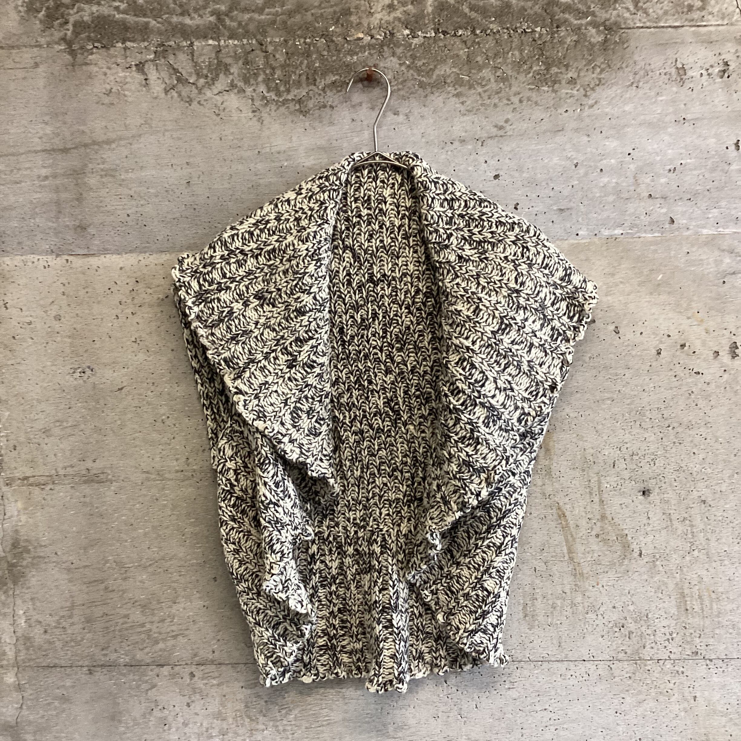 置くと円形のニットの中央に穴が2つ空いたようなニットカーディガンです