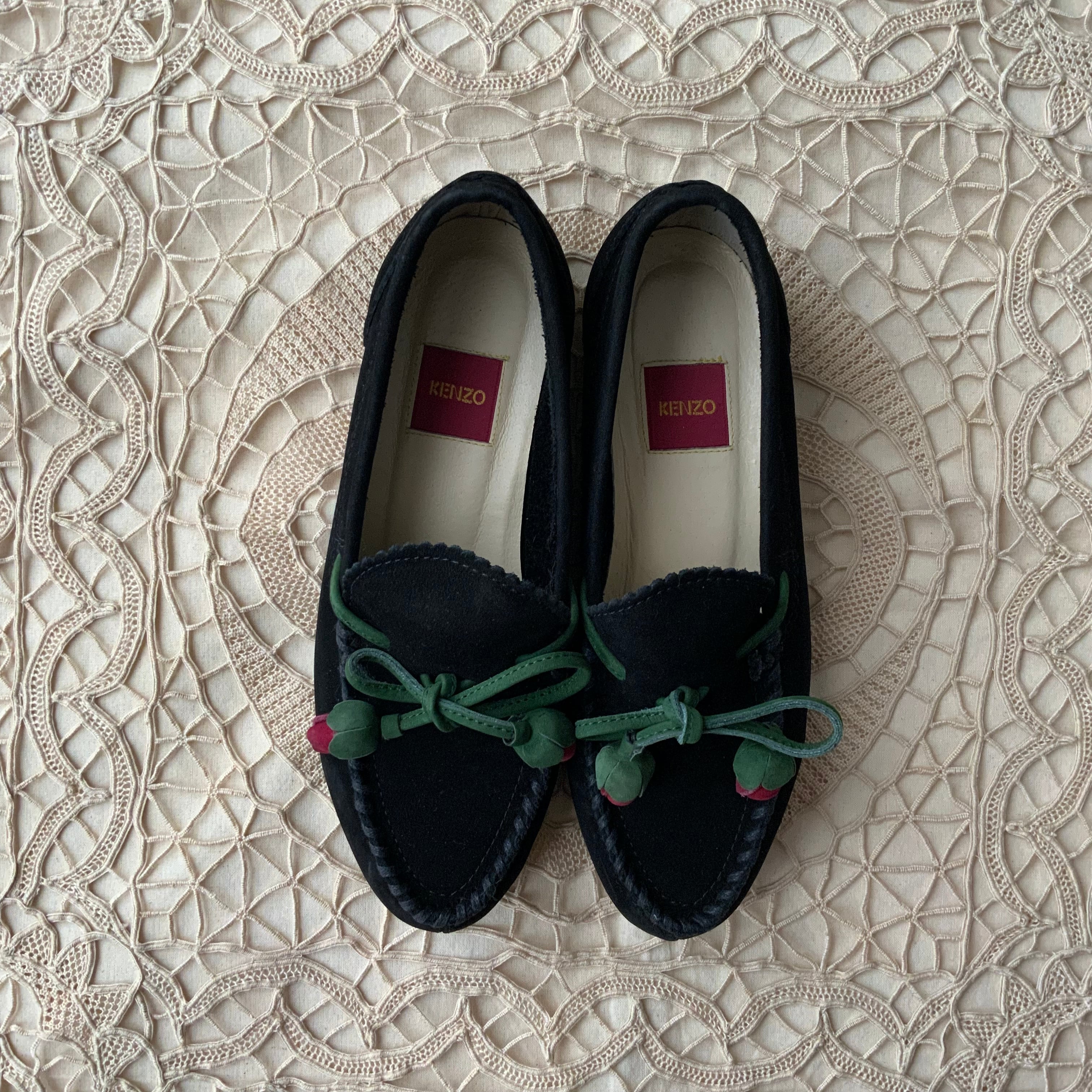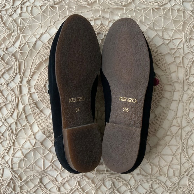 タッセル部分が花になった可愛らしいモカシンシューズ