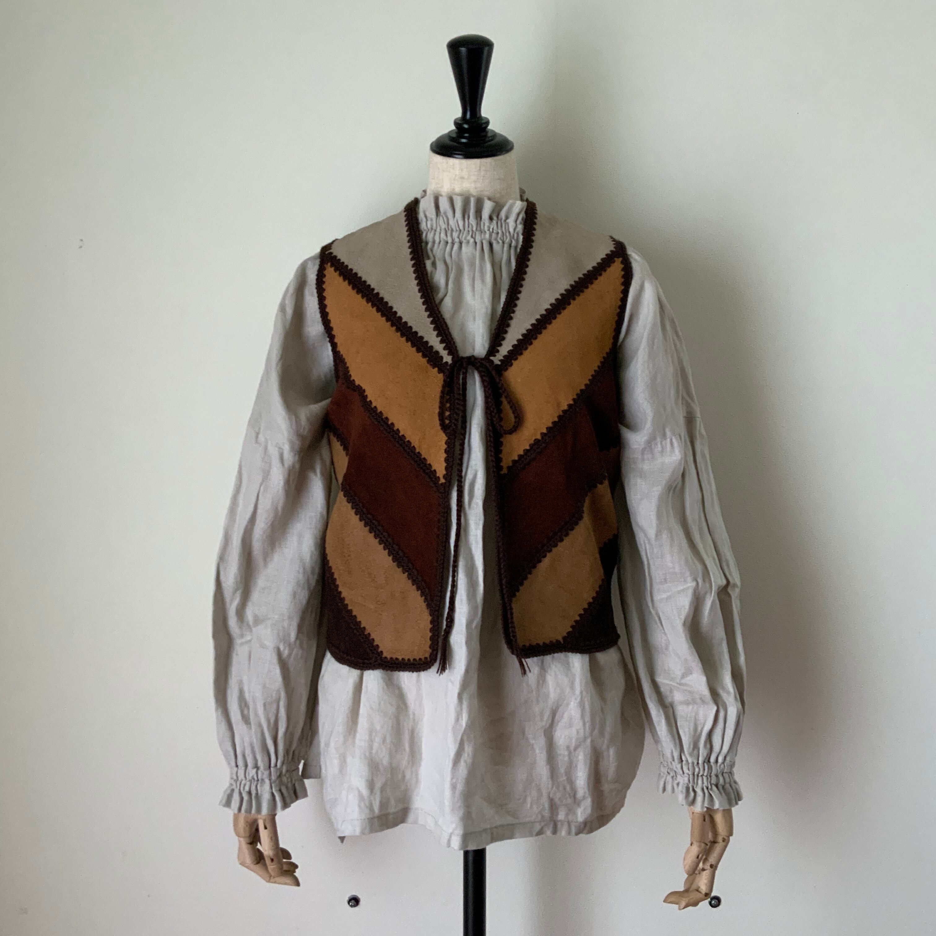 色の違う豚革がパッチワークになったベストです