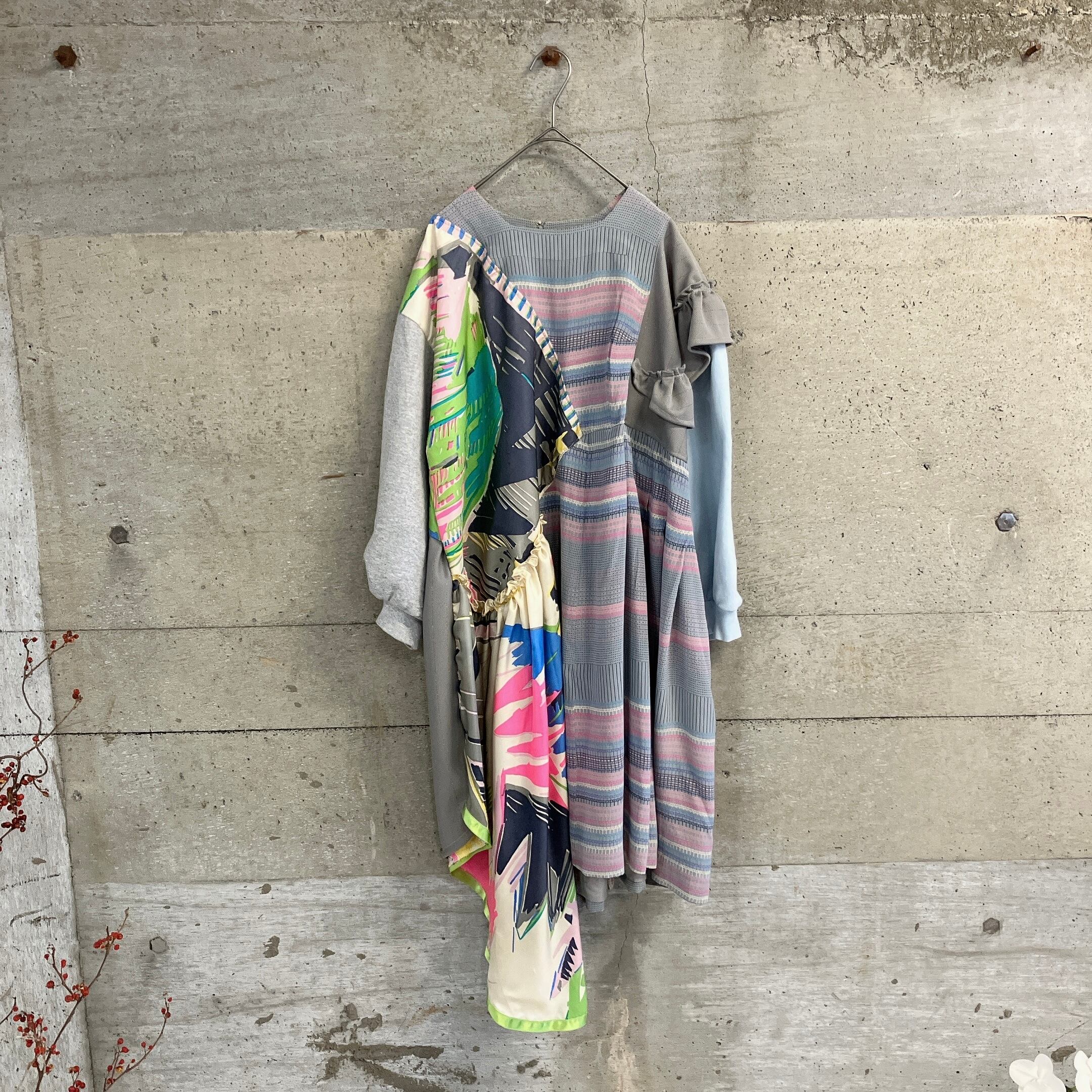 元々が1点もの感のある素材にプラスしてSHINPINの感性で見るだけでワクワクするワンピースになりました。