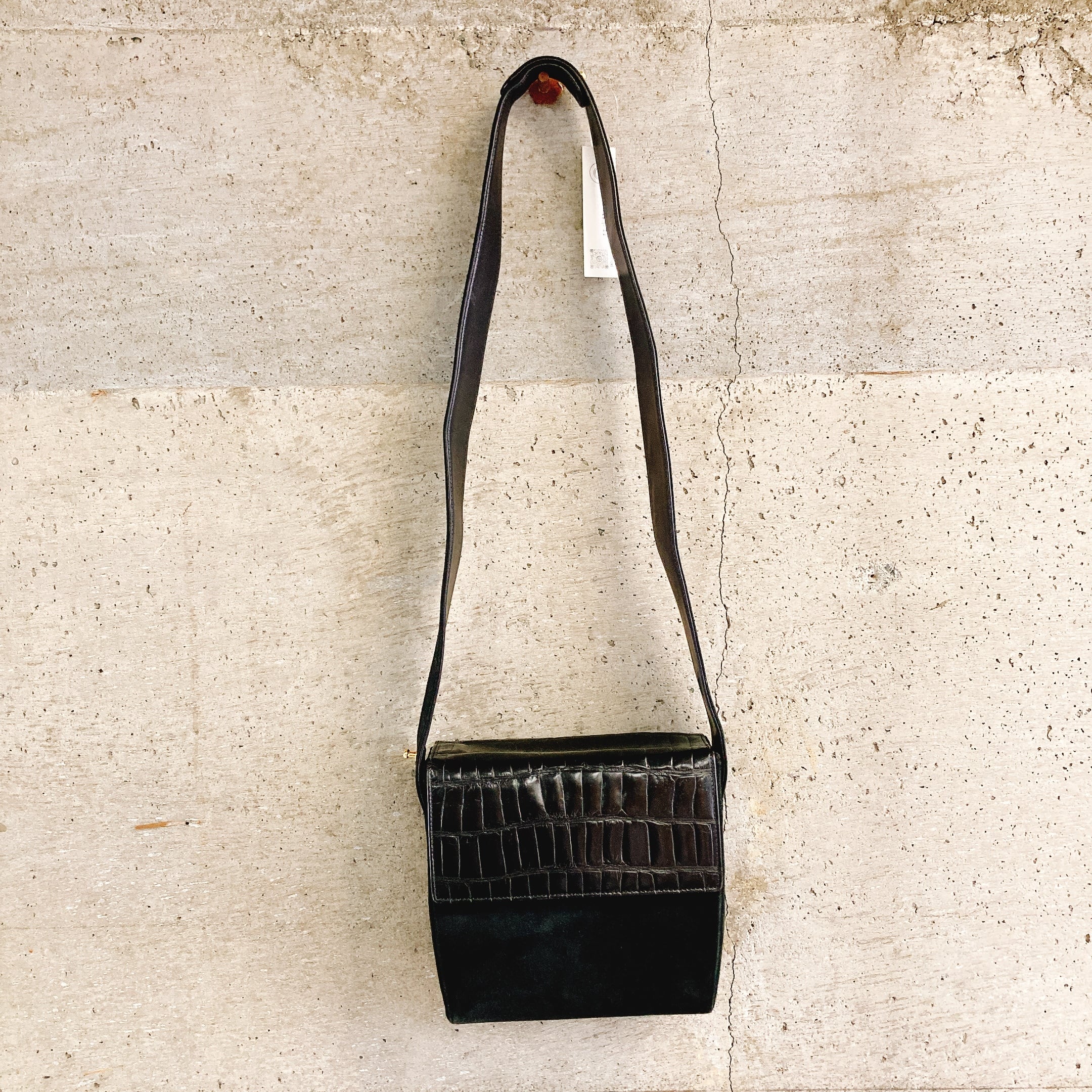 ワニっぽいスエードが高級感を出していて大人っぽいシックなバッグです。