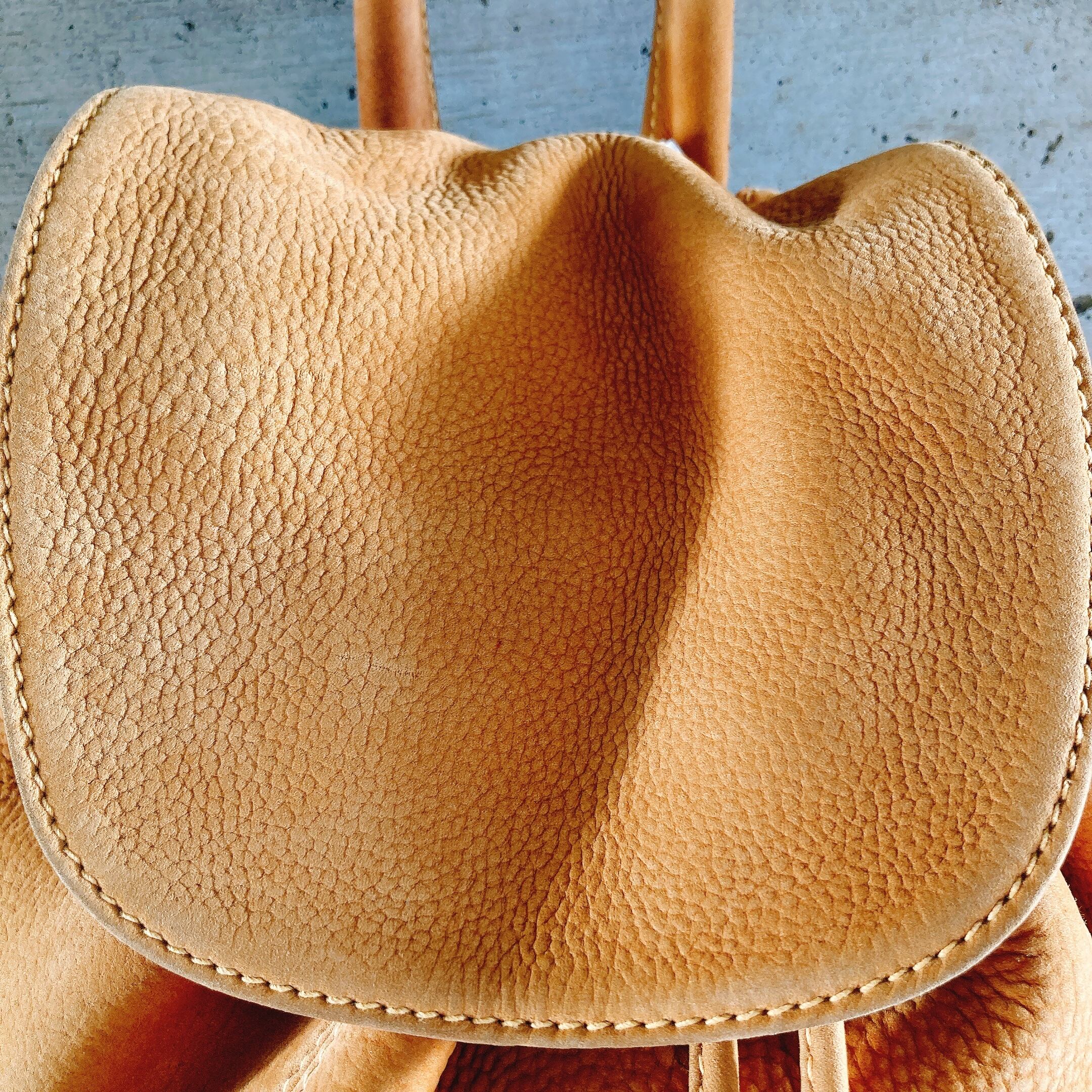 柔らかいレザーのリュックで全体的に肌触りが良い質感です。