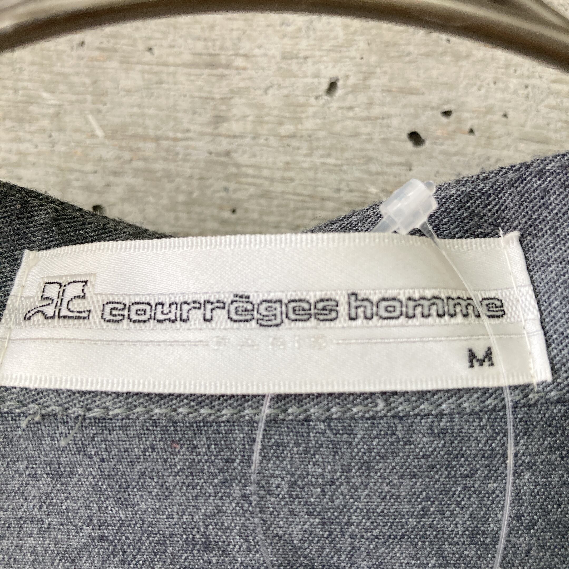肩から裾にかけて黒の紐のような柄が垂れ下がっているデザインのシャツでかなり生地がしっかりしています。