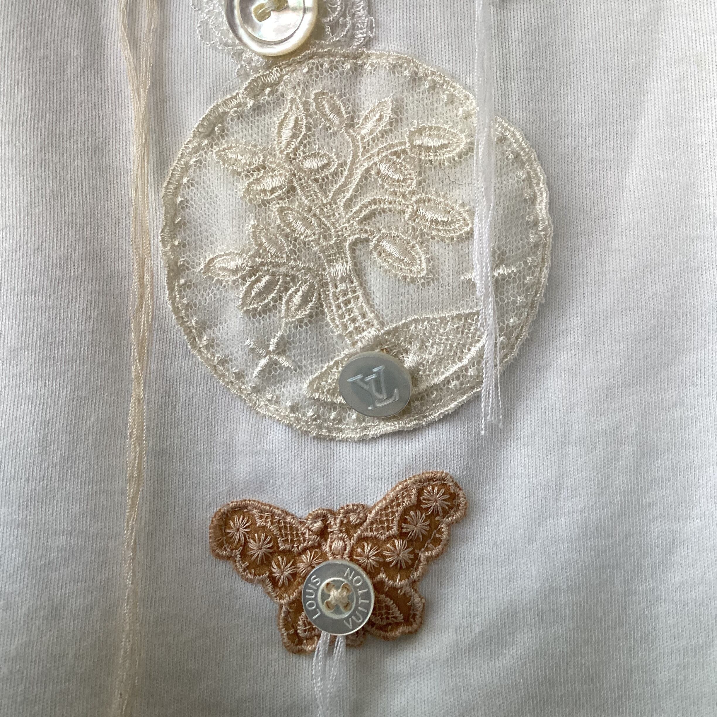 レースとヴィトンマークのボタンがラグジュアリーですが、タンクトップなのでカジュアルに着れます