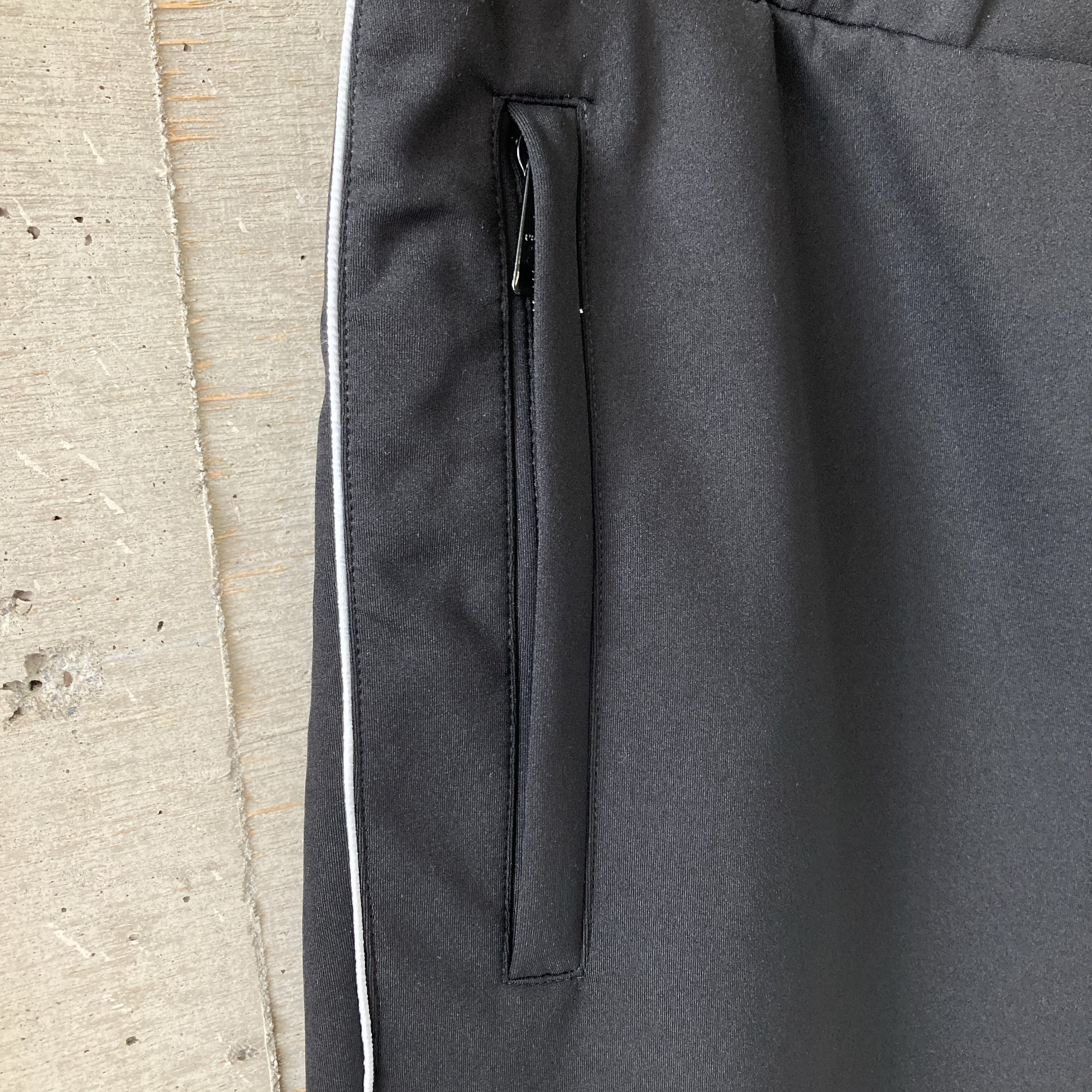 ポケットにファスナーが付いているのと後の裾にだけ青のラインが入っているのが特徴です。