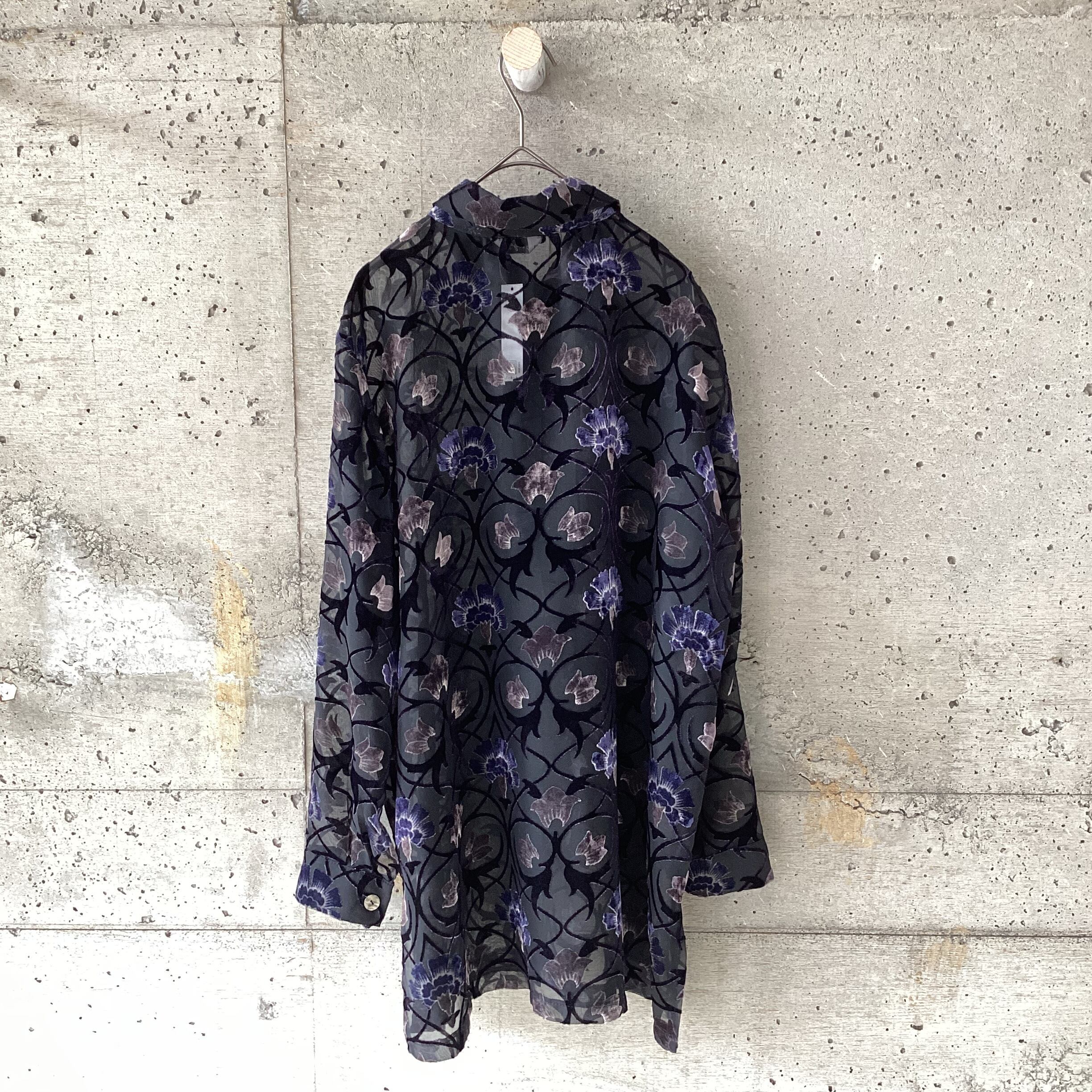 シースルーにフロッキープリントが、とても印象に残るシャツです。