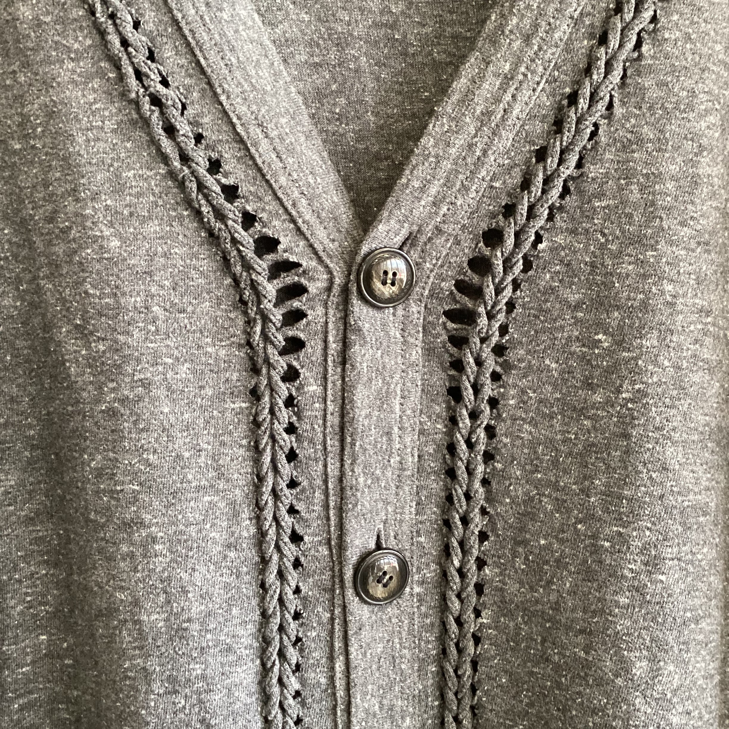 生地部分が編み込みになった凝った作りのカーディガンです