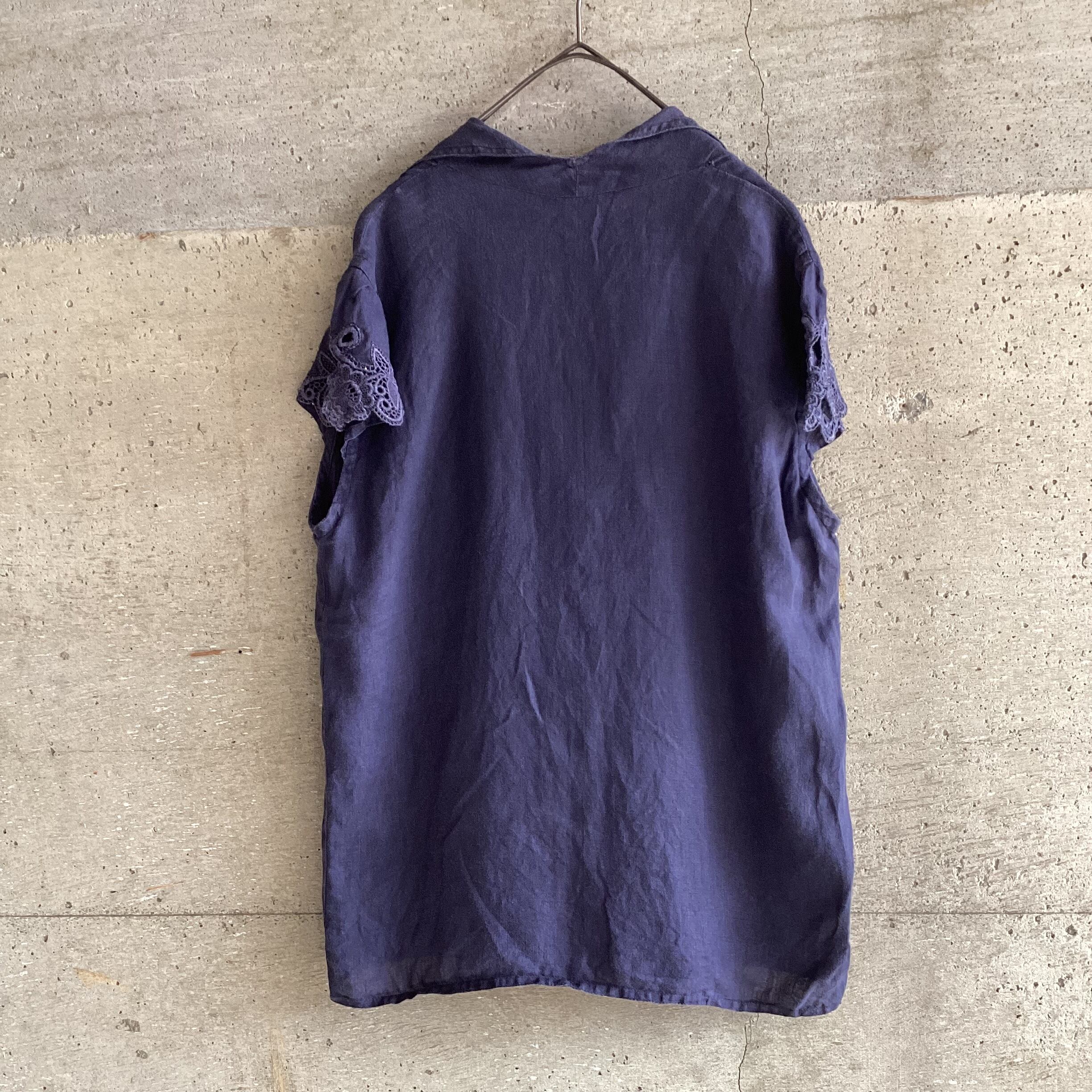 色褪せ感が古着らしいレースとの切り替えが素敵なブラウスです