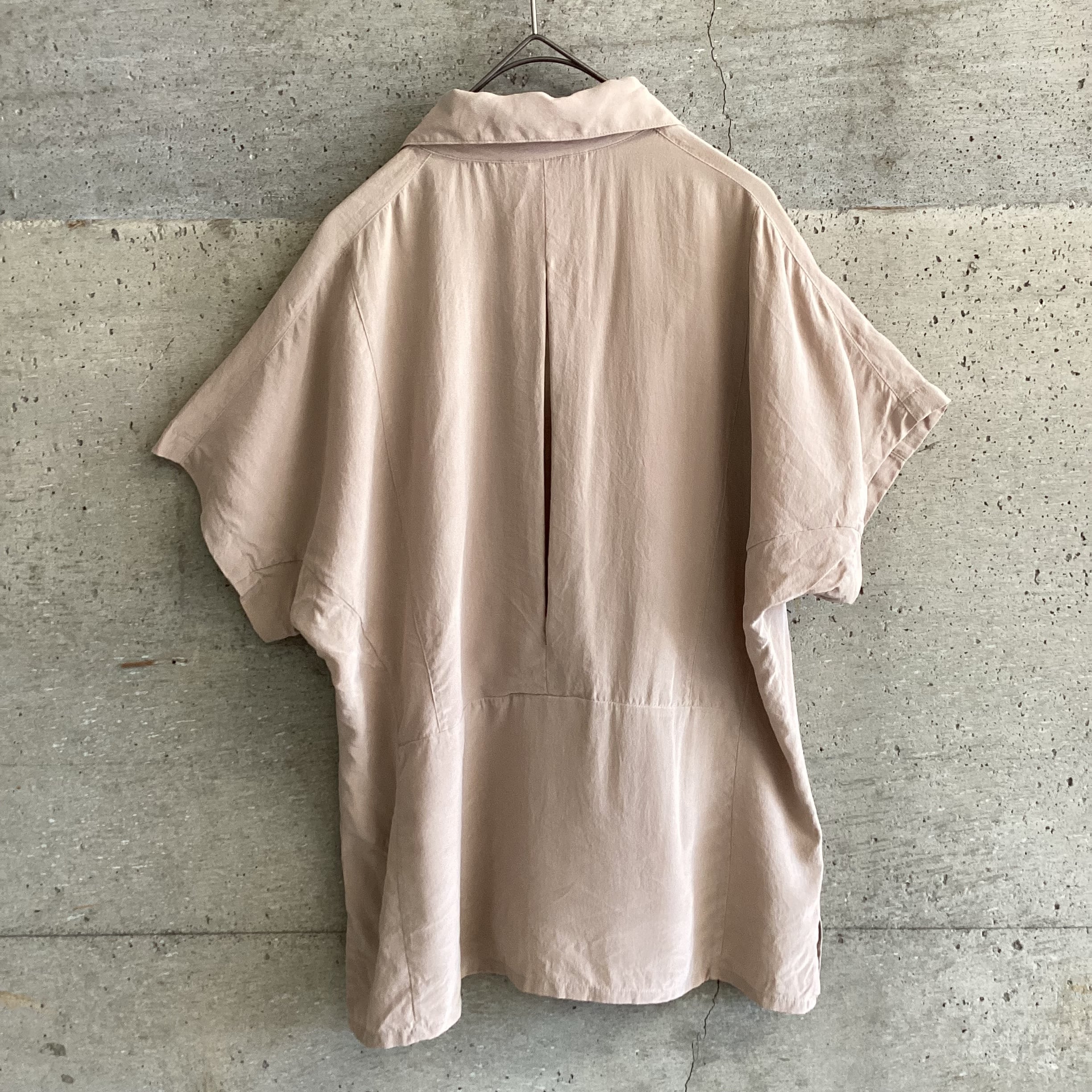 シルク素材で、切り替えや背中のプリーツにデザインのあるブラウス