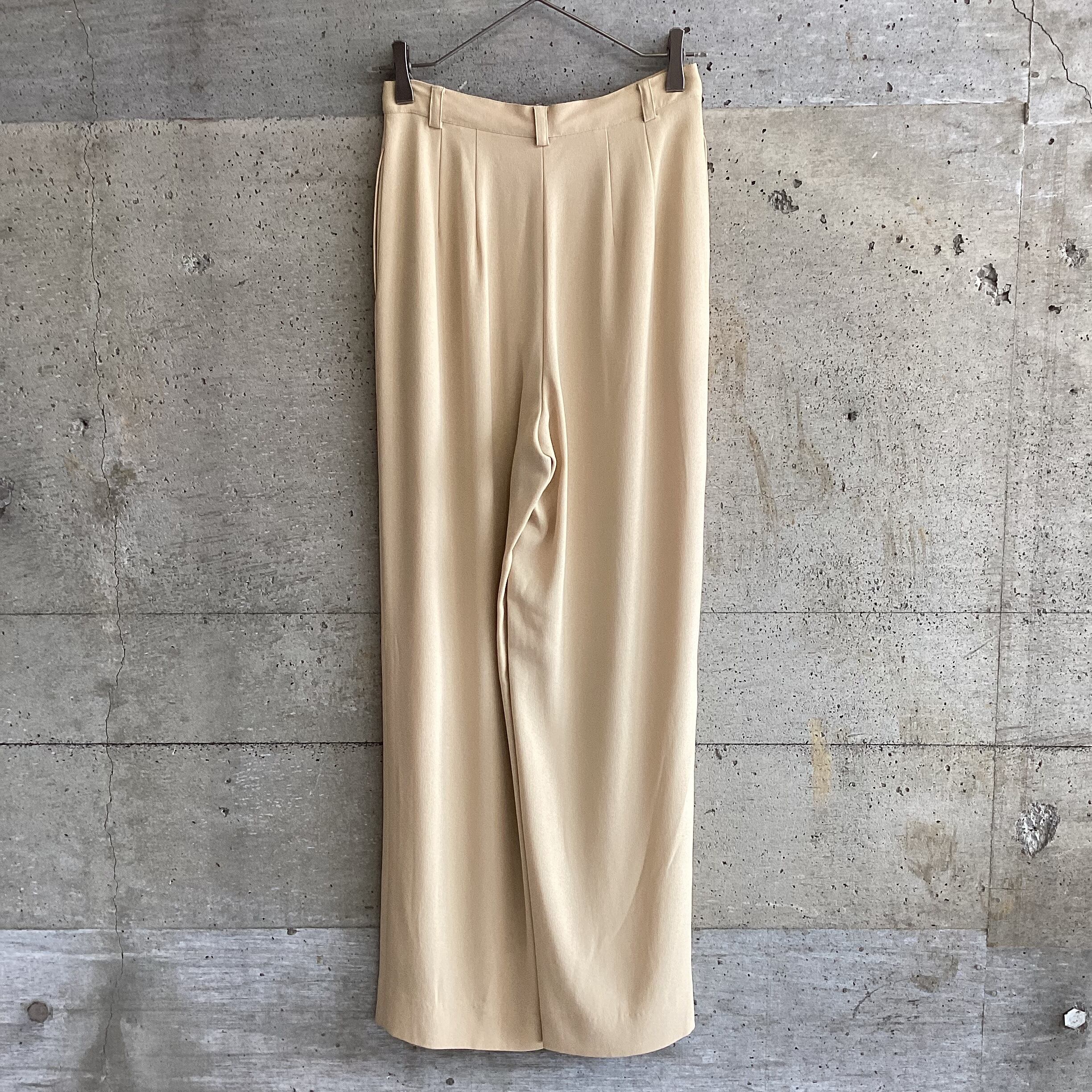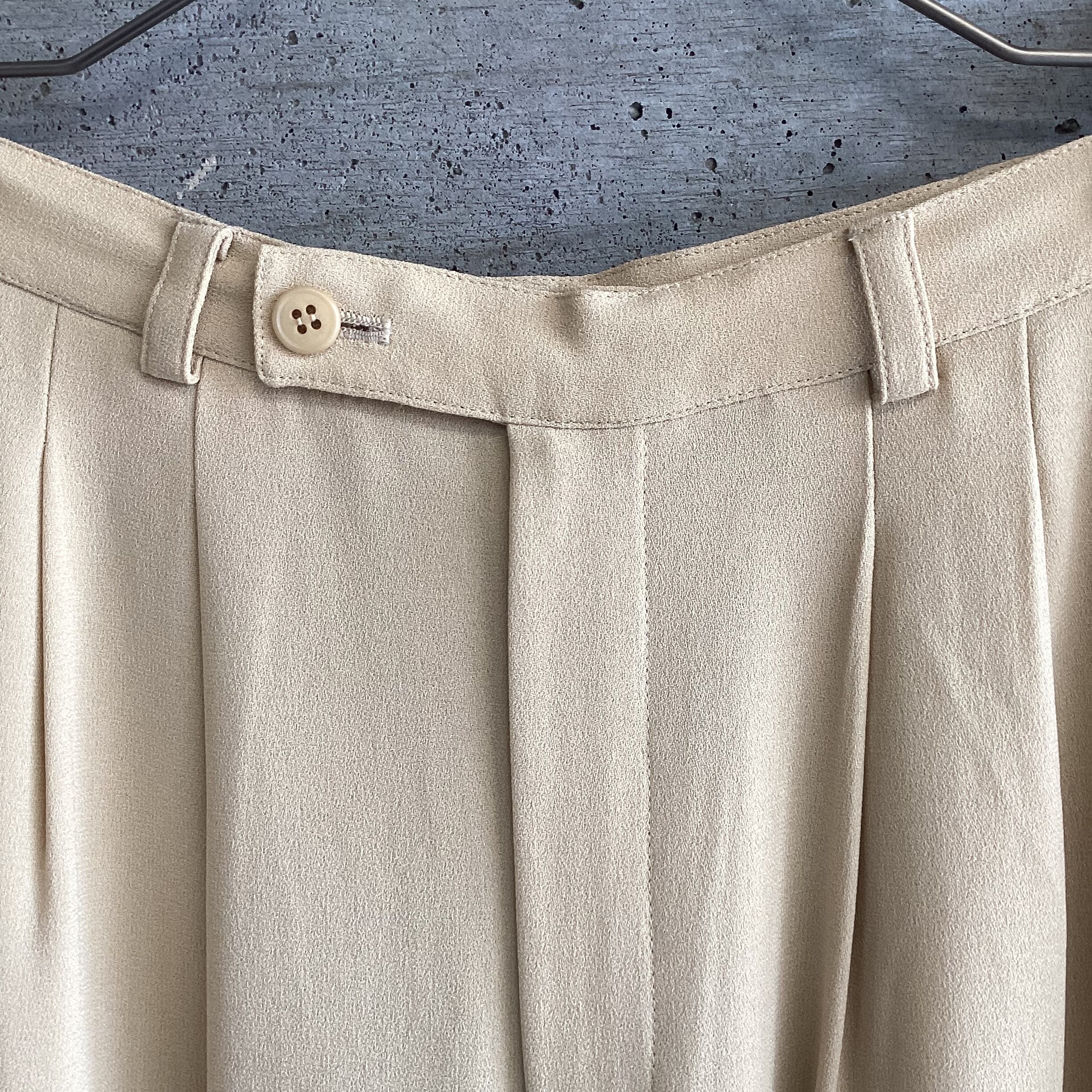 タックが前に入っていて、テロテロした生地感がリラックムードあるスラックスです。